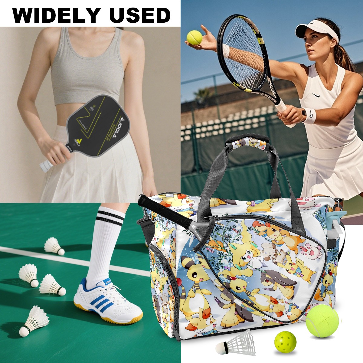 <p>Meet your ultimate court companion – the premium pickleball bag designed for players who demand durability and smart organization. Whether you're heading to a local tournament or a casual game with friends, our meticulously crafted bag keeps your gear secure, accessible, and tournament-ready.</p> <p><b>Built for the Active Lifestyle:</b></p> <p>From casual pickleball games to competitive leagues, this bag adapts to your needs. Store paddles, balls, towels, water bottles, and phones in intelligently placed pockets. The nylon fabric construction withstands court abrasions and daily use season after season.</p>