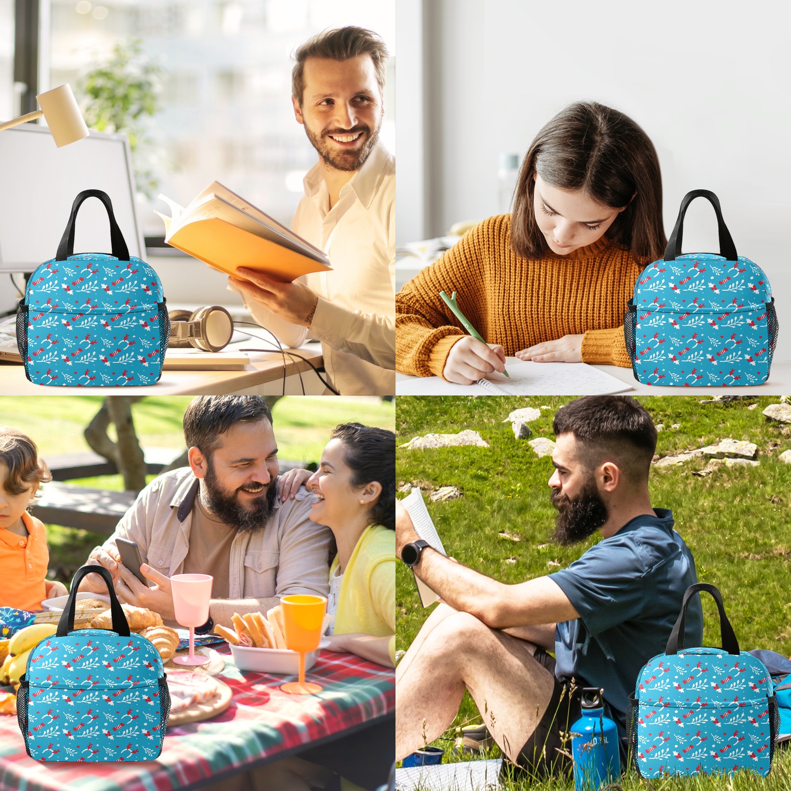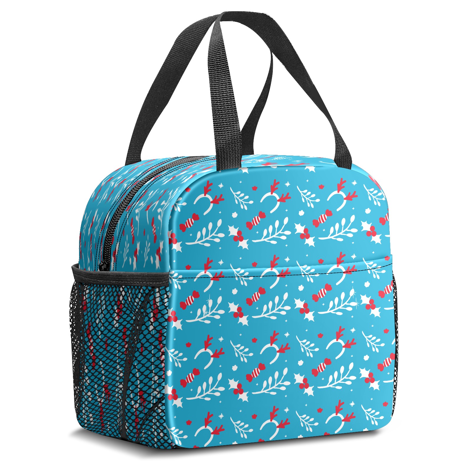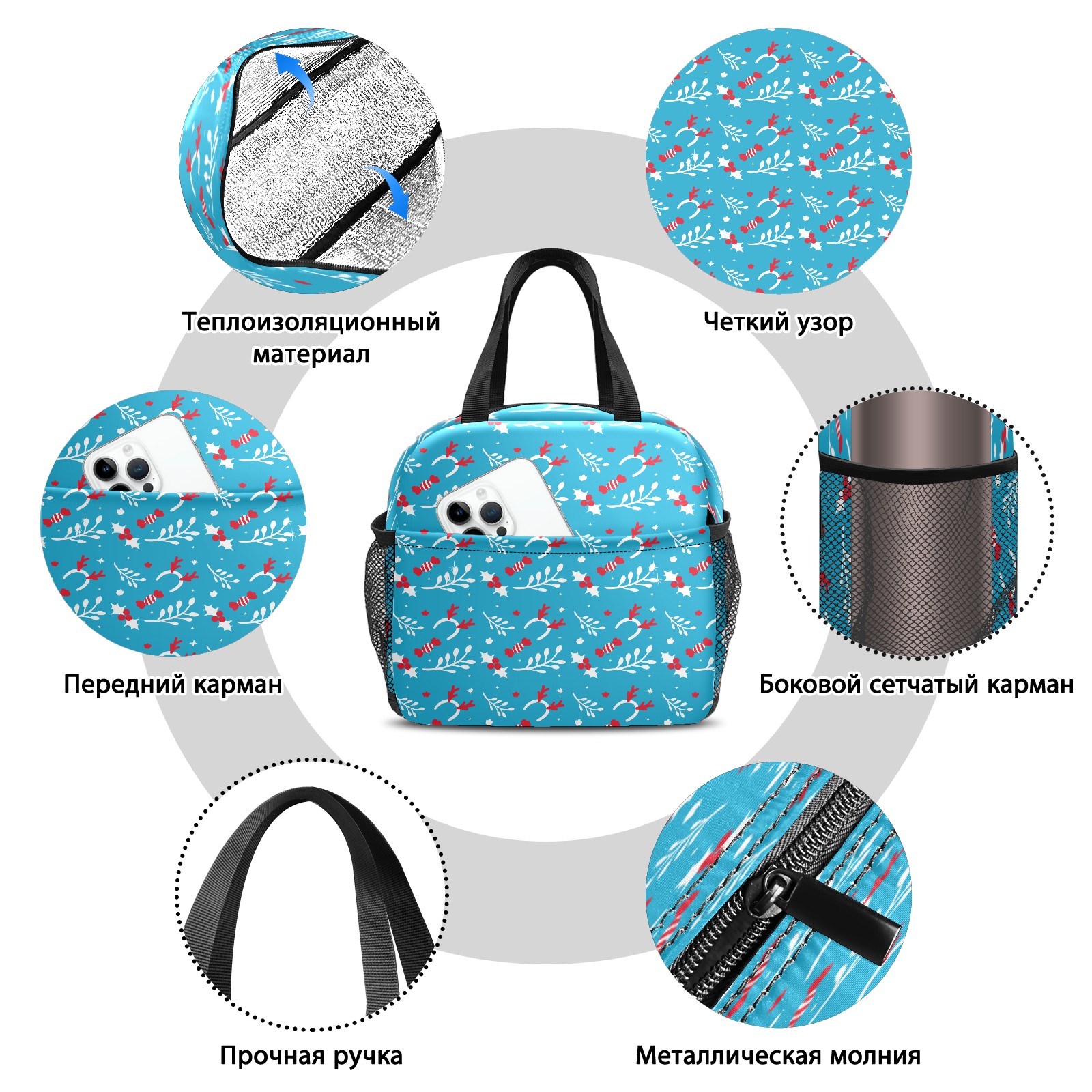 Lunch Bag,Lunch Box for Women Men,Blue Christmas Pattern Reusable Insulated Lunch Tote,Small Leakproof Cute Lunch Cooler with High Capacity for Work,Picnic,Camping