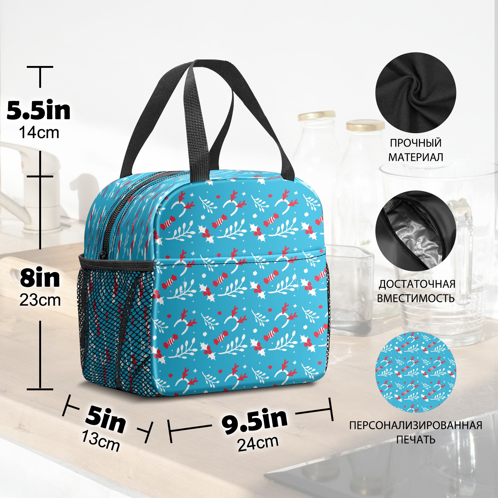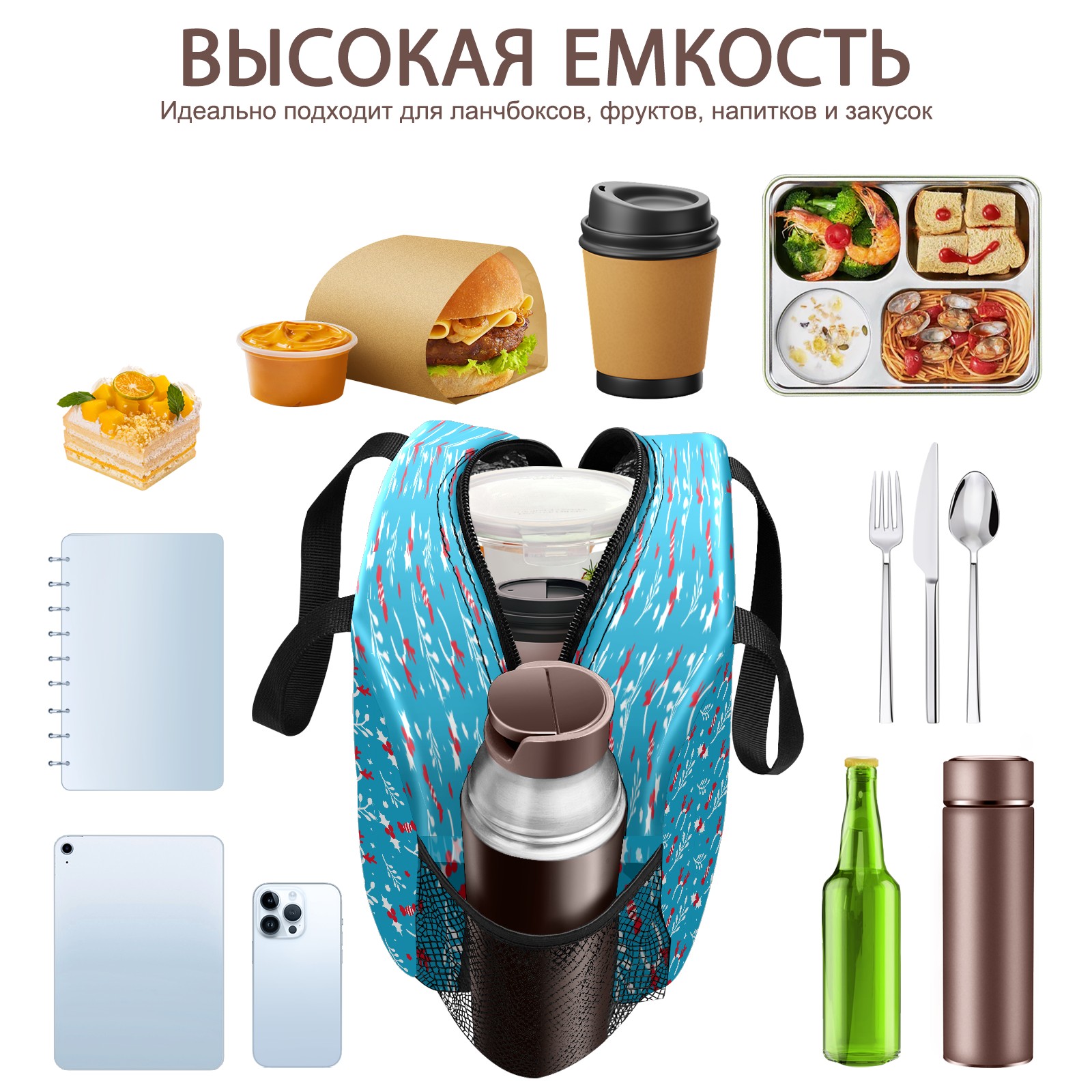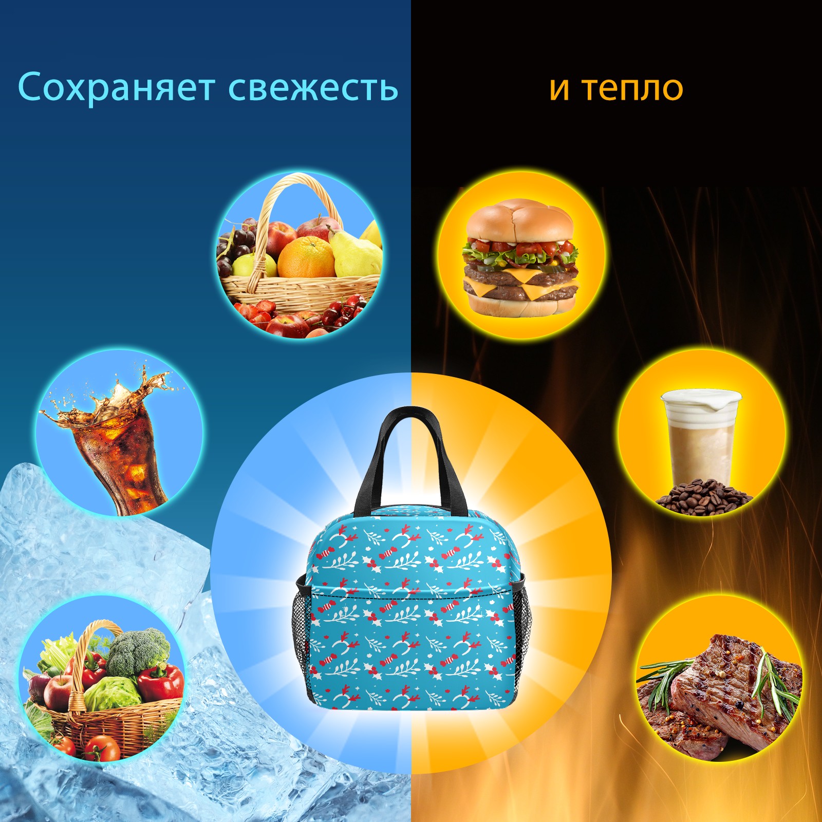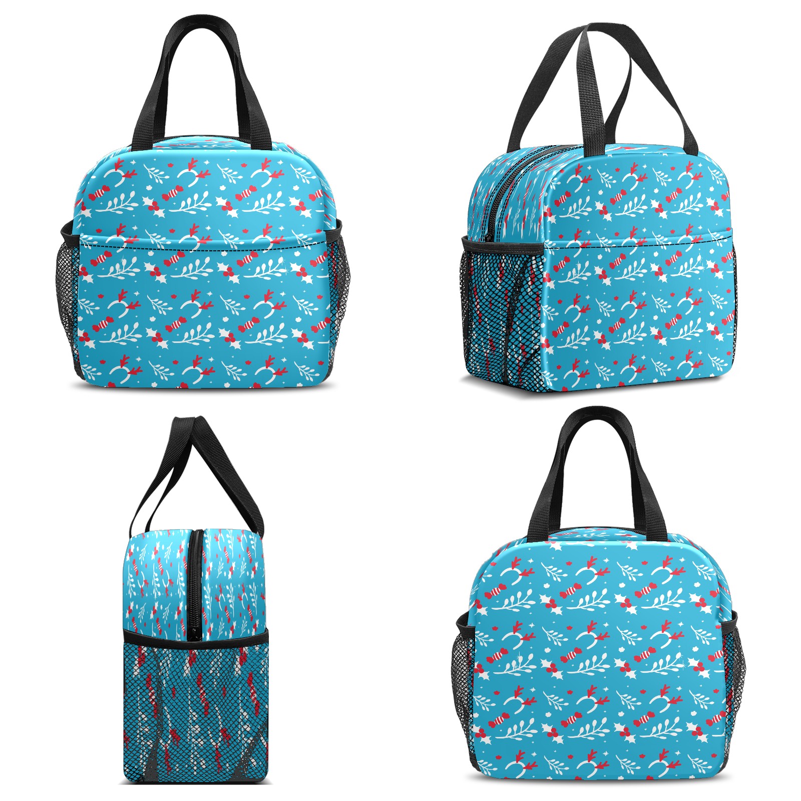 Lunch Bag,Lunch Box for Women Men,Blue Christmas Pattern Reusable Insulated Lunch Tote,Small Leakproof Cute Lunch Cooler with High Capacity for Work,Picnic,Camping