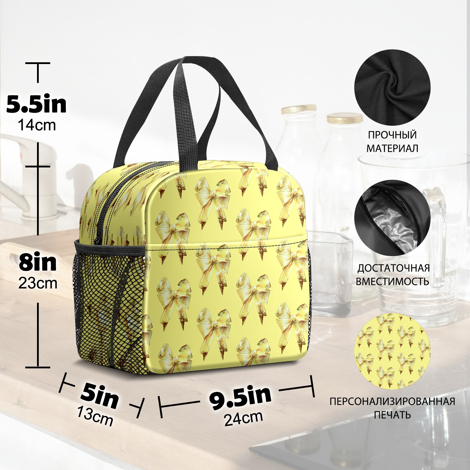 Lunch Bag,Lunch Box for Women Men,Beige Bow Reusable Insulated Lunch Tote,Small Leakproof Cute Lunch Cooler with High Capacity for Work,Picnic,Camping