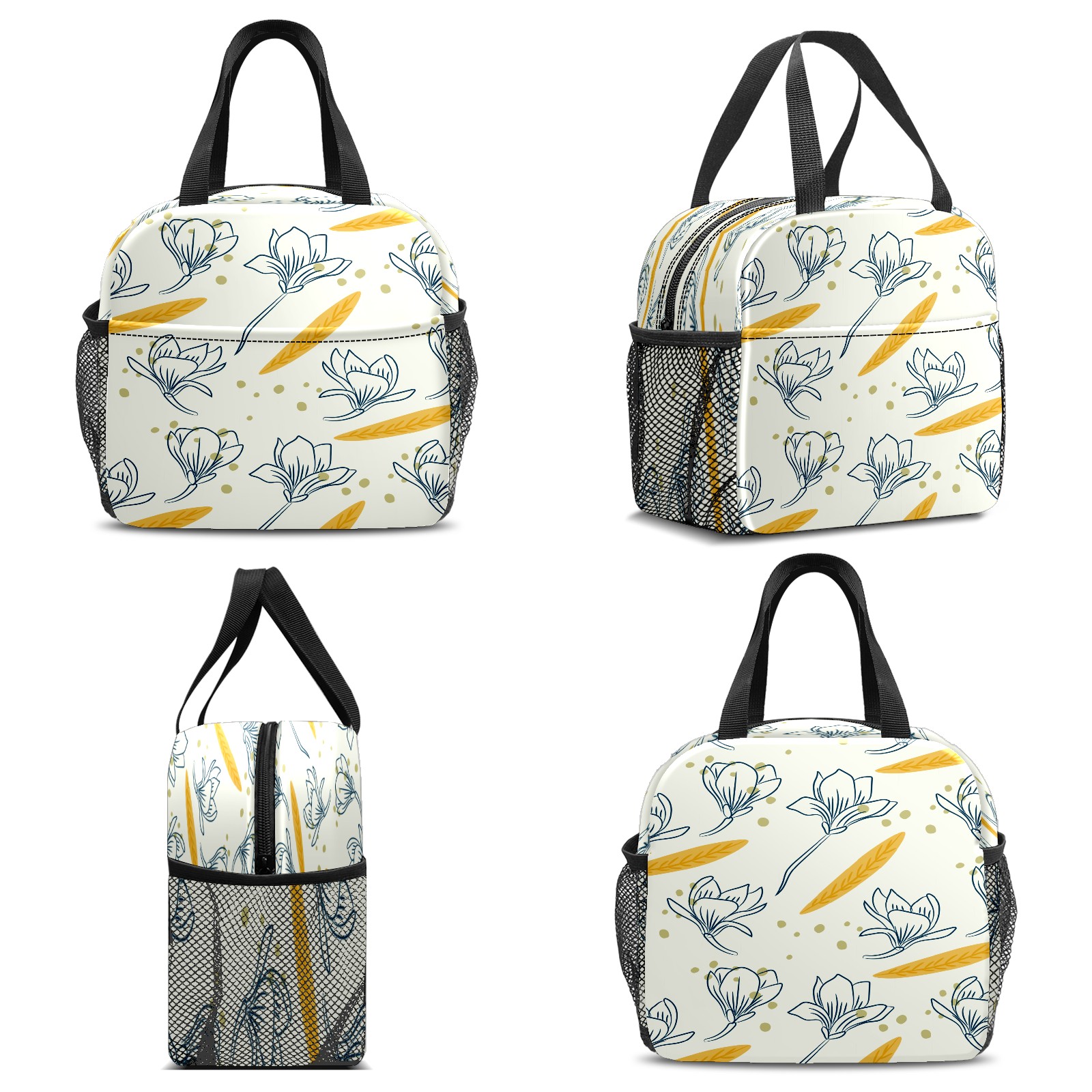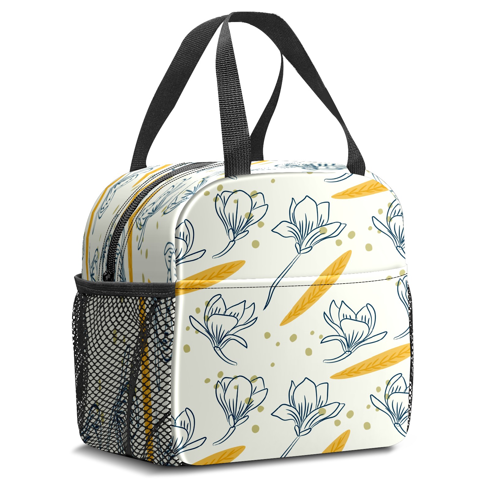 Lunch Bag,Lunch Box for Women Men,Hand Drawn Spring Flowers Reusable Insulated Lunch Tote,Small Leakproof Cute Lunch Cooler with High Capacity for Work,Picnic,Camping