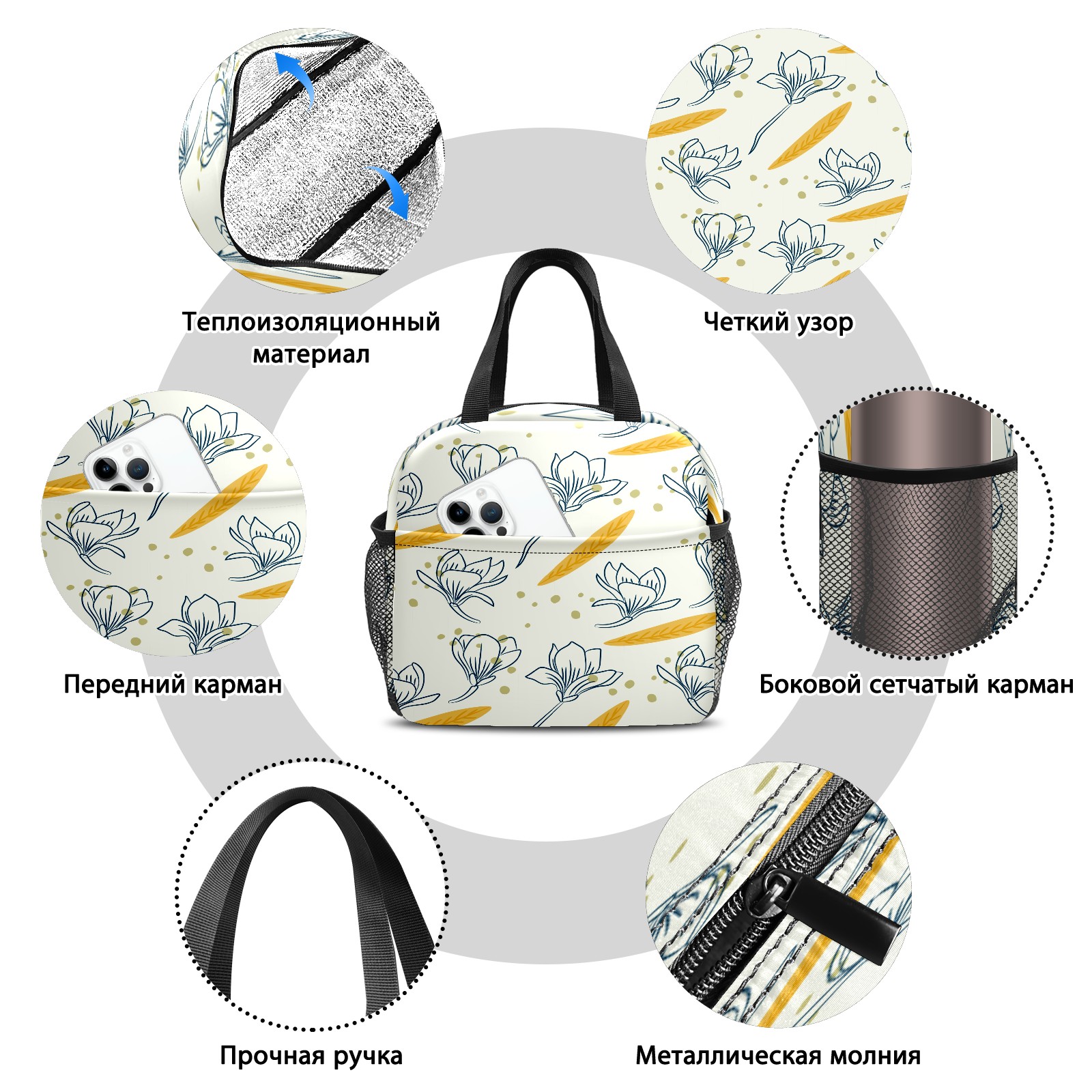 • <p>This stylish lunch bag is made of premium 600D waterproof Oxford cloth with thick insulating pearl foam lining and smooth, durable zippers, combining an attractive look with long-lasting daily use. Measuring 9.8*6.7*8.7, it offers ample space with a main zippered compartment and a front pocket to organize containers, food and snacks neatly for easy access. Boasting an extra-thick aluminum foil lining and heat-welded seams, it delivers reliable leak-proof performance and strong insulation to keep food hot or cold for hours, ideal for sandwiches, salads, fruits and more. Lightweight and portable with a sturdily stitched upgraded handle, this reusable lunch bag is a perfect companion for work, camping, picnics, beach trips and outdoor travel, helping you enjoy fresh homemade meals on the go.</p>