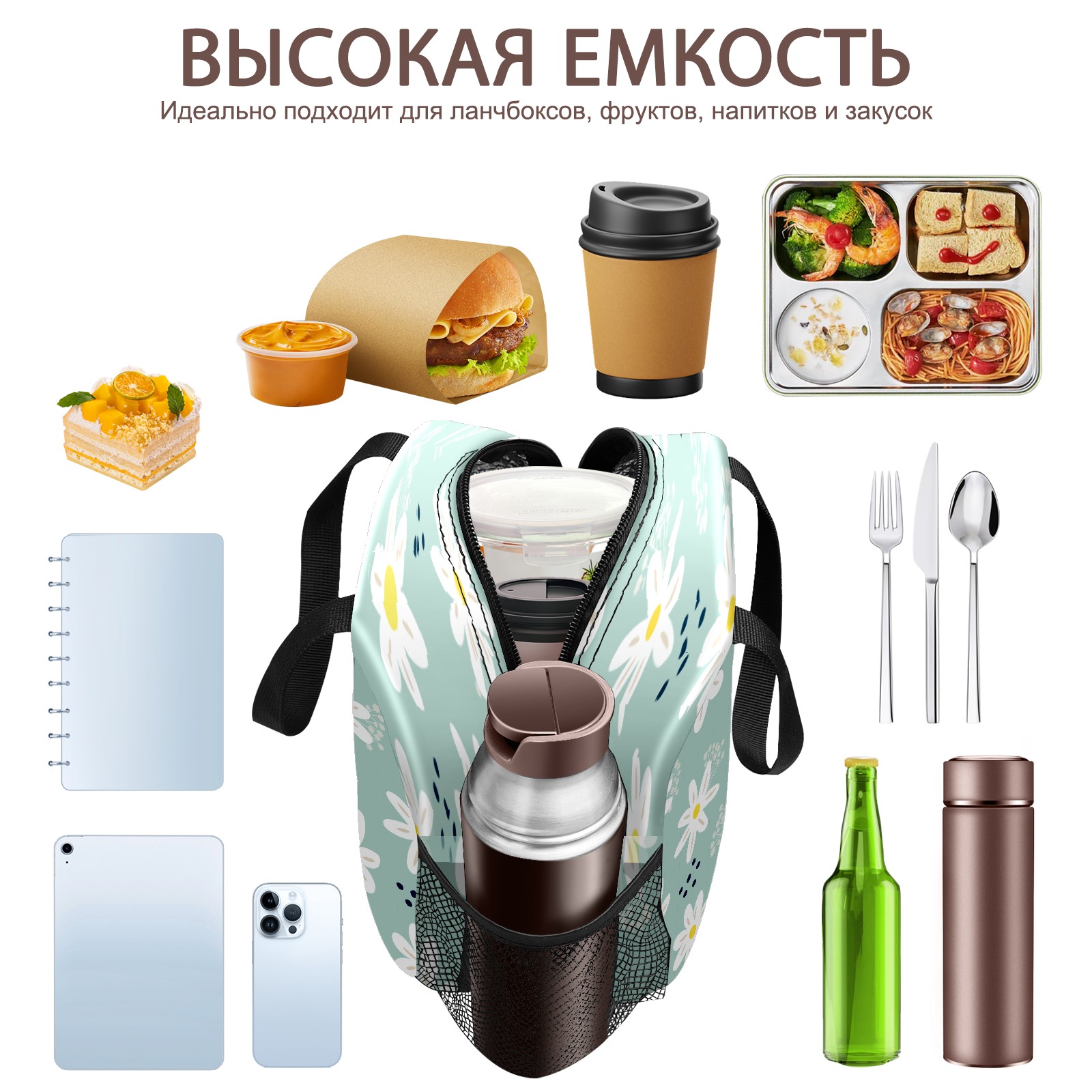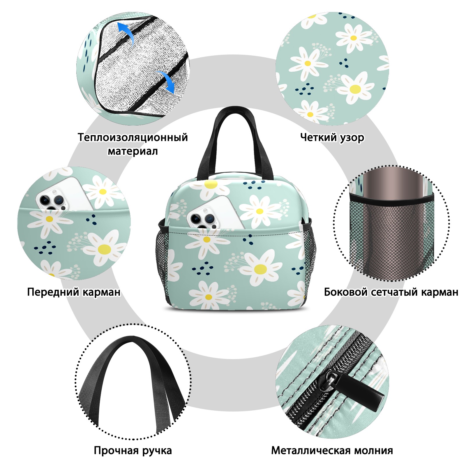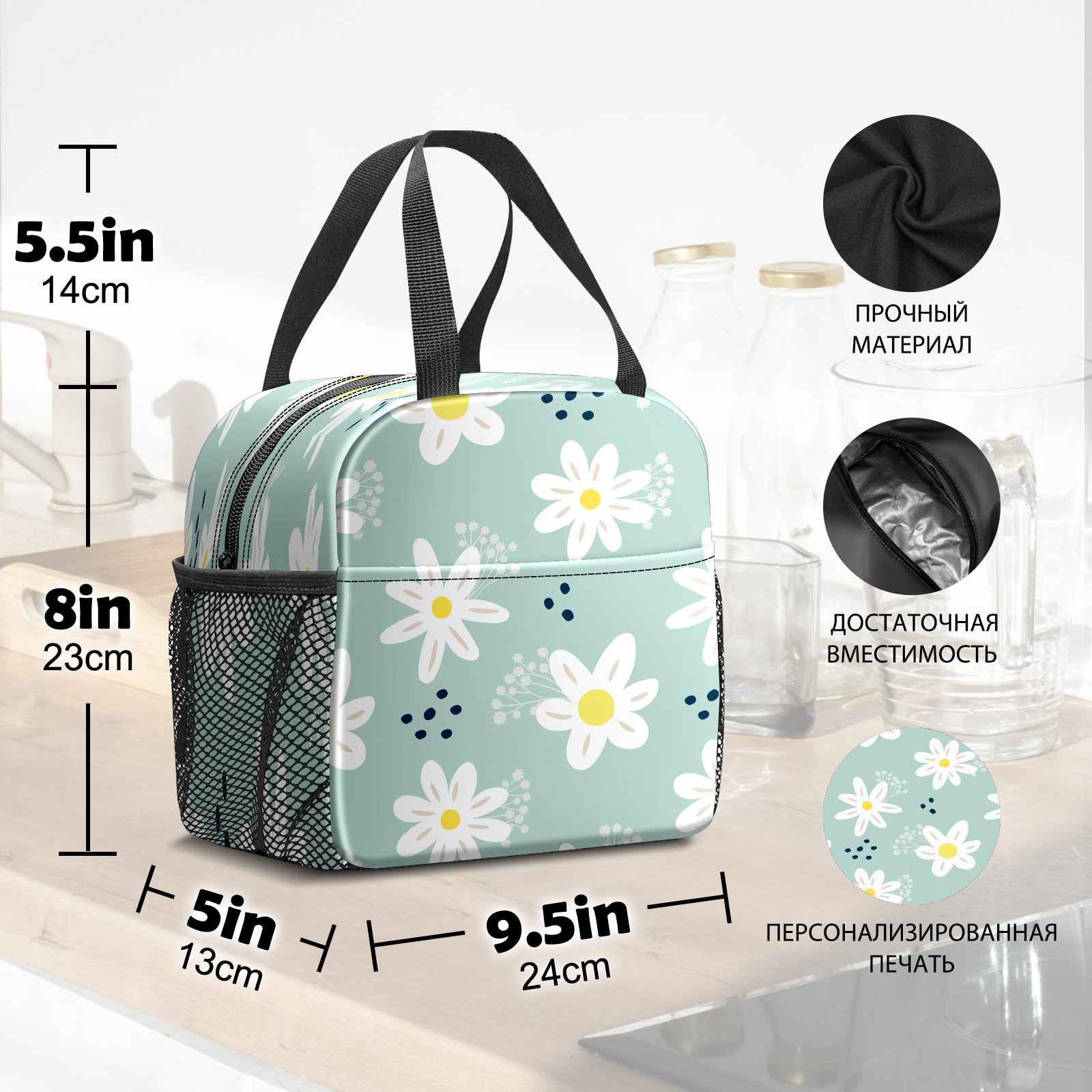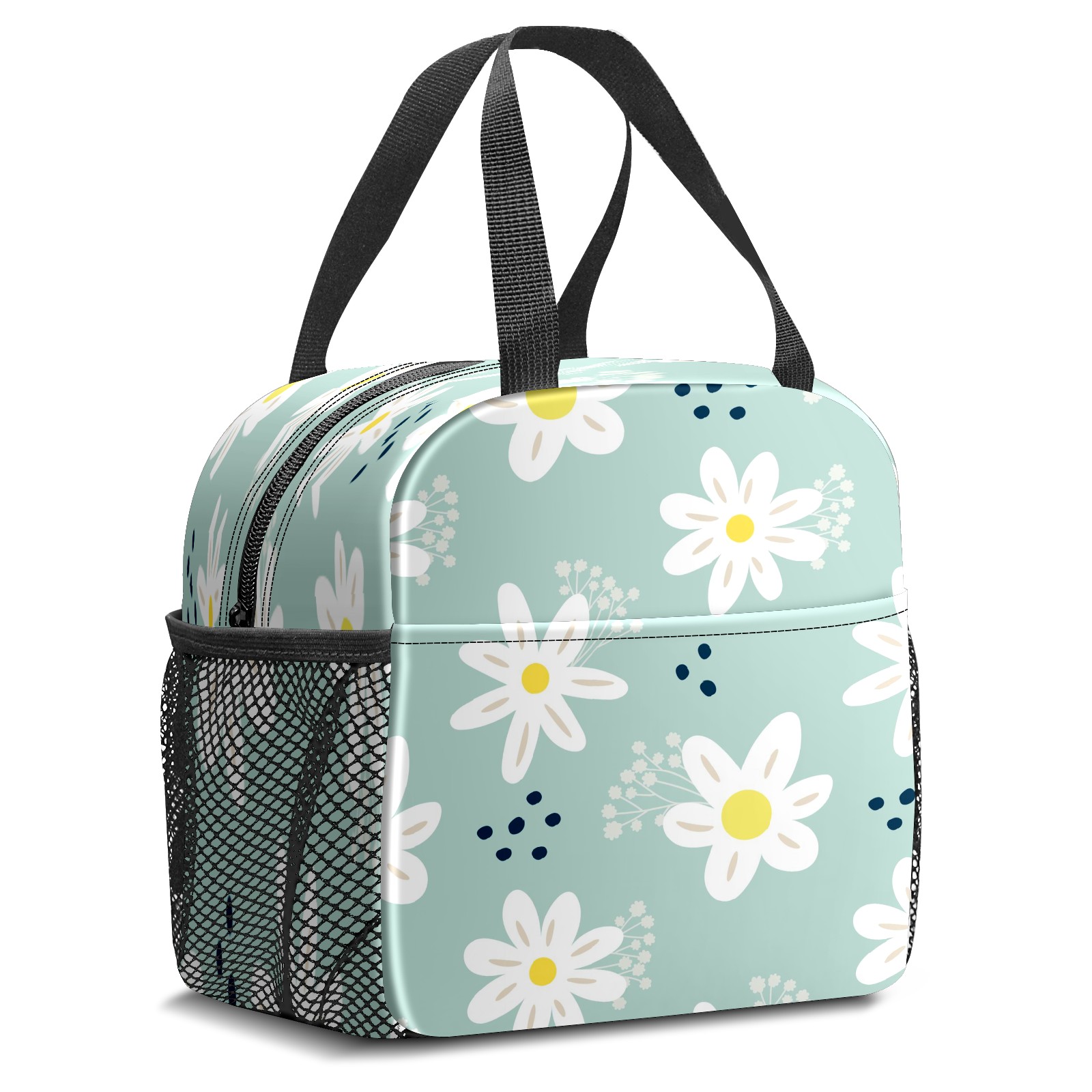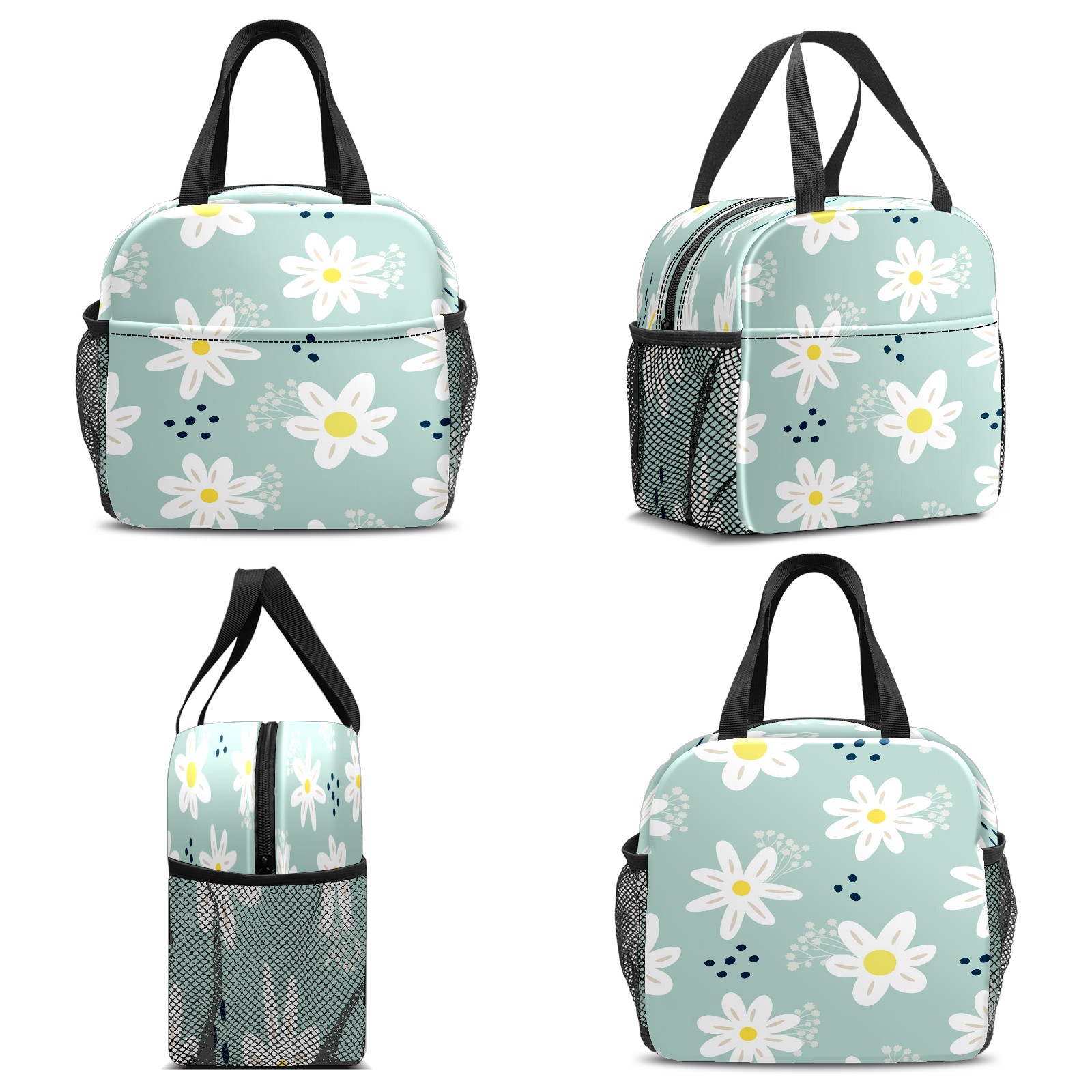 Lunch Bag,Lunch Box for Women Men,Hand Drawn Spring White Floral - Flowers Green Reusable Insulated Lunch Tote,Small Leakproof Cute Lunch Cooler with High Capacity for Work,Picnic,Camping
