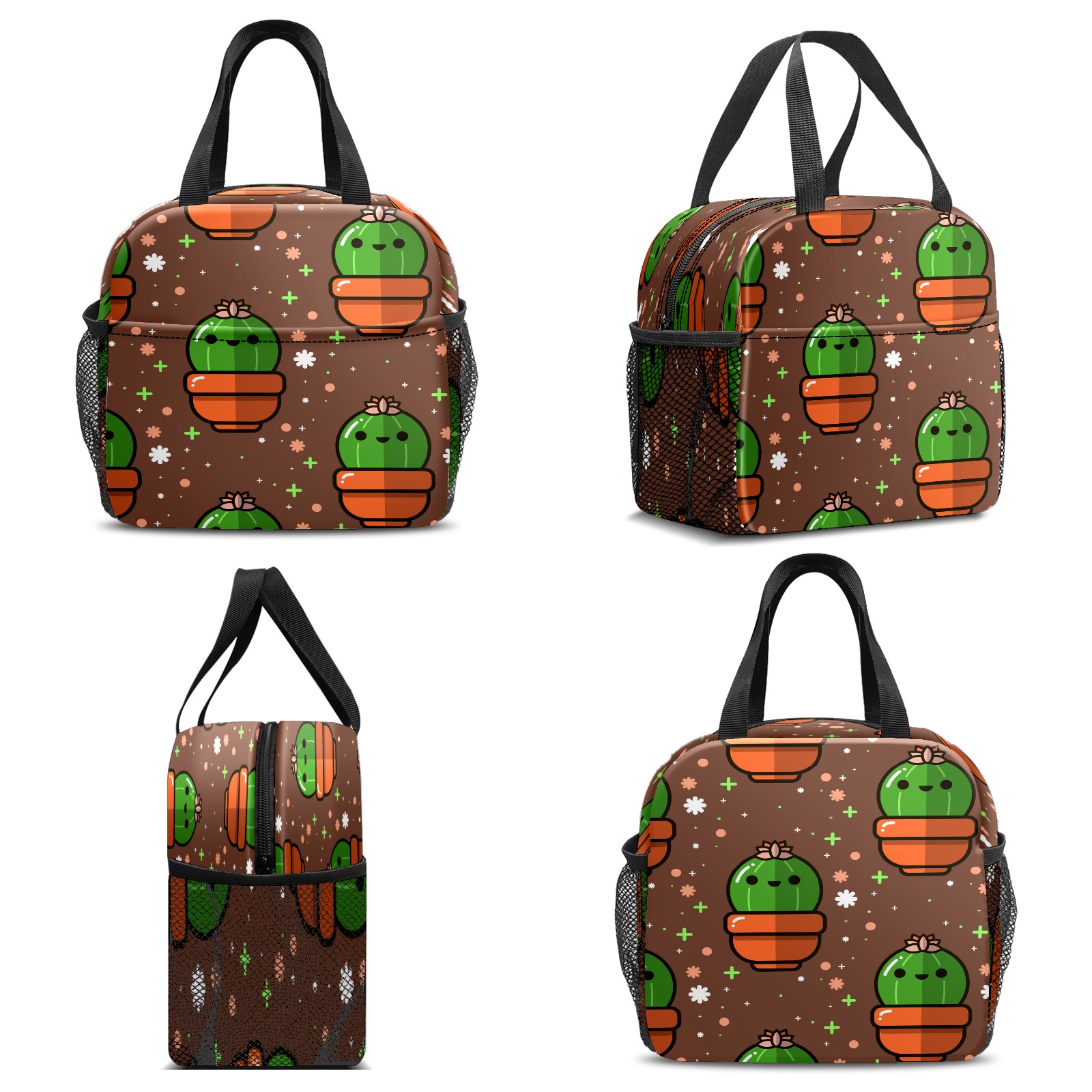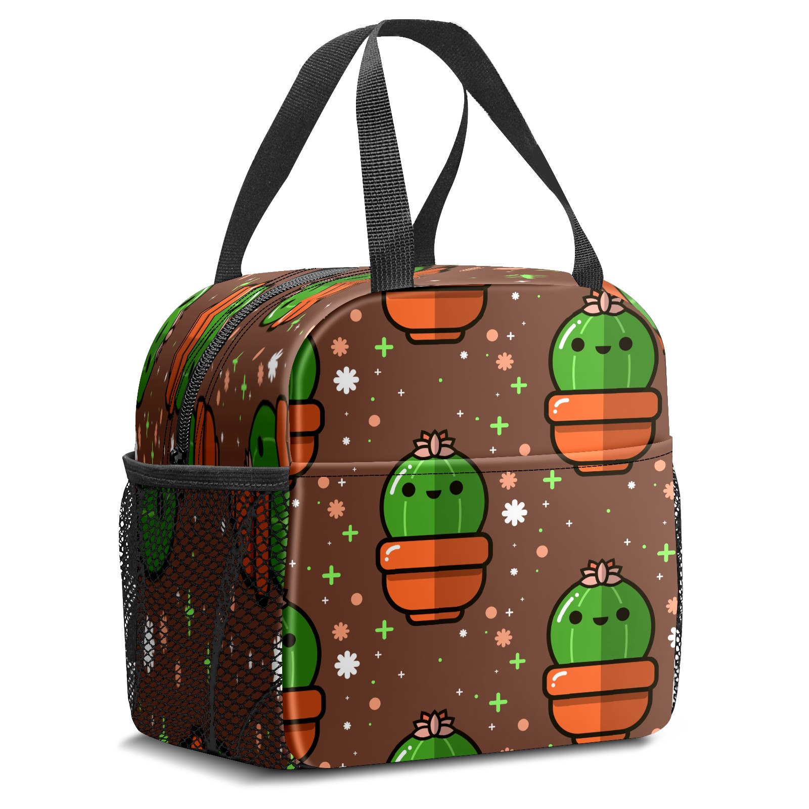 Lunch Bag,Lunch Box for Women Men,Cartoon Cute Nice Cactus - Green Plants Brown Reusable Insulated Lunch Tote,Small Leakproof Cute Lunch Cooler with High Capacity for Work,Picnic,Camping