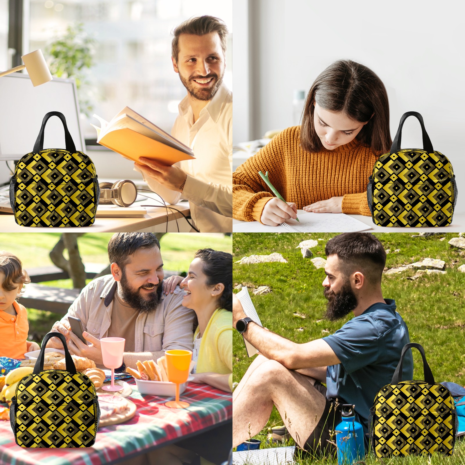 Lunch Bag,Lunch Box for Women Men,Abstract Art Deco - Golden Gradient Color Reusable Insulated Lunch Tote,Small Leakproof Cute Lunch Cooler with High Capacity for Work,Picnic,Camping