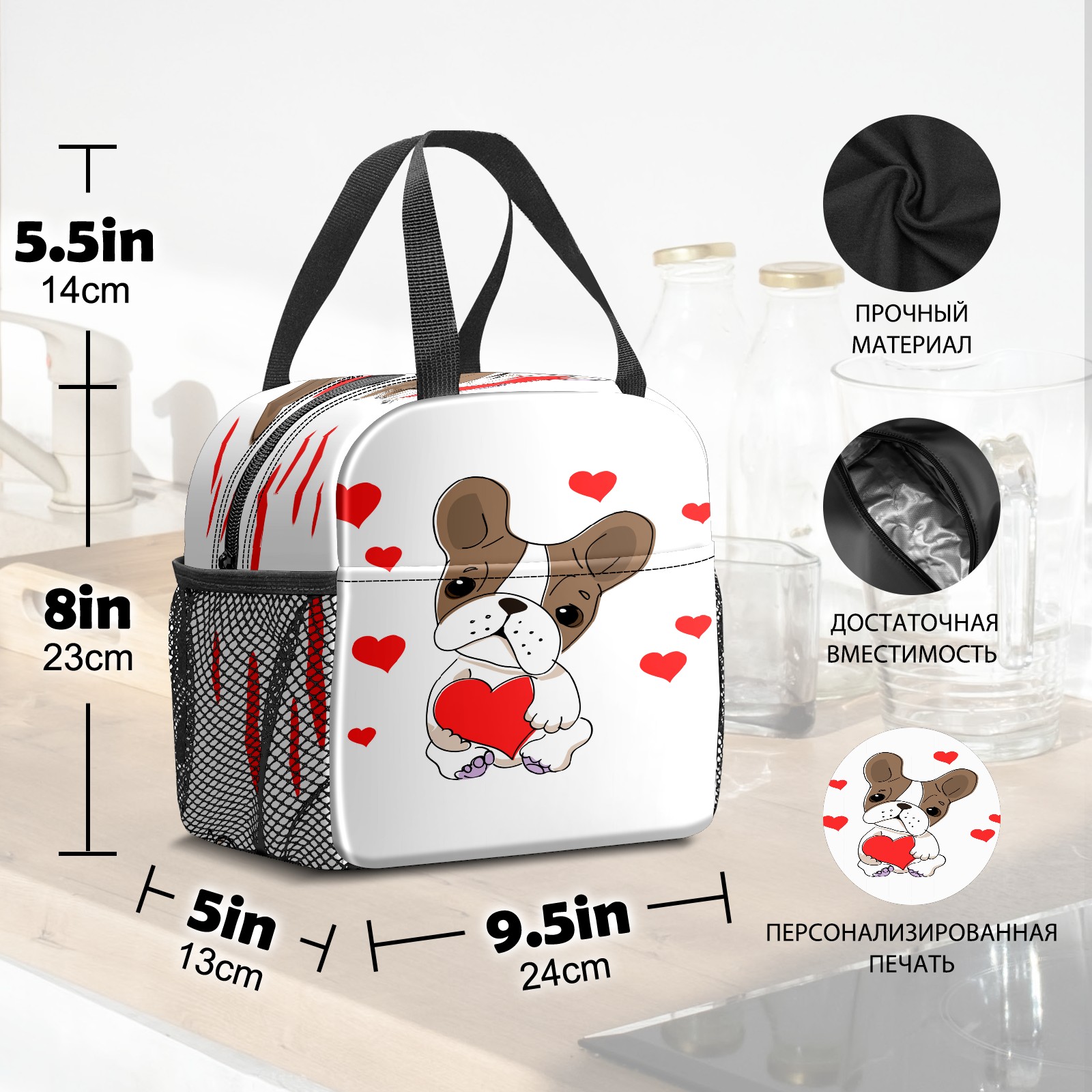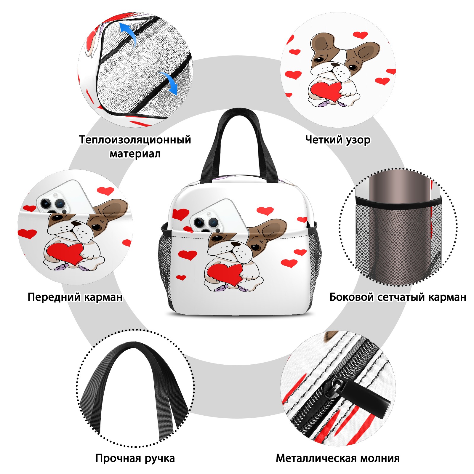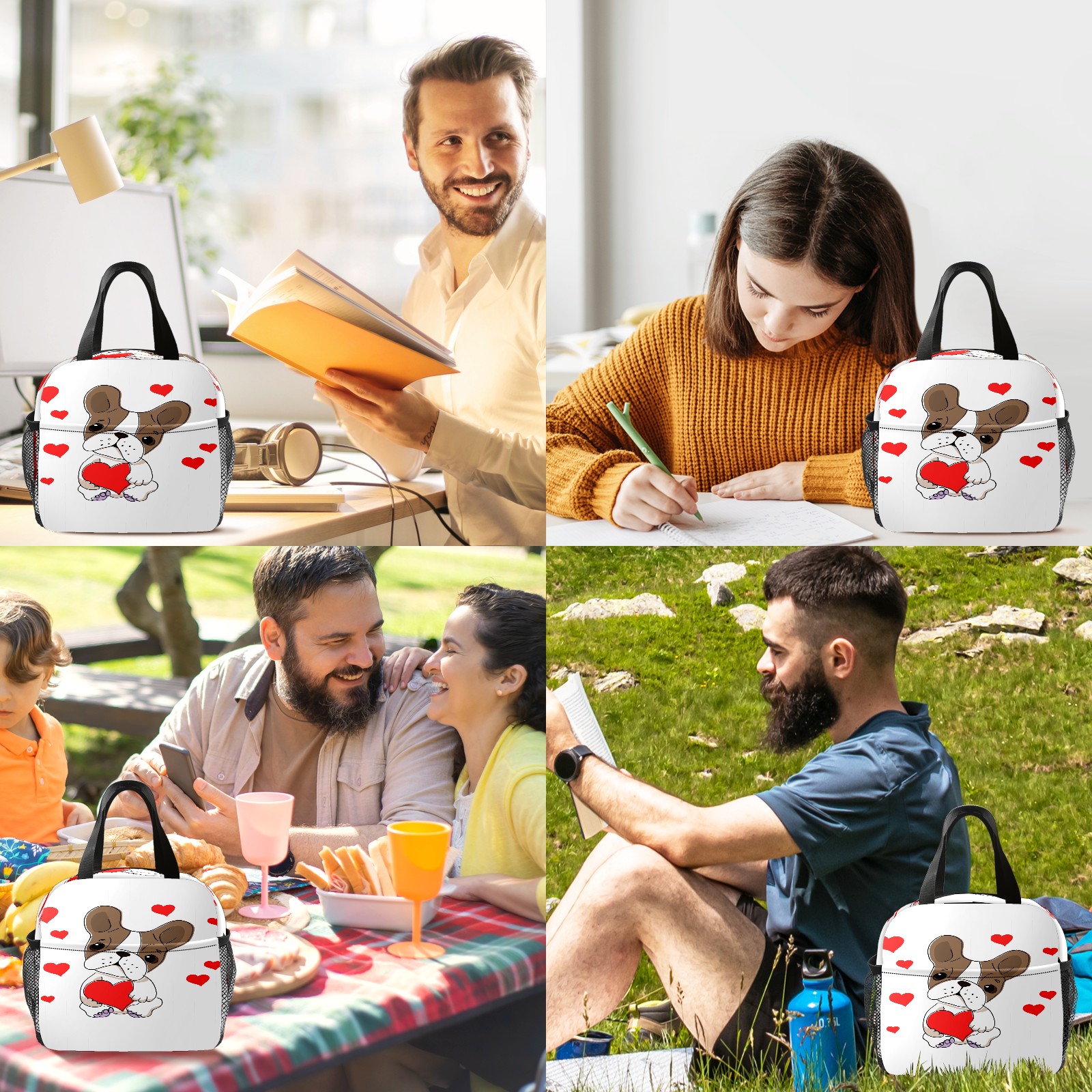 Lunch Bag,Lunch Box for Women Men,Dog With Love Reusable Insulated Lunch Tote,Small Leakproof Cute Lunch Cooler with High Capacity for Work,Picnic,Camping