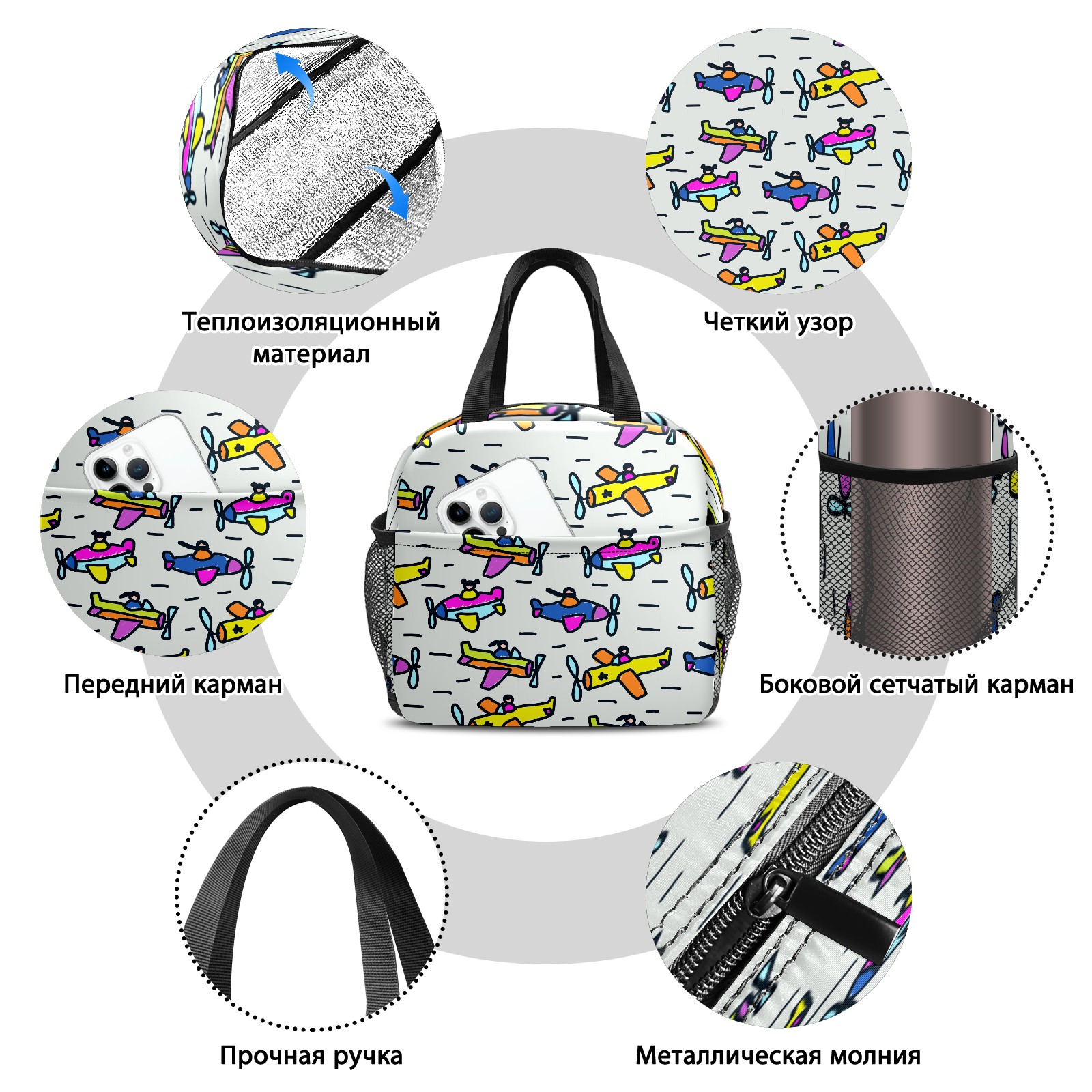 Lunch Bag,Lunch Box for Women Men,Cartoon Plane Reusable Insulated Lunch Tote,Small Leakproof Cute Lunch Cooler with High Capacity for Work,Picnic,Camping