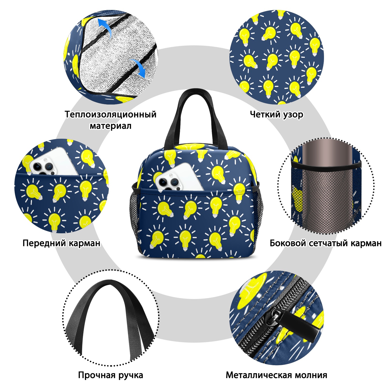 Lunch Bag,Lunch Box for Women Men,Yellow Bulb Reusable Insulated Lunch Tote,Small Leakproof Cute Lunch Cooler with High Capacity for Work,Picnic,Camping