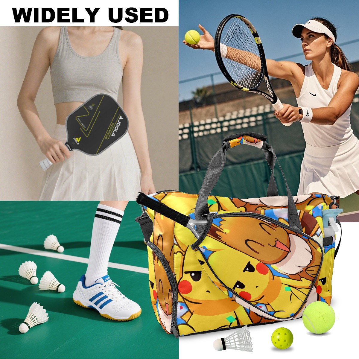 • <p>Meet your ultimate court companion – the premium pickleball bag designed for players who demand durability and smart organization. Whether you're heading to a local tournament or a casual game with friends, our meticulously crafted bag keeps your gear secure, accessible, and tournament-ready.</p> <p><b>Built for the Active Lifestyle:</b></p> <p>From casual pickleball games to competitive leagues, this bag adapts to your needs. Store paddles, balls, towels, water bottles, and phones in intelligently placed pockets. The nylon fabric construction withstands court abrasions and daily use season after season.</p>