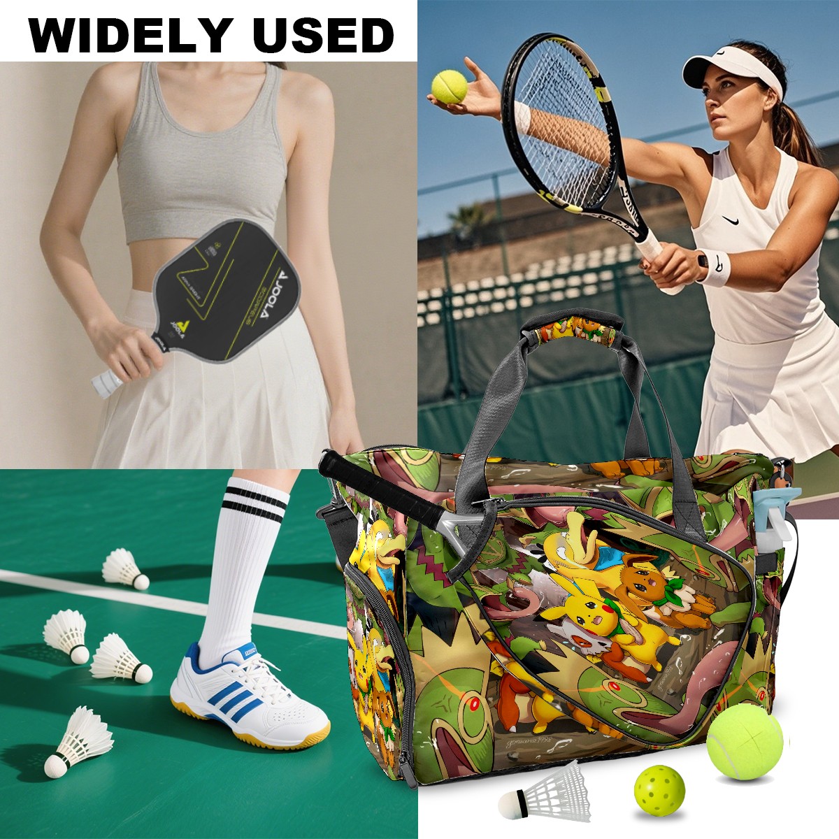 <p>Meet your ultimate court companion – the premium pickleball bag designed for players who demand durability and smart organization. Whether you're heading to a local tournament or a casual game with friends, our meticulously crafted bag keeps your gear secure, accessible, and tournament-ready.</p> <p><b>Built for the Active Lifestyle:</b></p> <p>From casual pickleball games to competitive leagues, this bag adapts to your needs. Store paddles, balls, towels, water bottles, and phones in intelligently placed pockets. The nylon fabric construction withstands court abrasions and daily use season after season.</p>