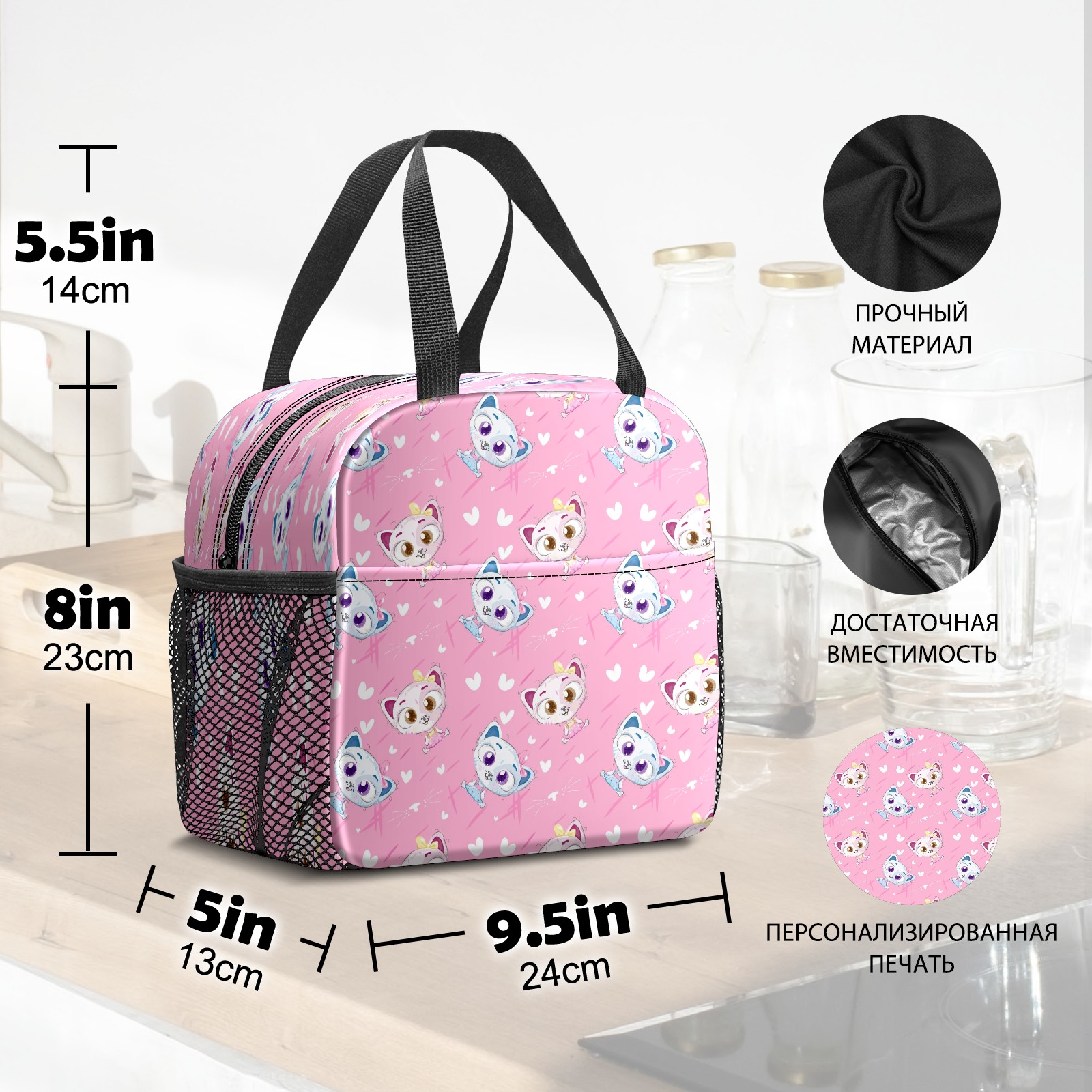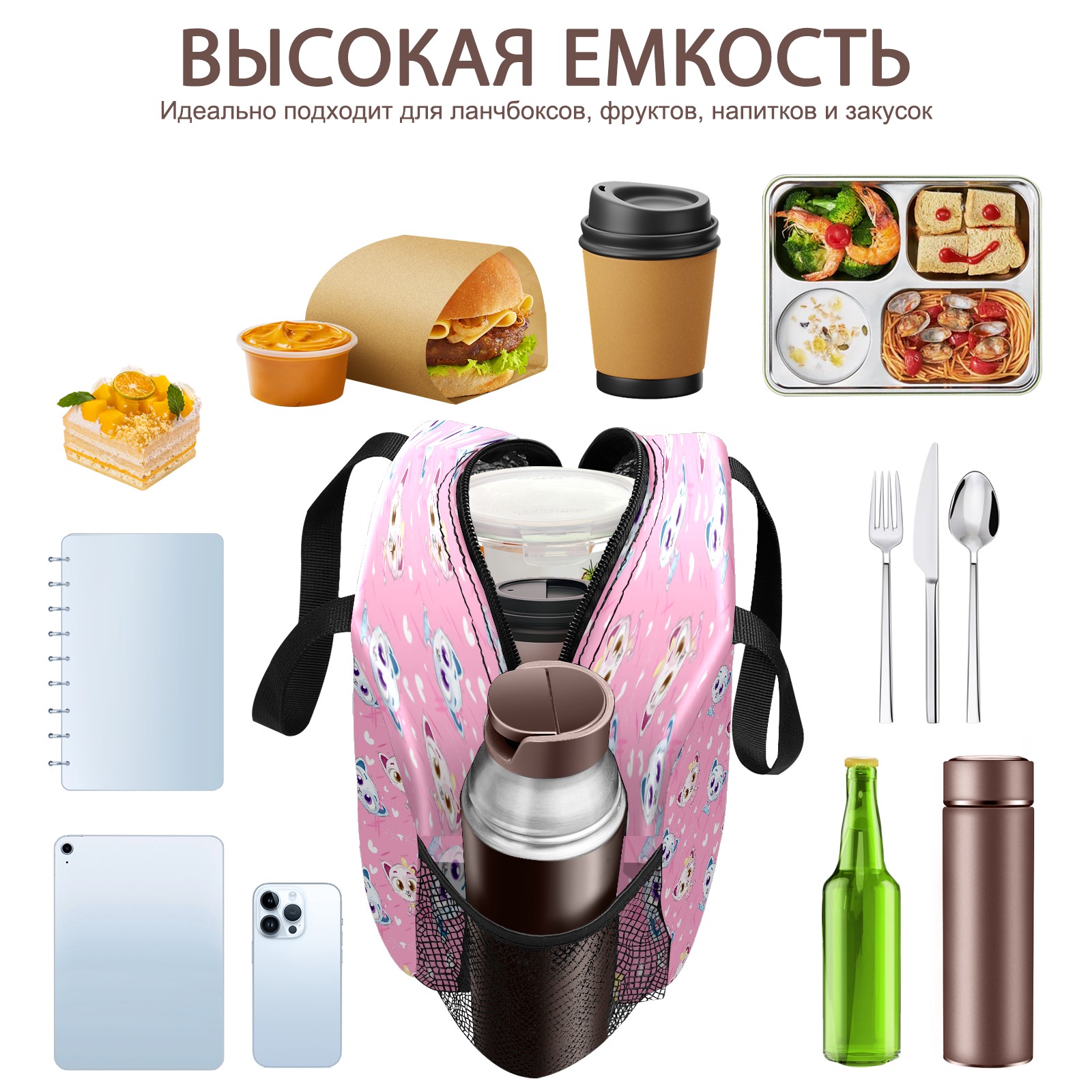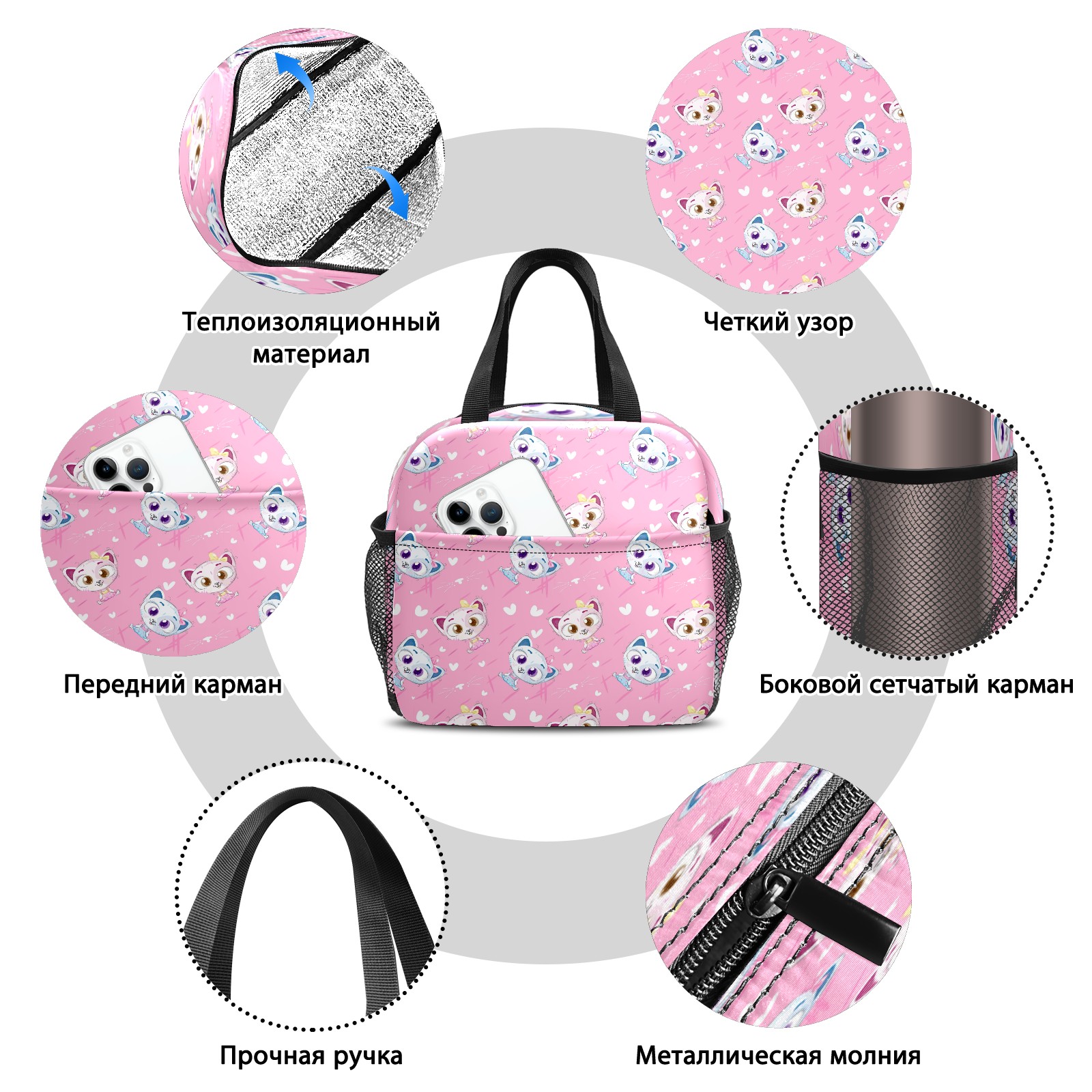 Lunch Bag,Lunch Box for Women Men,Hand Drawn Cute Pet Cat - Pink Cartoon Animal Reusable Insulated Lunch Tote,Small Leakproof Cute Lunch Cooler with High Capacity for Work,Picnic,Camping
