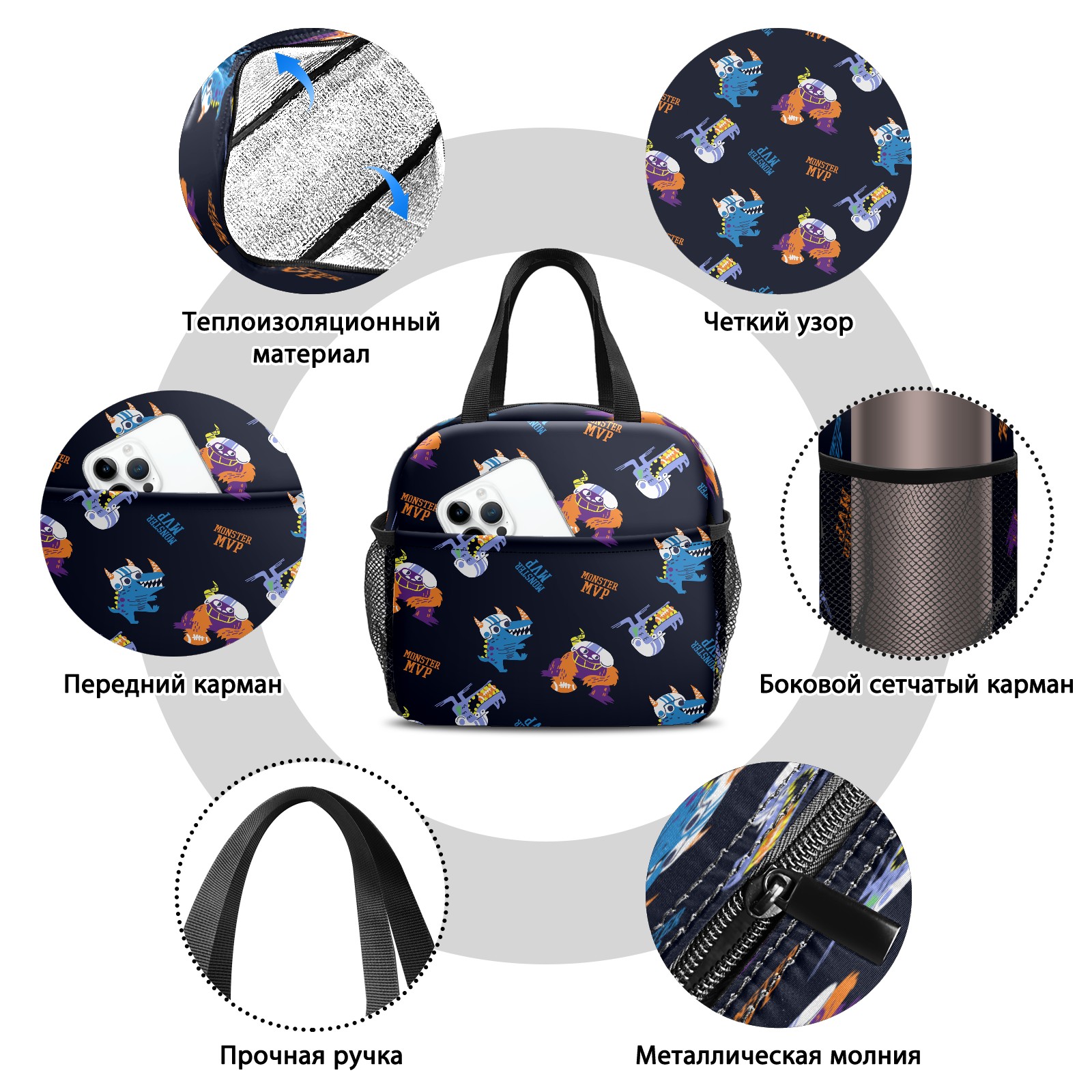 • <p>This stylish lunch bag is made of premium 600D waterproof Oxford cloth with thick insulating pearl foam lining and smooth, durable zippers, combining an attractive look with long-lasting daily use. Measuring 9.8*6.7*8.7, it offers ample space with a main zippered compartment and a front pocket to organize containers, food and snacks neatly for easy access. Boasting an extra-thick aluminum foil lining and heat-welded seams, it delivers reliable leak-proof performance and strong insulation to keep food hot or cold for hours, ideal for sandwiches, salads, fruits and more. Lightweight and portable with a sturdily stitched upgraded handle, this reusable lunch bag is a perfect companion for work, camping, picnics, beach trips and outdoor travel, helping you enjoy fresh homemade meals on the go.</p>