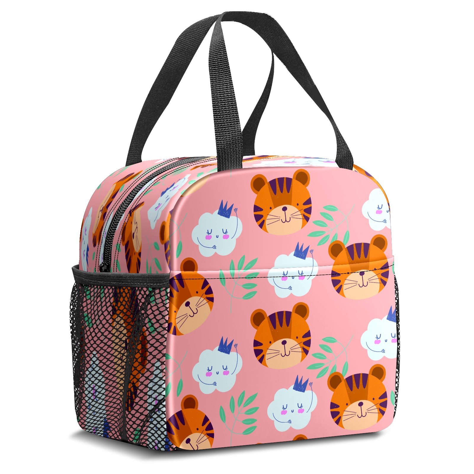 Lunch Bag,Lunch Box for Women Men,Little Tiger Faces With Clouds Reusable Insulated Lunch Tote,Small Leakproof Cute Lunch Cooler with High Capacity for Work,Picnic,Camping