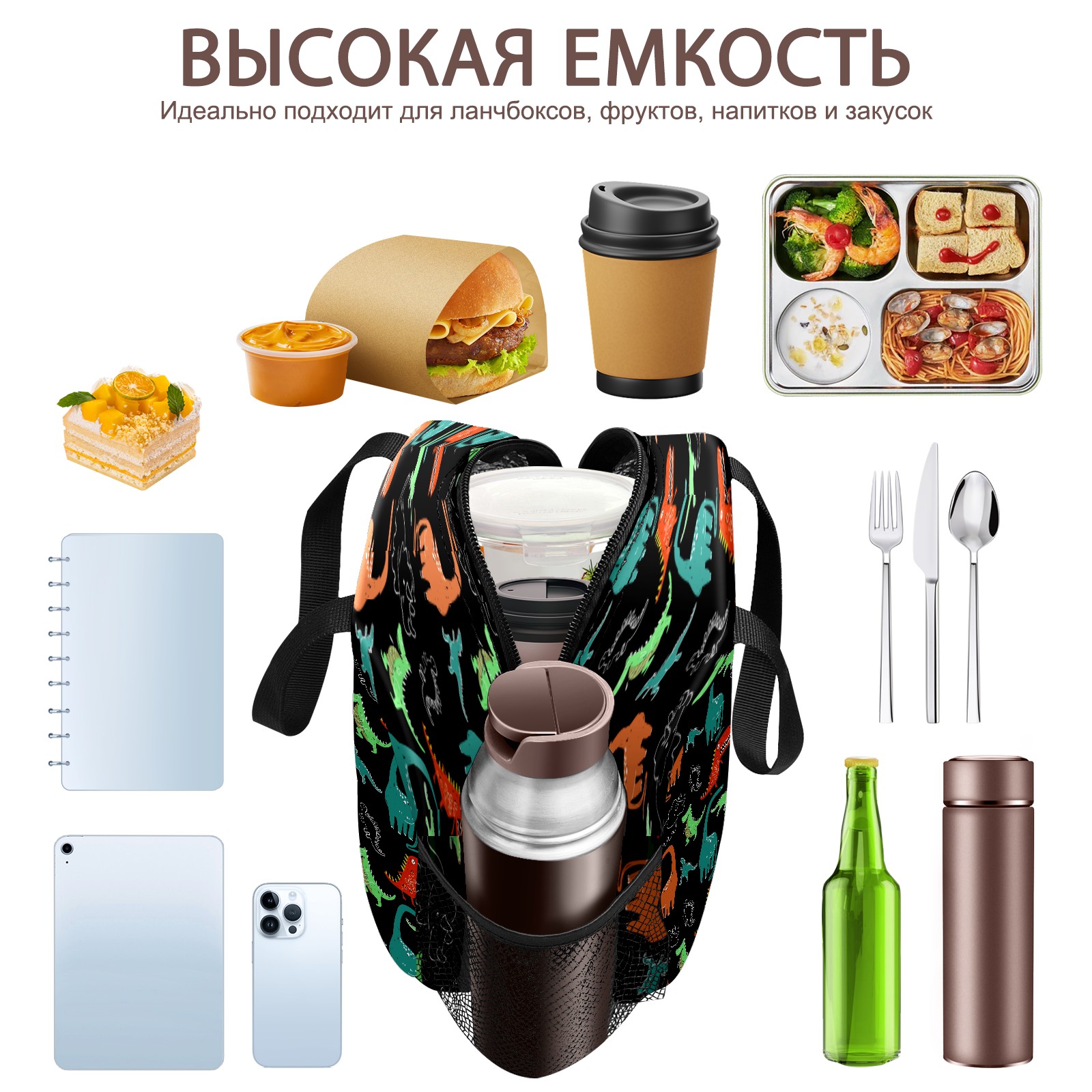 Lunch Bag,Lunch Box for Women Men,Hand Drawn Colorful Dinosaur - Bright Cartoon Animal Reusable Insulated Lunch Tote,Small Leakproof Cute Lunch Cooler with High Capacity for Work,Picnic,Camping