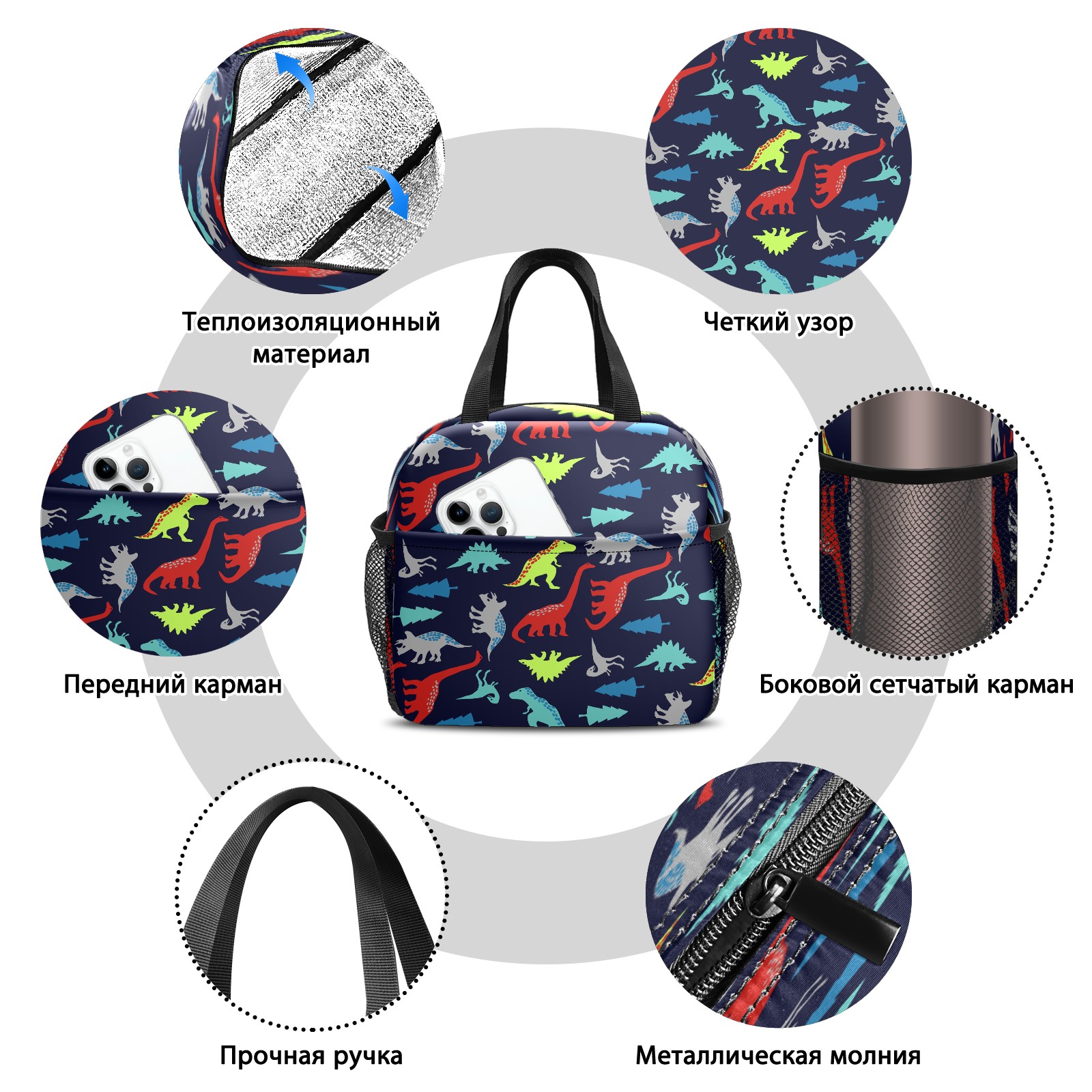 Lunch Bag,Lunch Box for Women Men,Hand Drawn Colorful Dinosaur - Cartoon Animal Reusable Insulated Lunch Tote,Small Leakproof Cute Lunch Cooler with High Capacity for Work,Picnic,Camping