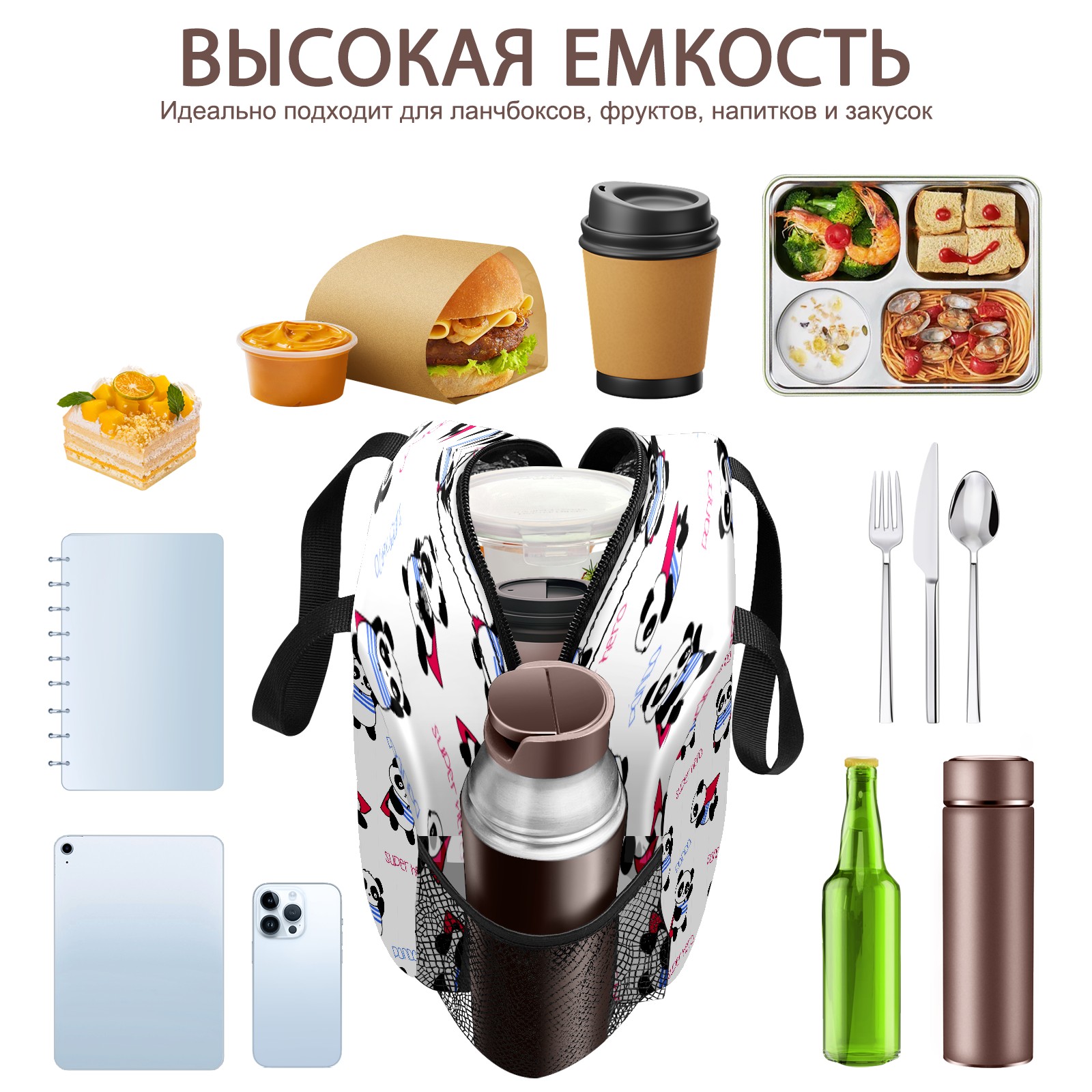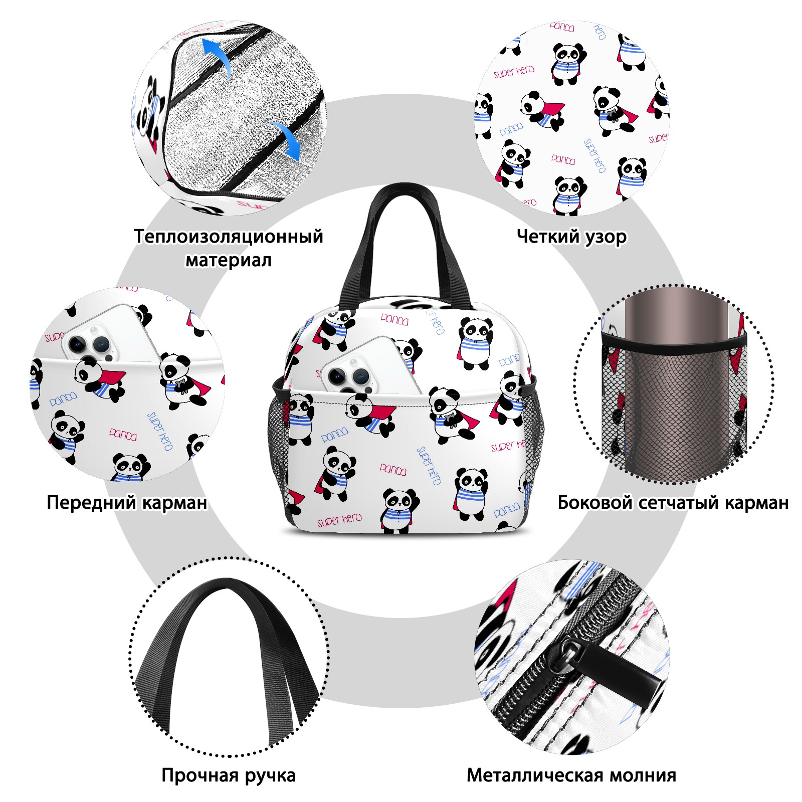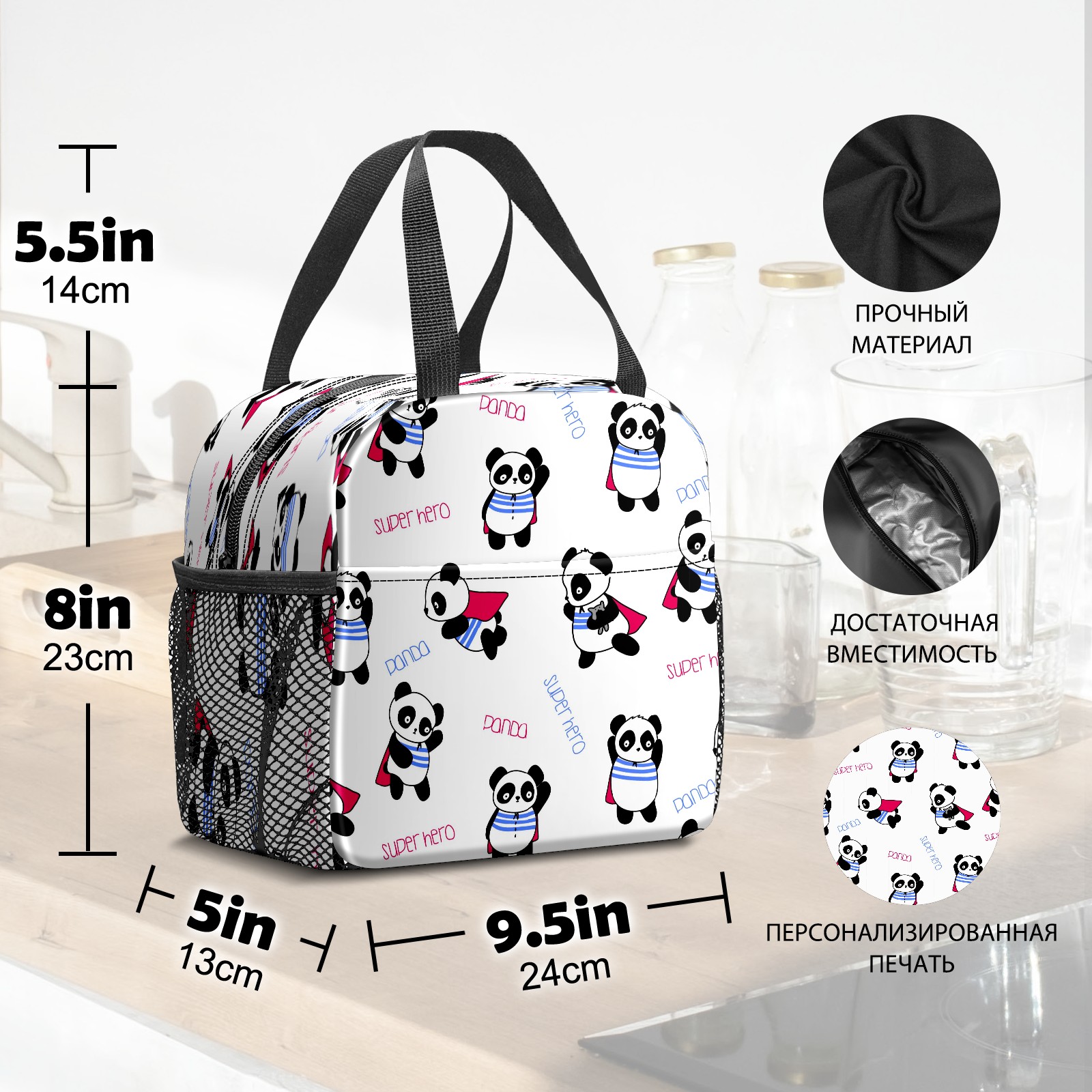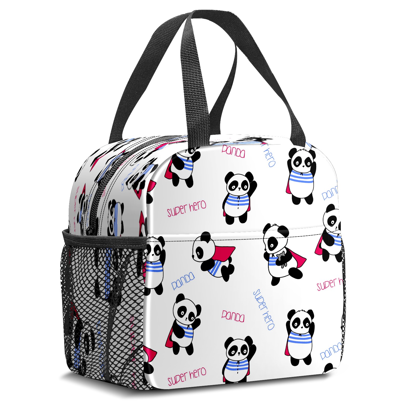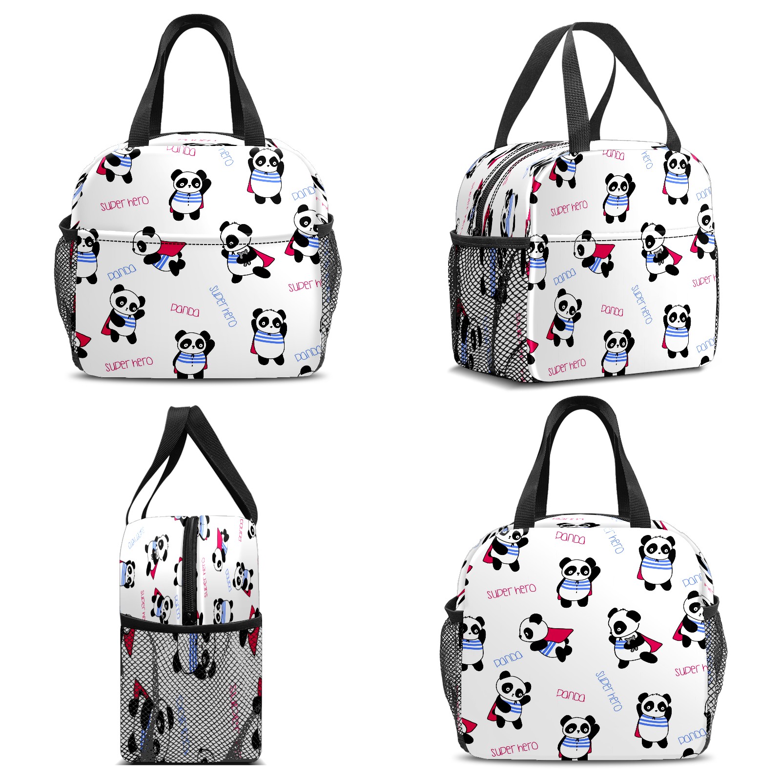 Lunch Bag,Lunch Box for Women Men,Hand Drawn Cartoon Panda - White Cute Animal Reusable Insulated Lunch Tote,Small Leakproof Cute Lunch Cooler with High Capacity for Work,Picnic,Camping