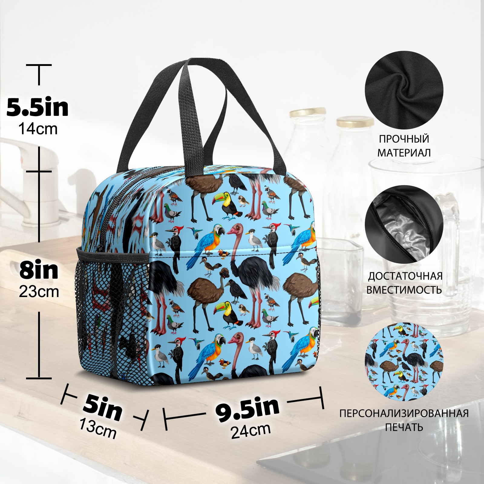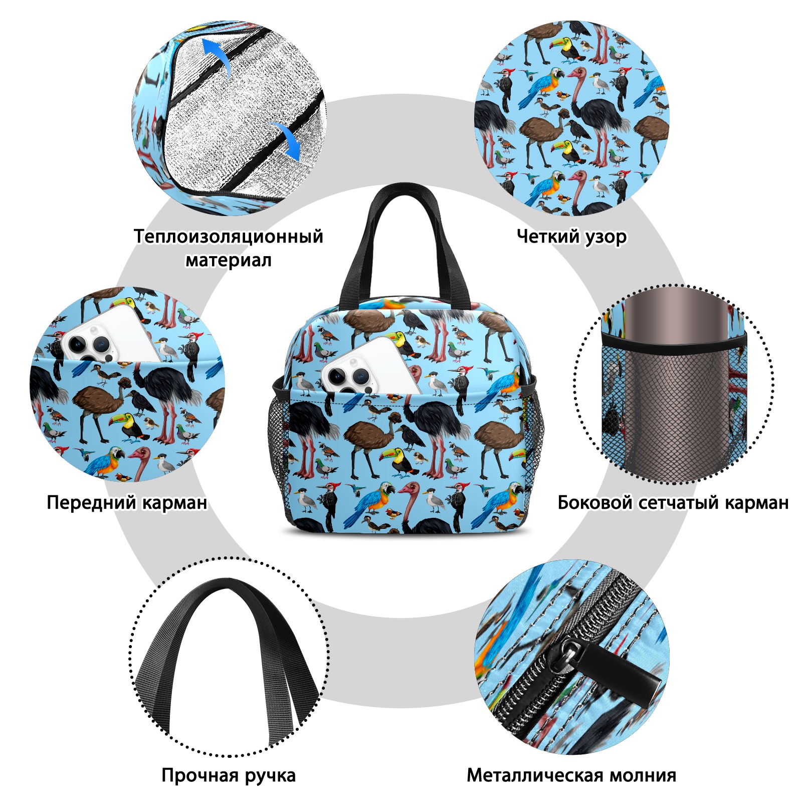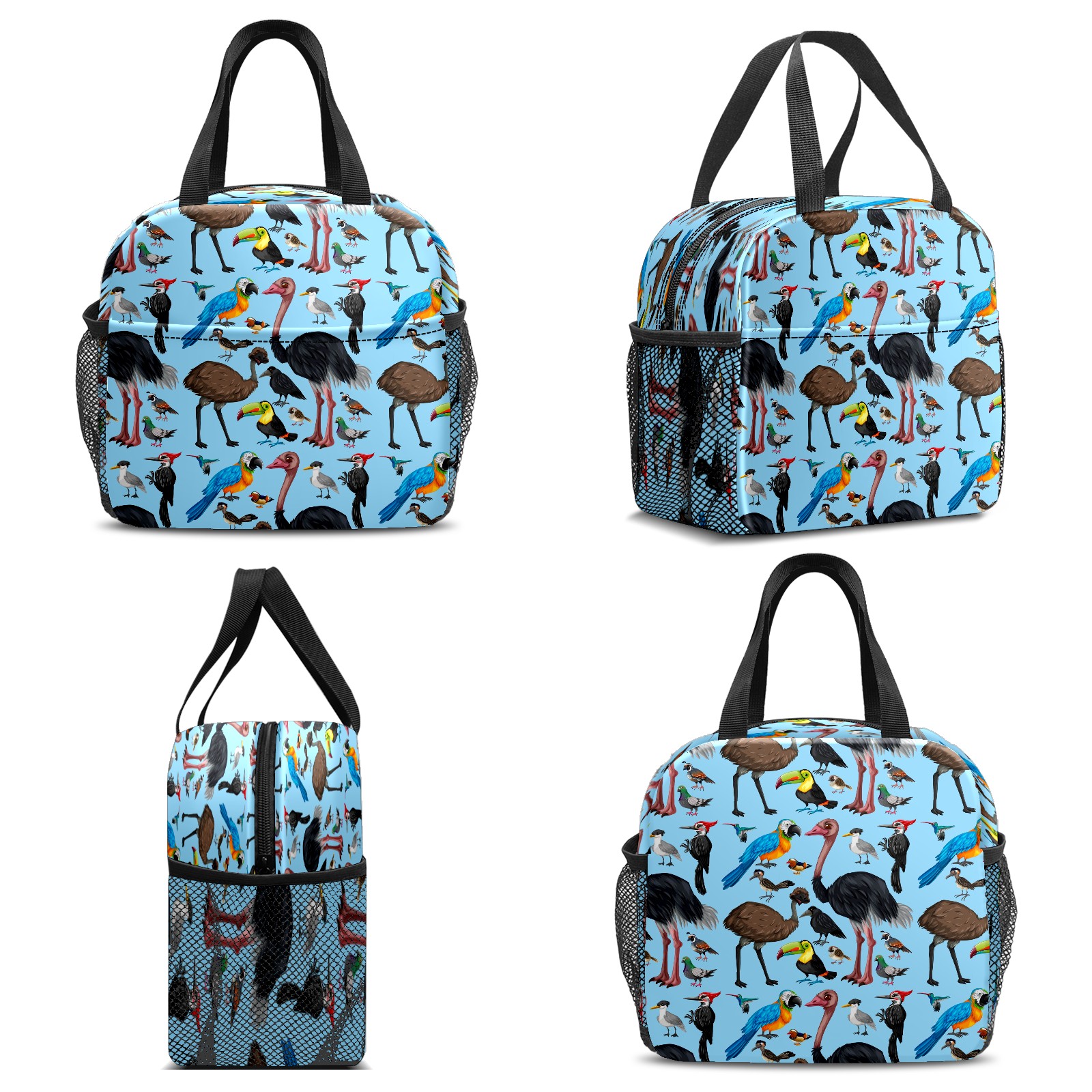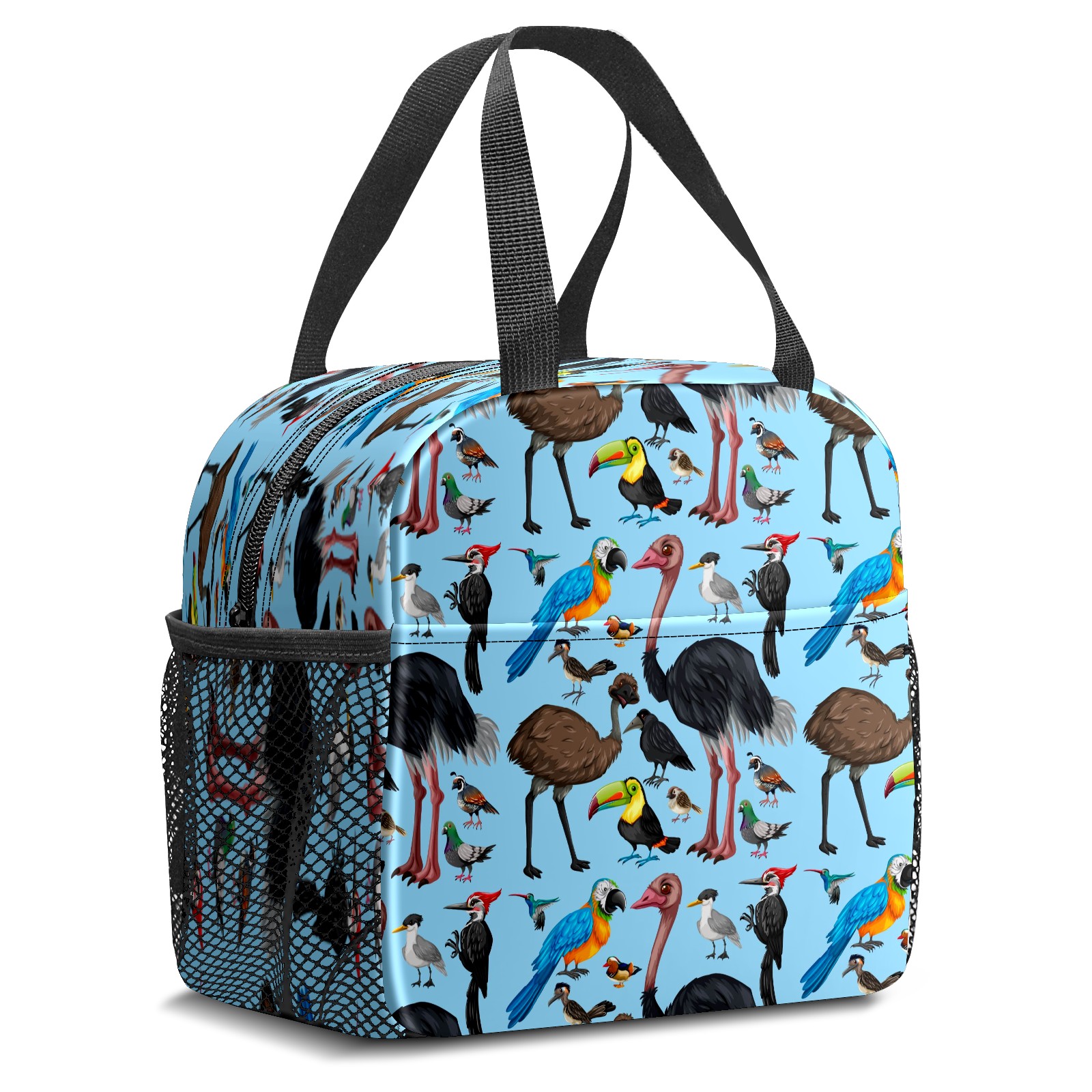 Lunch Bag,Lunch Box for Women Men,Cute Wild Parrot Birds - Cartoon Animal Blue Reusable Insulated Lunch Tote,Small Leakproof Cute Lunch Cooler with High Capacity for Work,Picnic,Camping