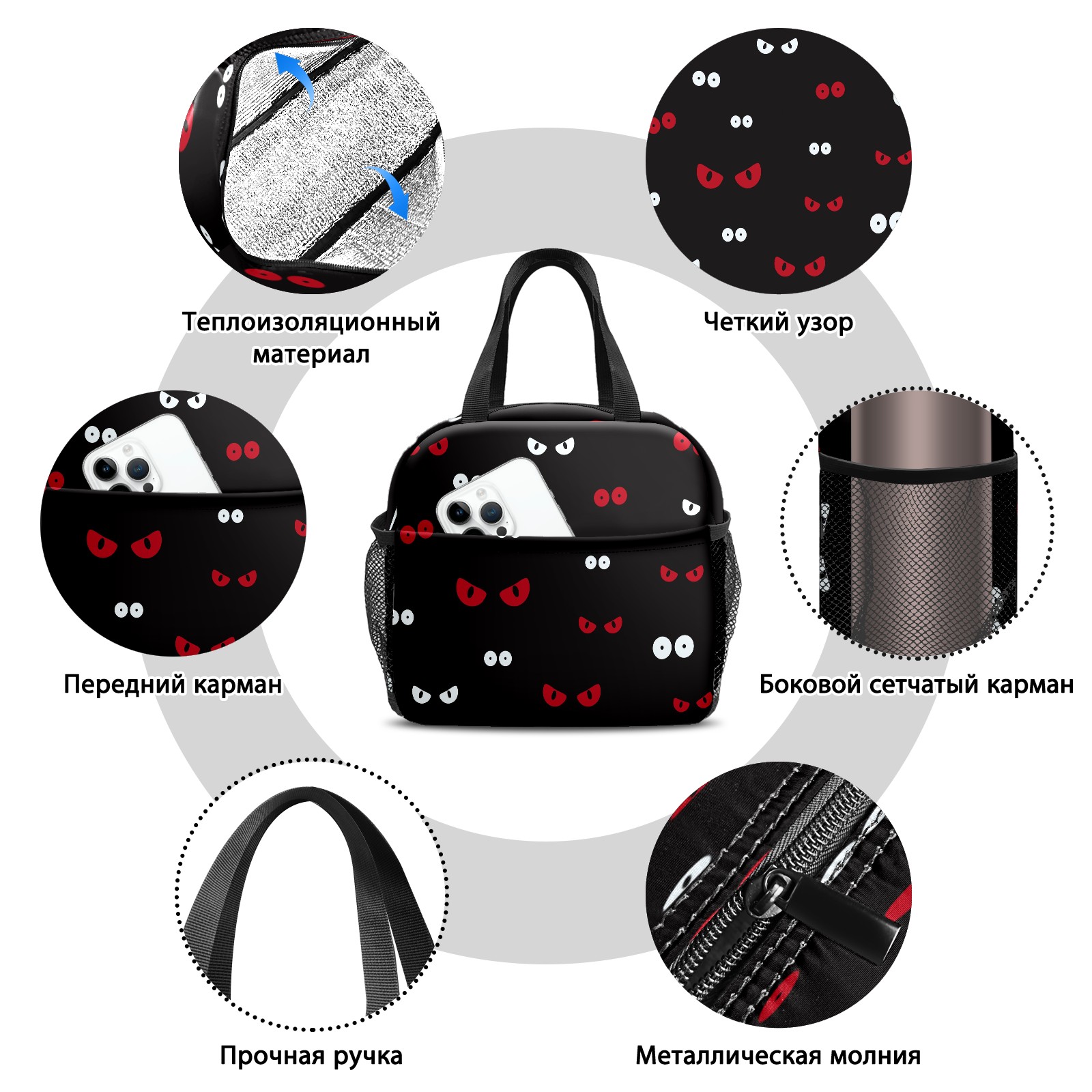 Lunch Bag,Lunch Box for Women Men,Halloween Spooky Eyes - Black White Red Reusable Insulated Lunch Tote,Small Leakproof Cute Lunch Cooler with High Capacity for Work,Picnic,Camping
