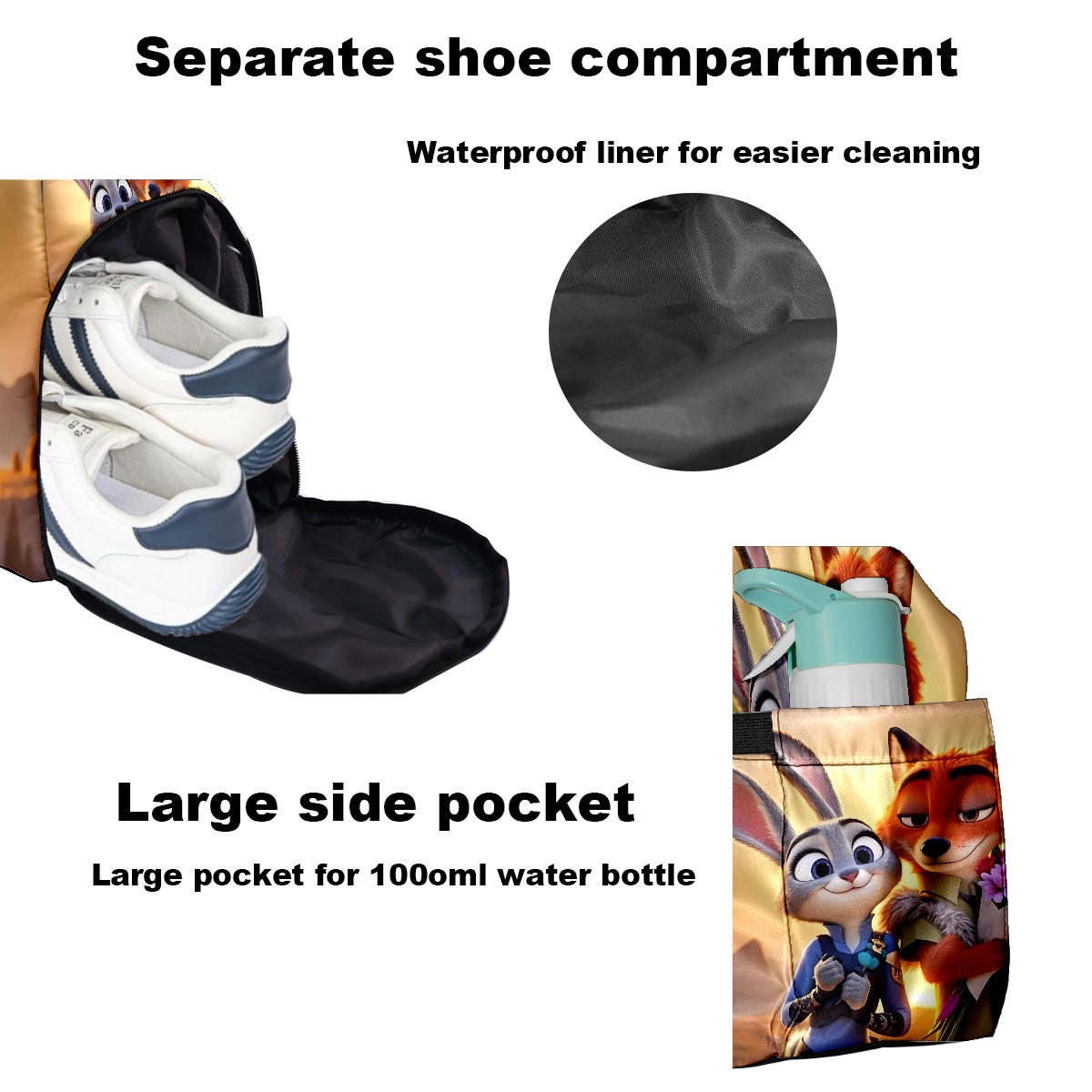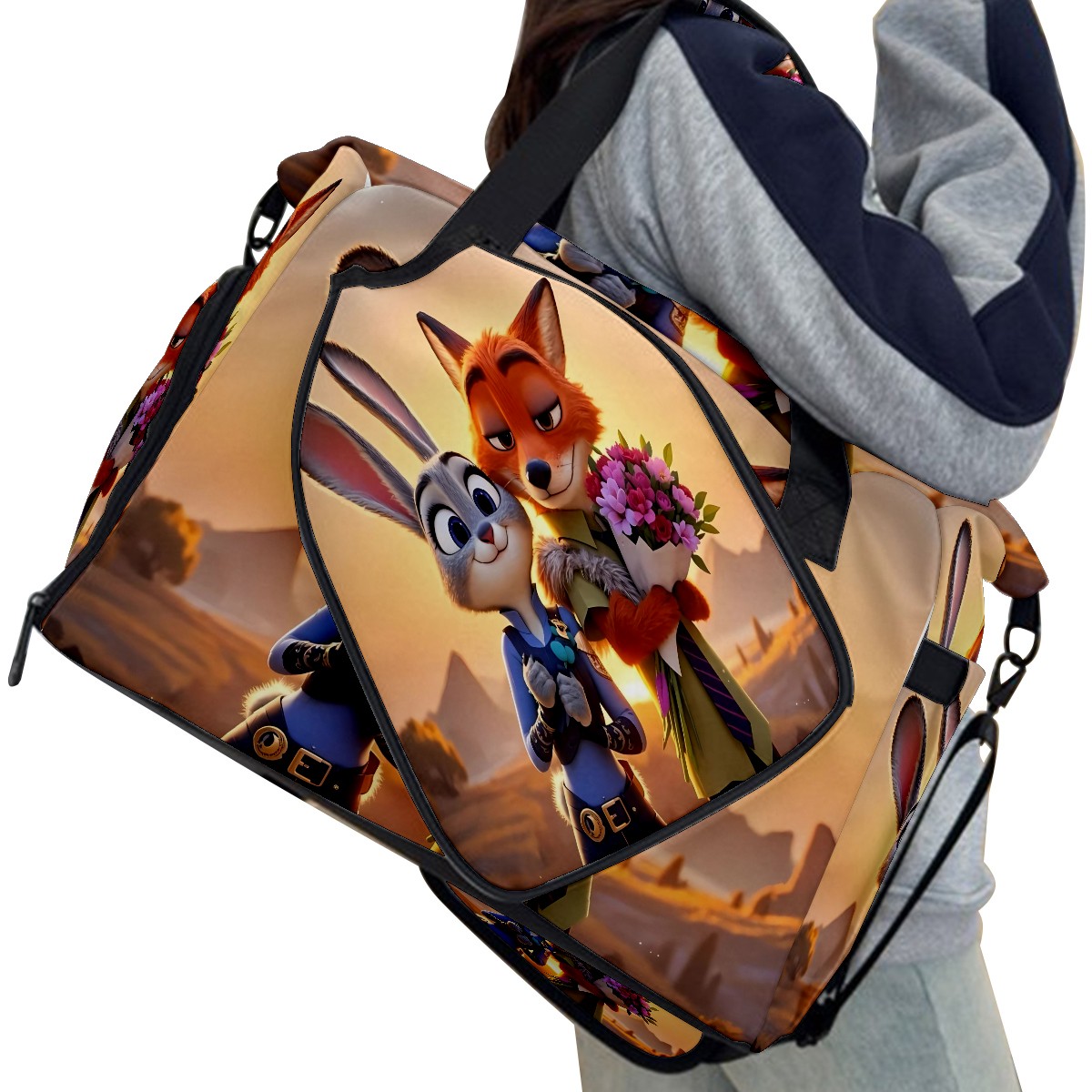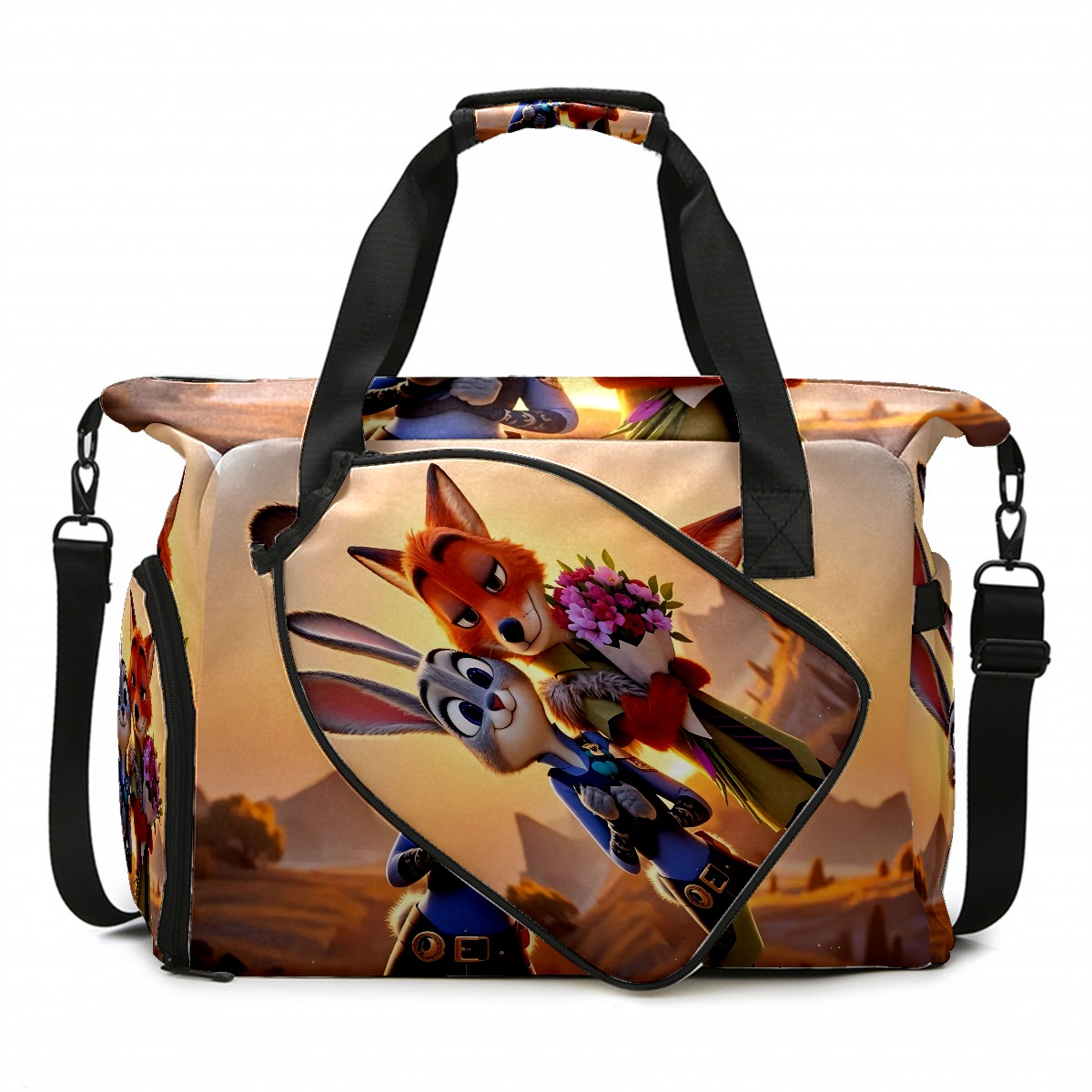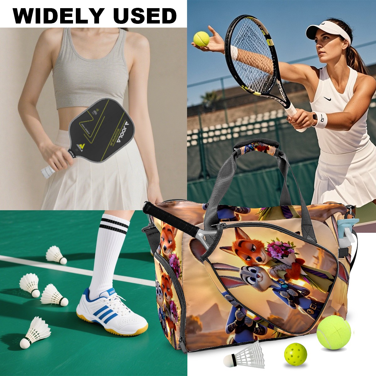 Pickleball Tote Bag Carryall for Paddles Balls and Accessories, Portable Lightweight Gear Bag for Players(疯狂动物城 新增 IPad 02)