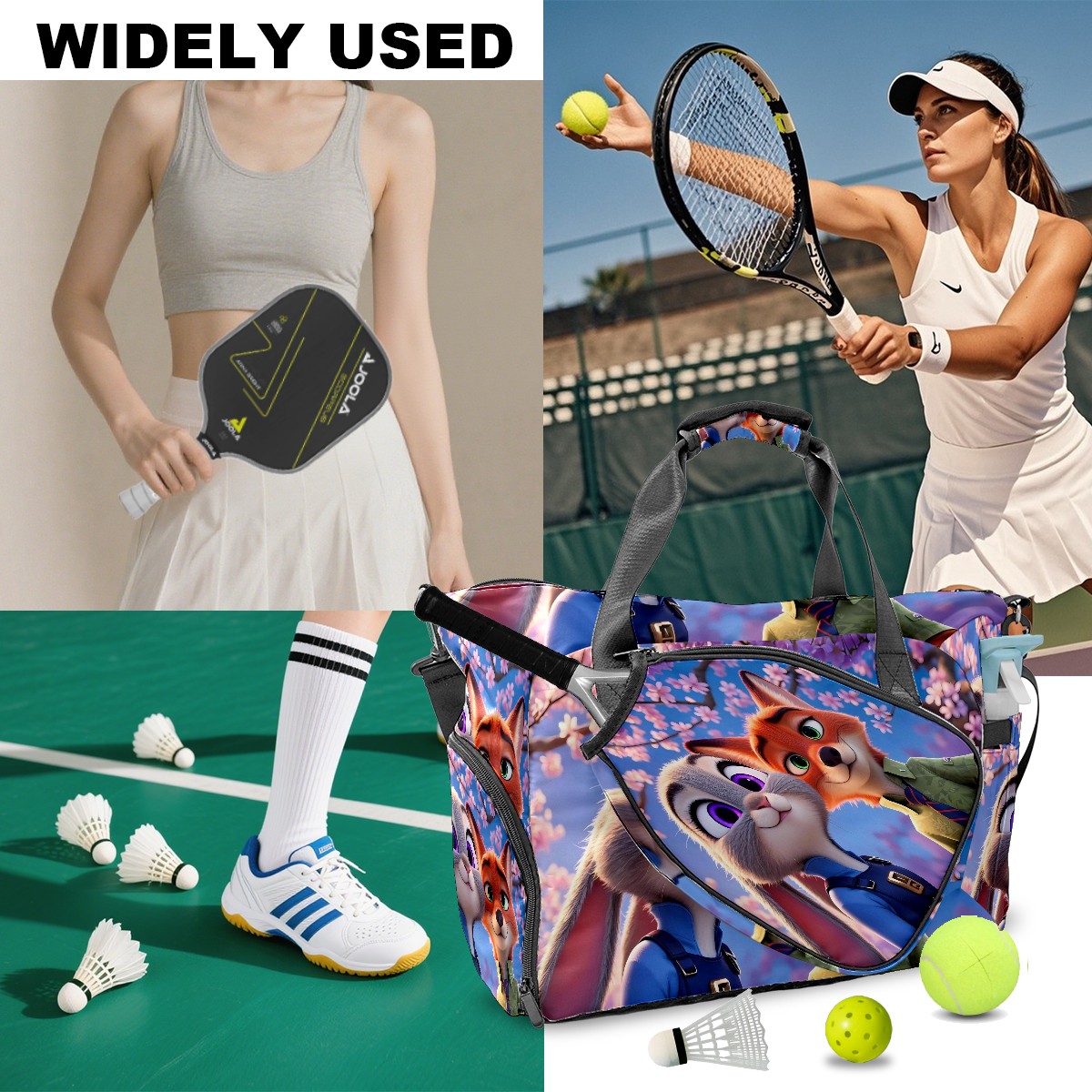 Pickleball Tote Bag Carryall for Paddles Balls and Accessories, Portable Lightweight Gear Bag for Players(疯狂动物城 电脑版 06)