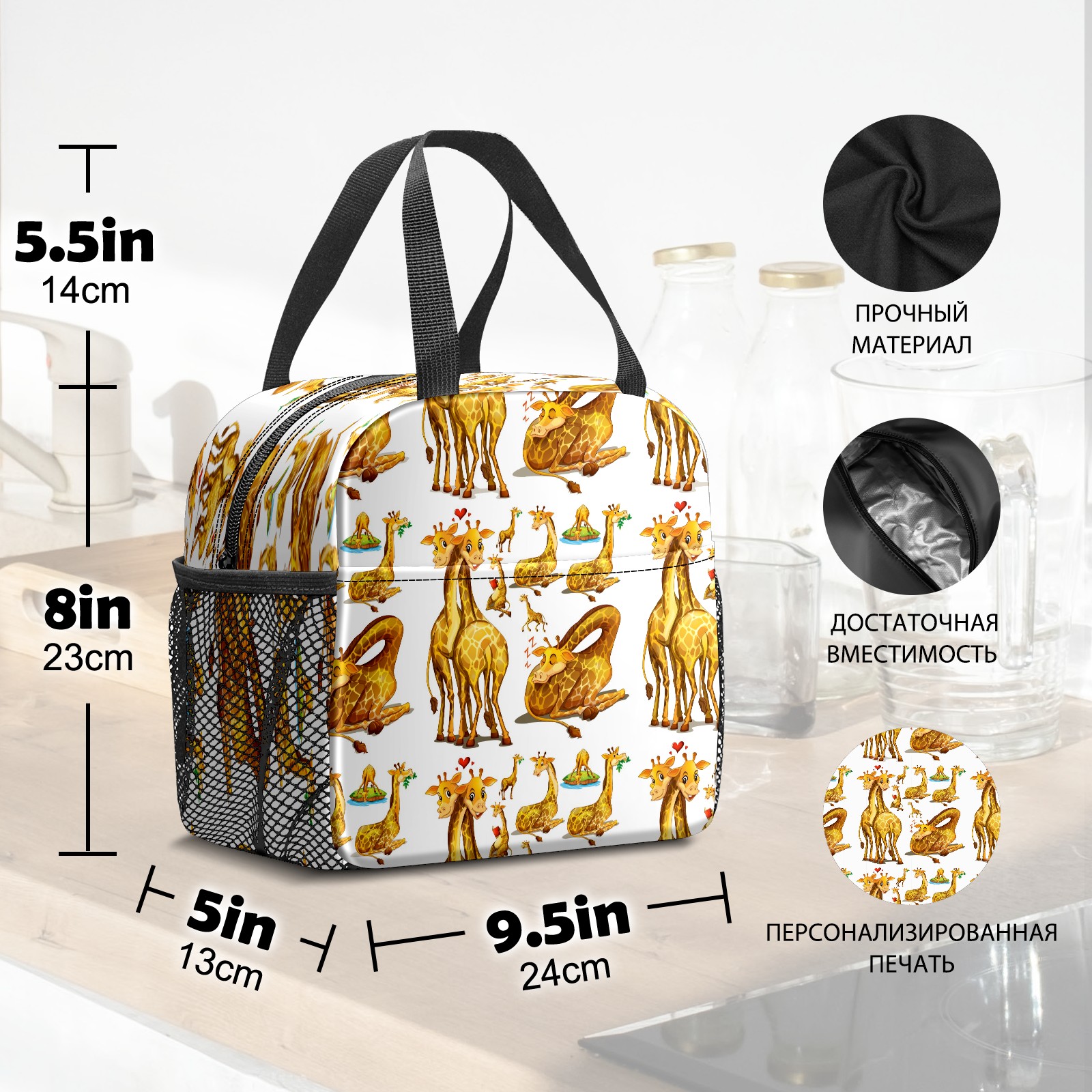 Lunch Bag,Lunch Box for Women Men,Cartoon Cute Yellow Giraffe - Africa Wild Animal Reusable Insulated Lunch Tote,Small Leakproof Cute Lunch Cooler with High Capacity for Work,Picnic,Camping