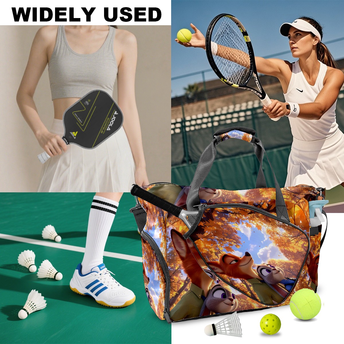 Pickleball Tote Bag Carryall for Paddles Balls and Accessories, Portable Lightweight Gear Bag for Players(疯狂动物城 IPad版 07)