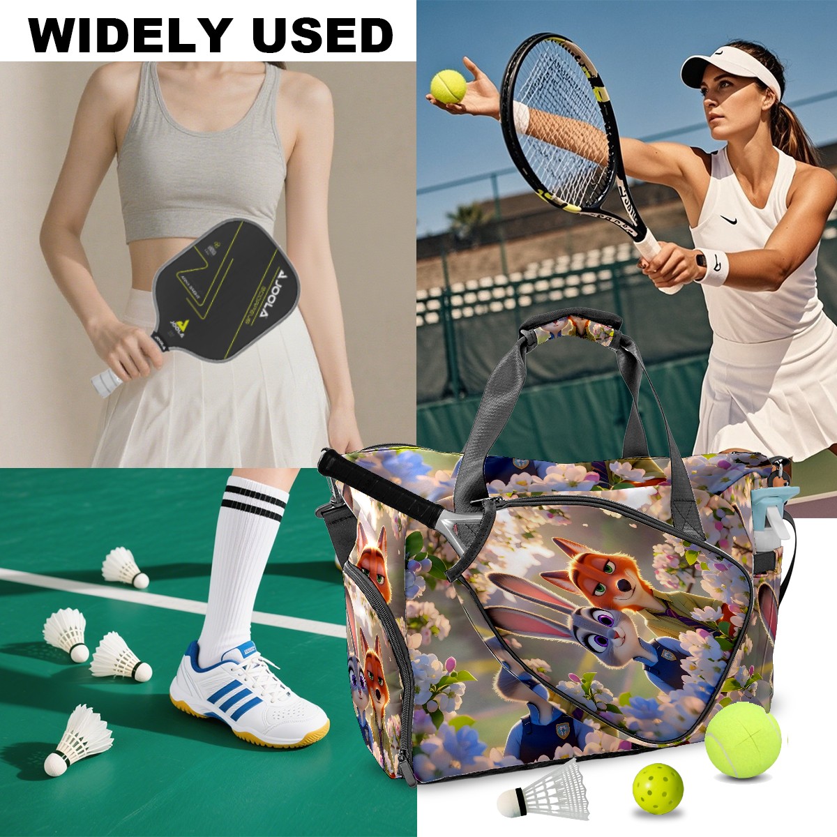 Pickleball Tote Bag Carryall for Paddles Balls and Accessories, Portable Lightweight Gear Bag for Players(疯狂动物城 IPad版 04)