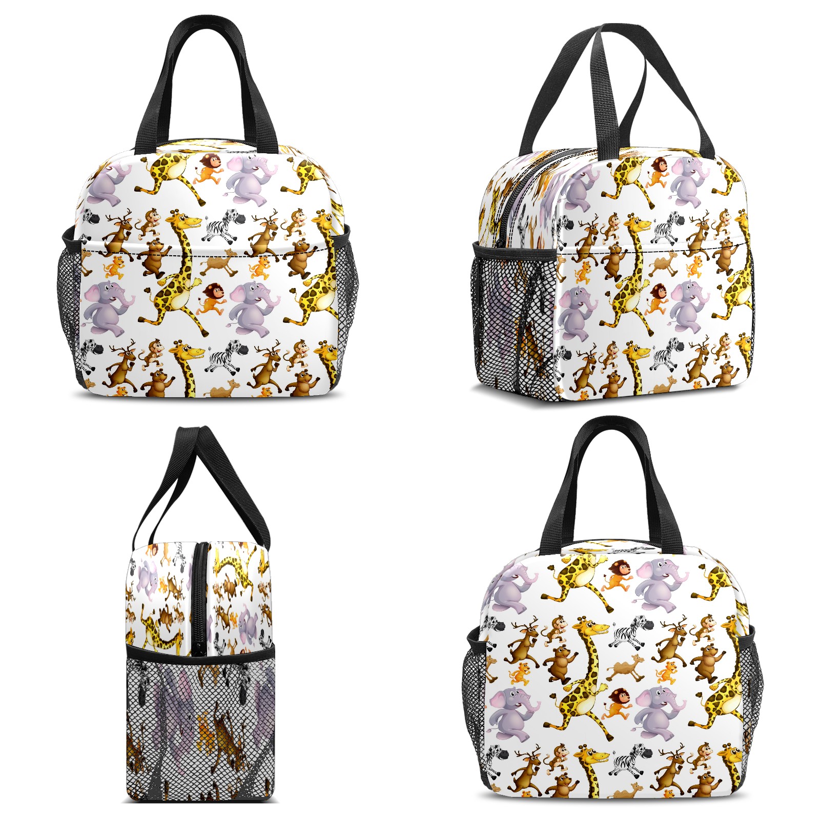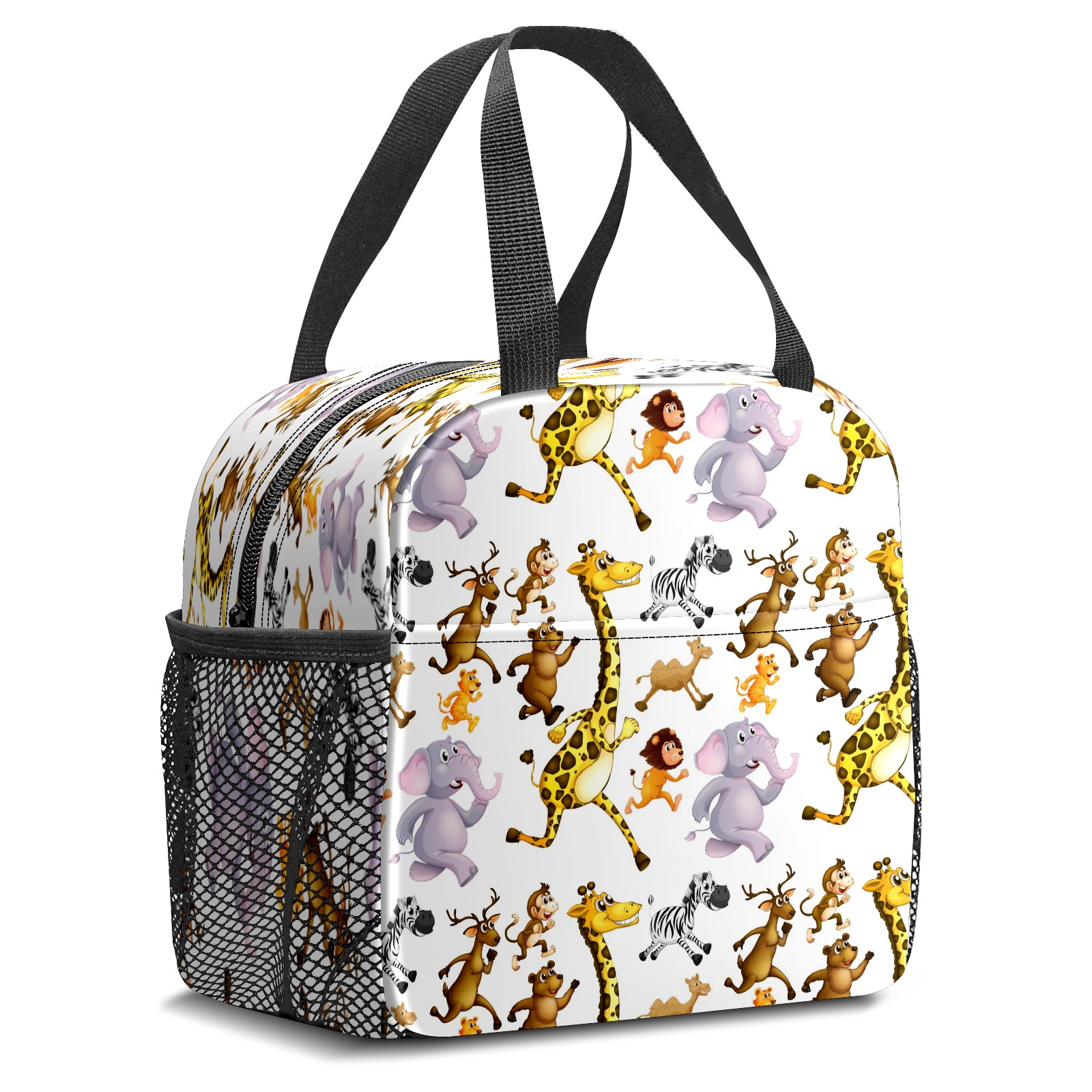 Lunch Bag,Lunch Box for Women Men,Cartoon Cute Wild Animals - Giraffe Elephant Reusable Insulated Lunch Tote,Small Leakproof Cute Lunch Cooler with High Capacity for Work,Picnic,Camping