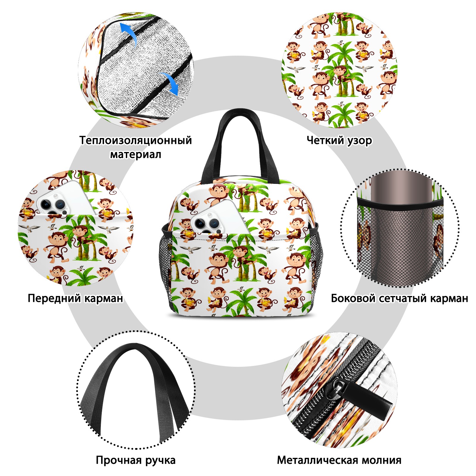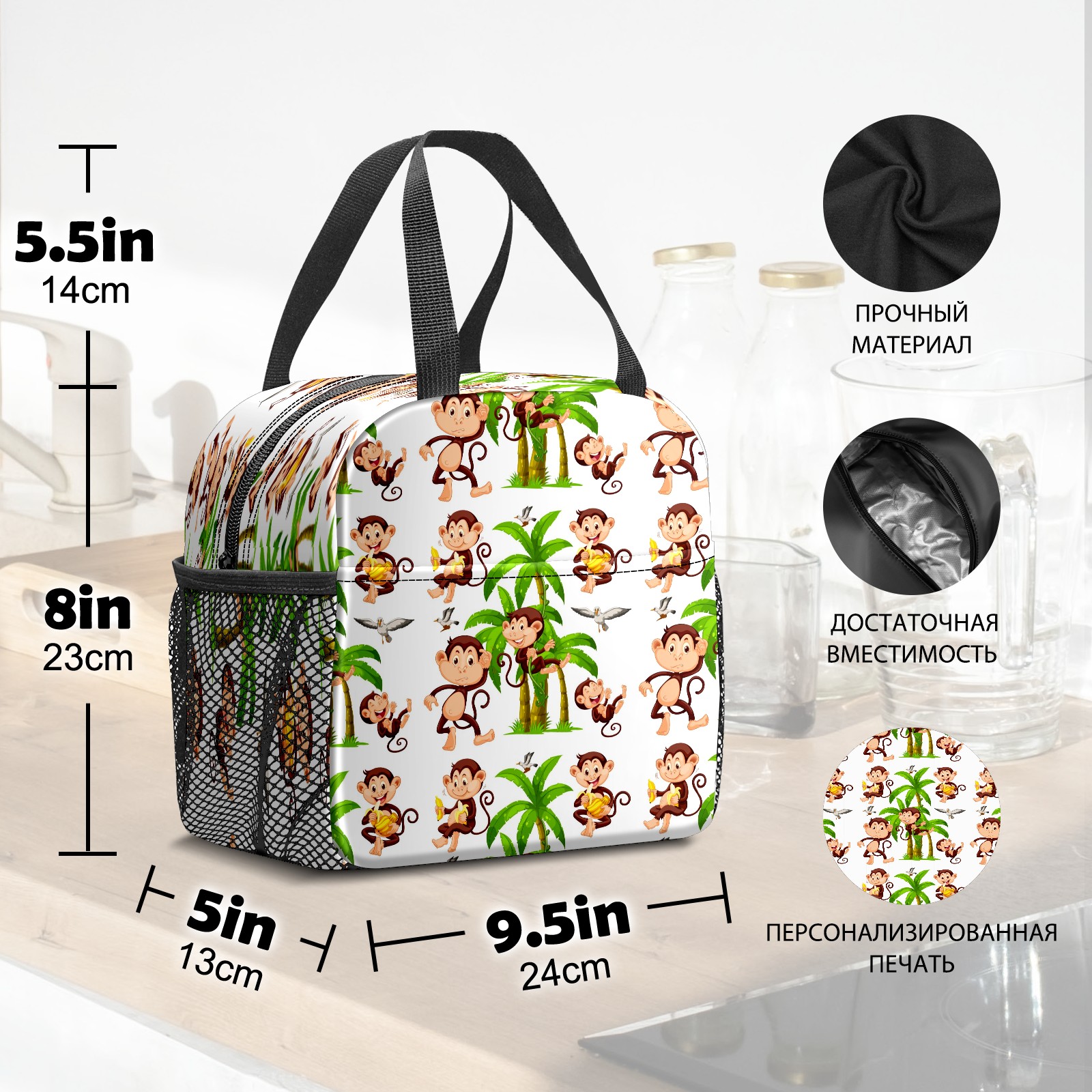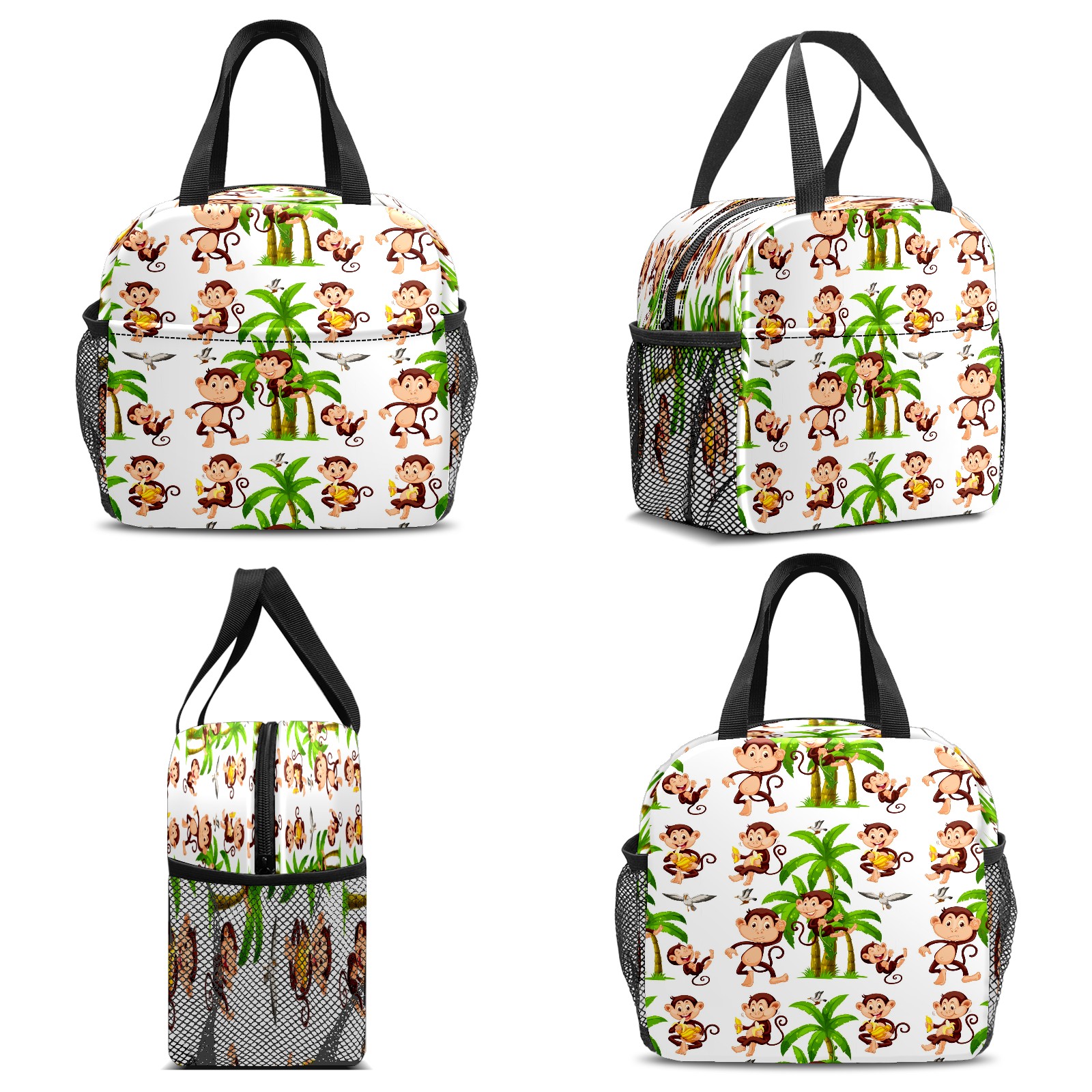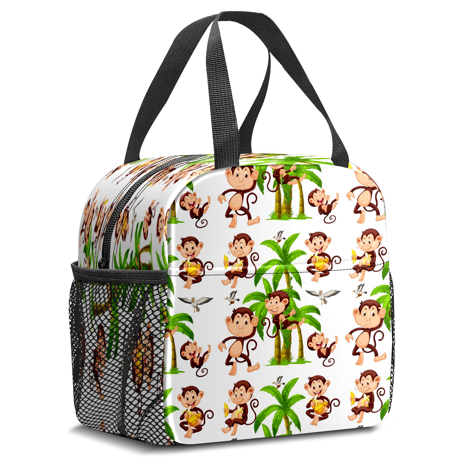 Lunch Bag,Lunch Box for Women Men,Cartoon Cute Monkeys Coconut Trees - Cartoon Wild Animal Reusable Insulated Lunch Tote,Small Leakproof Cute Lunch Cooler with High Capacity for Work,Picnic,Camping
