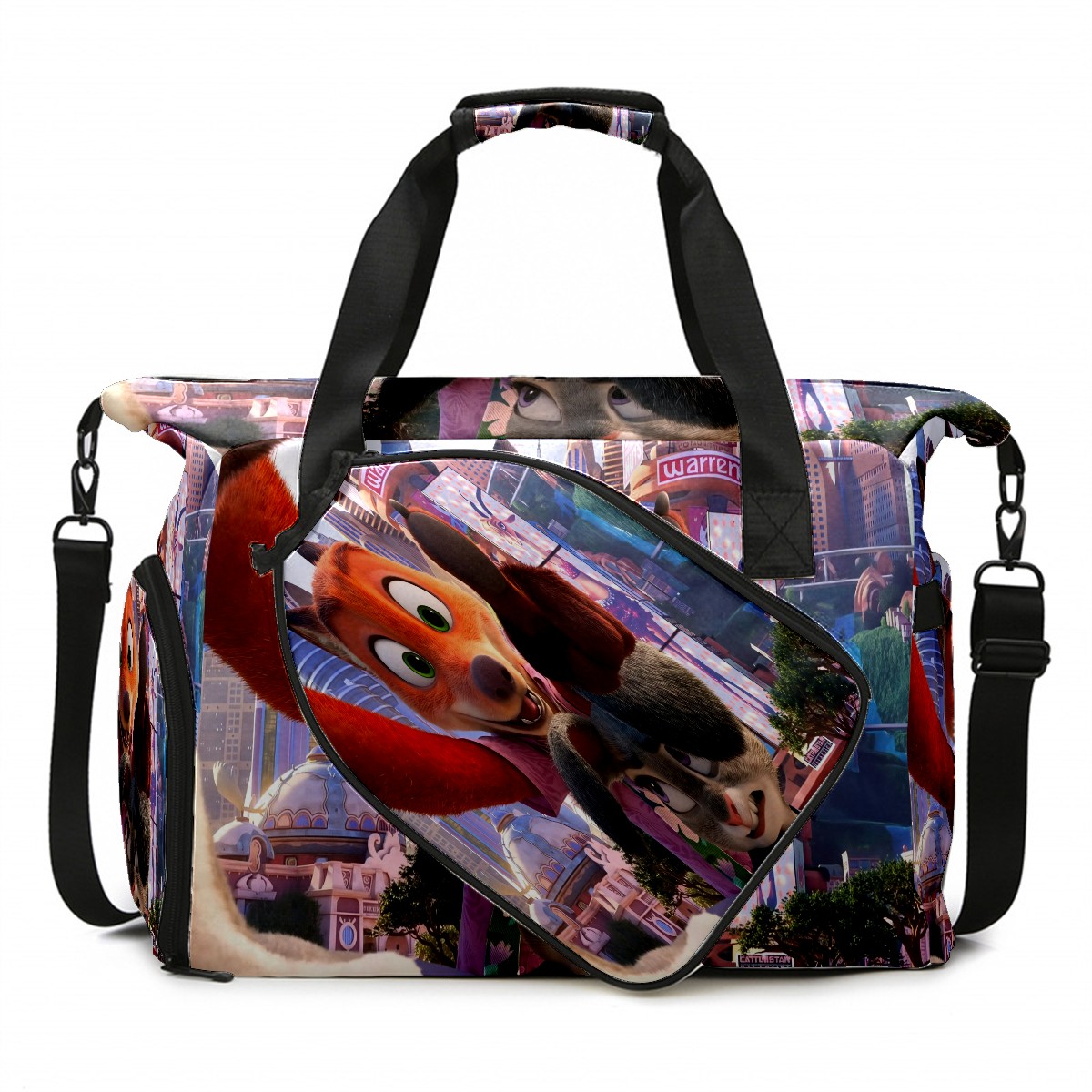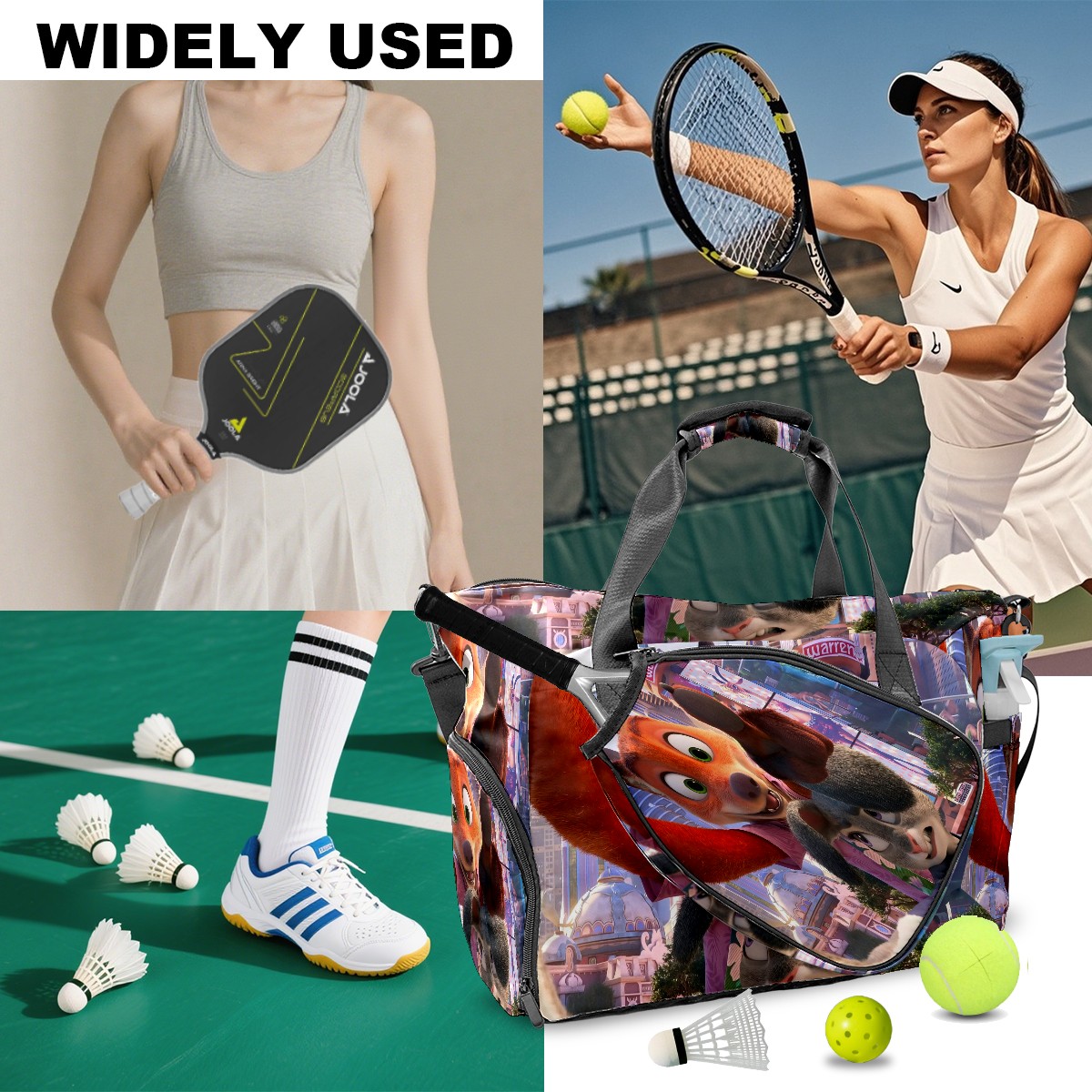 Pickleball Tote Bag Carryall for Paddles Balls and Accessories, Portable Lightweight Gear Bag for Players(疯狂动物城 电脑05)