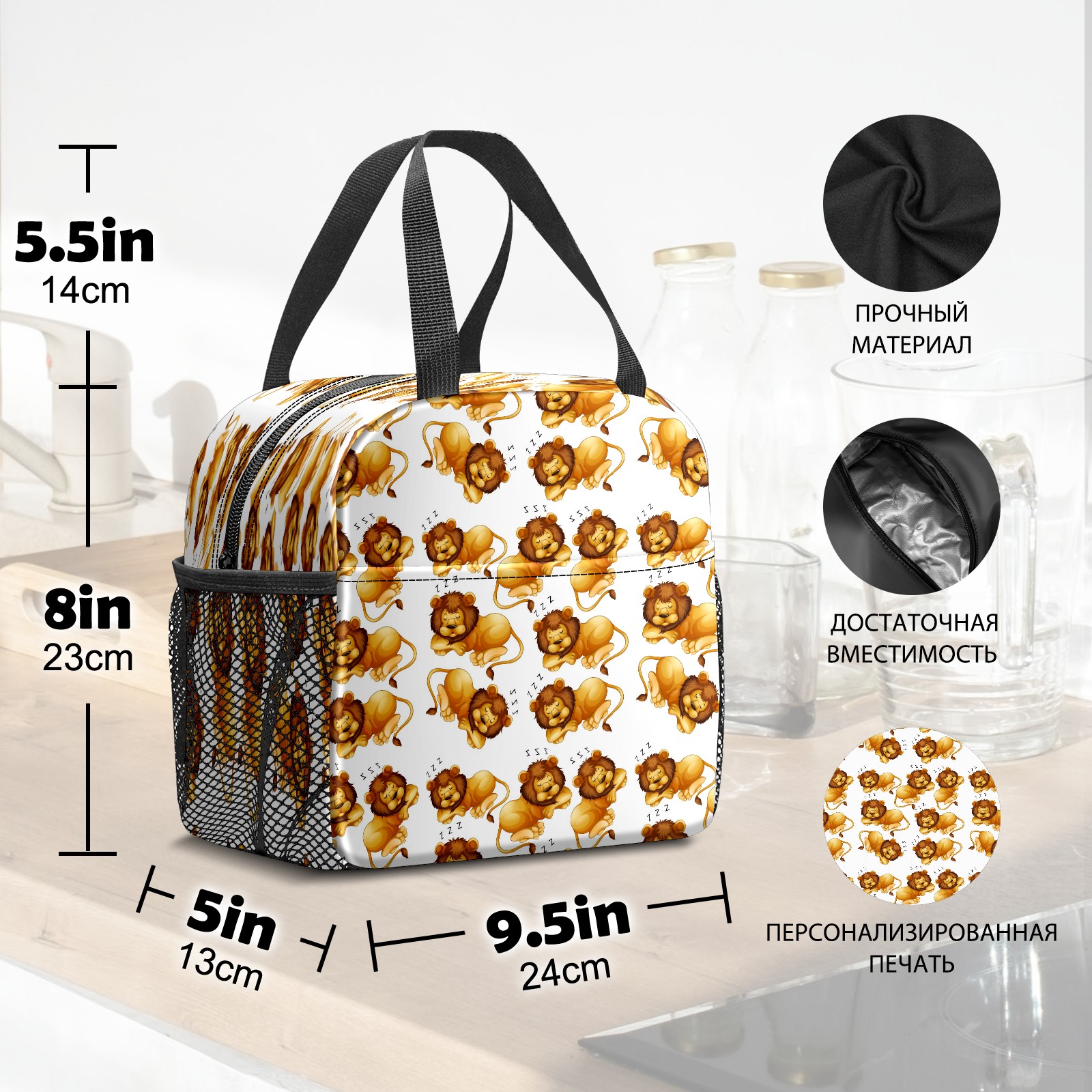 Lunch Bag,Lunch Box for Women Men,Cartoon Cute Sleep Lion - Hand Drawn Animal Reusable Insulated Lunch Tote,Small Leakproof Cute Lunch Cooler with High Capacity for Work,Picnic,Camping