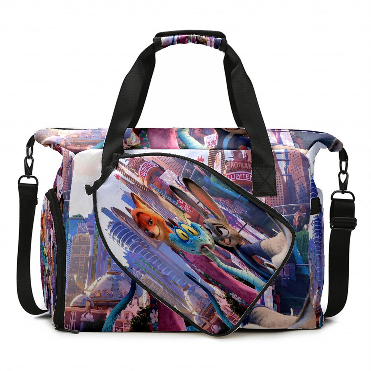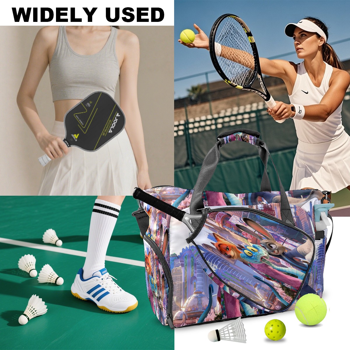 Pickleball Tote Bag Carryall for Paddles Balls and Accessories, Portable Lightweight Gear Bag for Players(疯狂动物城 电脑03)