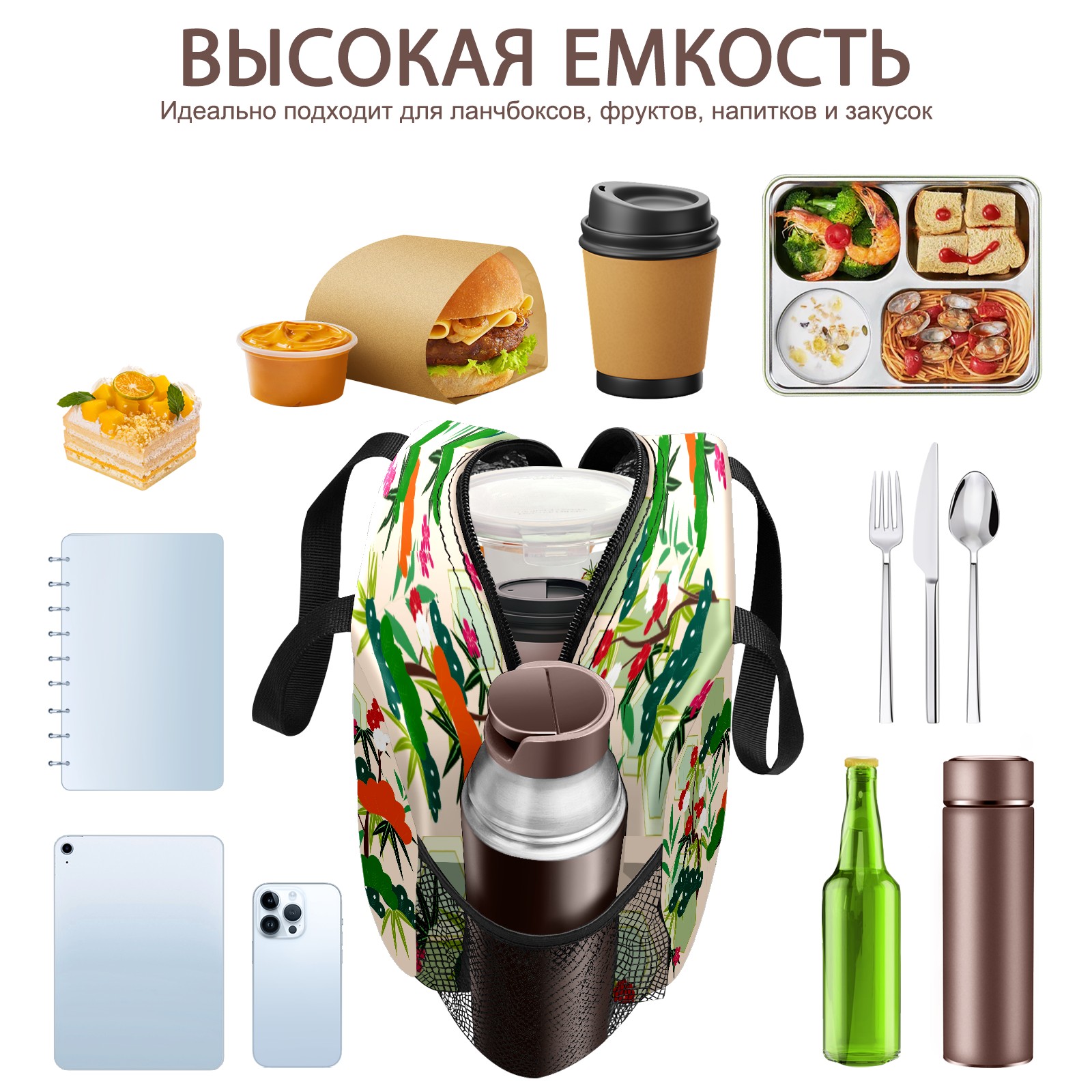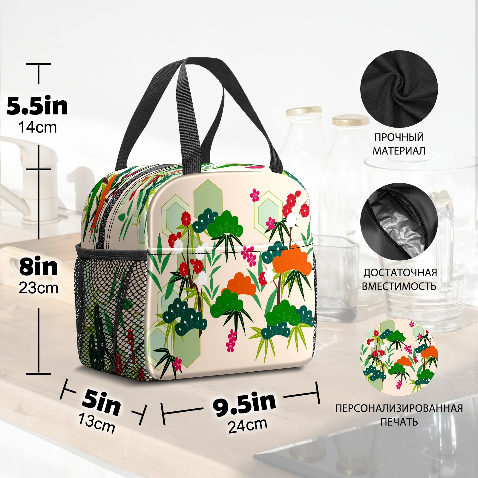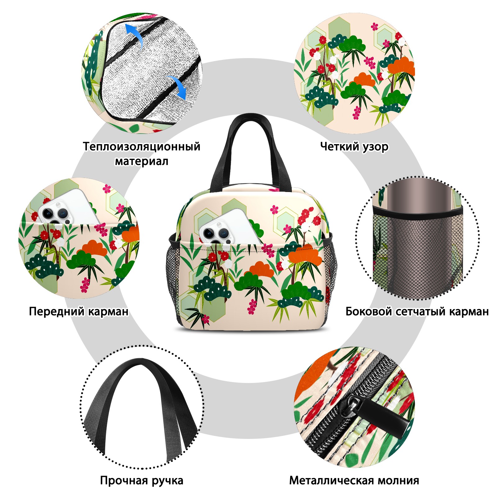 Lunch Bag,Lunch Box for Women Men,Flower Pattern Reusable Insulated Lunch Tote,Small Leakproof Cute Lunch Cooler with High Capacity for Work,Picnic,Camping