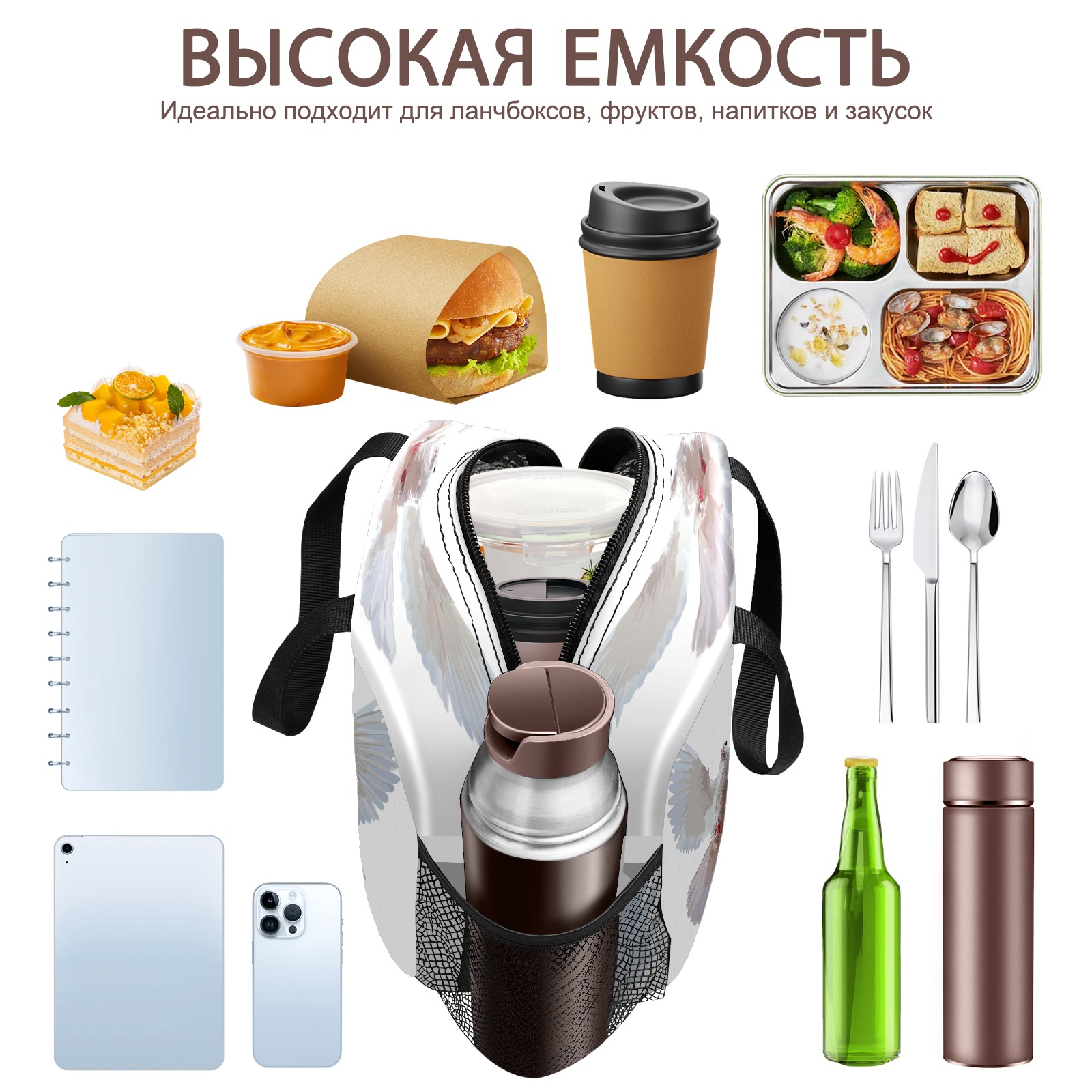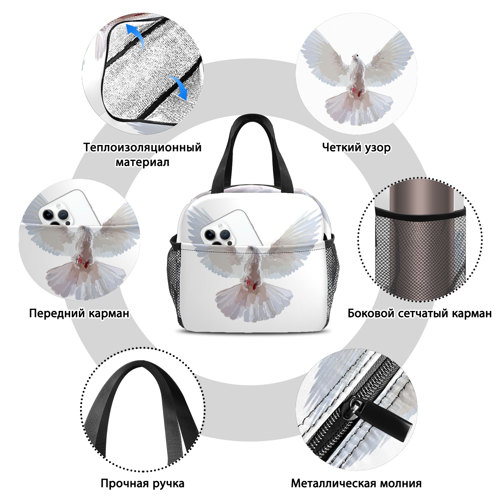 Lunch Bag,Lunch Box for Women Men,Flying Pigeon Reusable Insulated Lunch Tote,Small Leakproof Cute Lunch Cooler with High Capacity for Work,Picnic,Camping