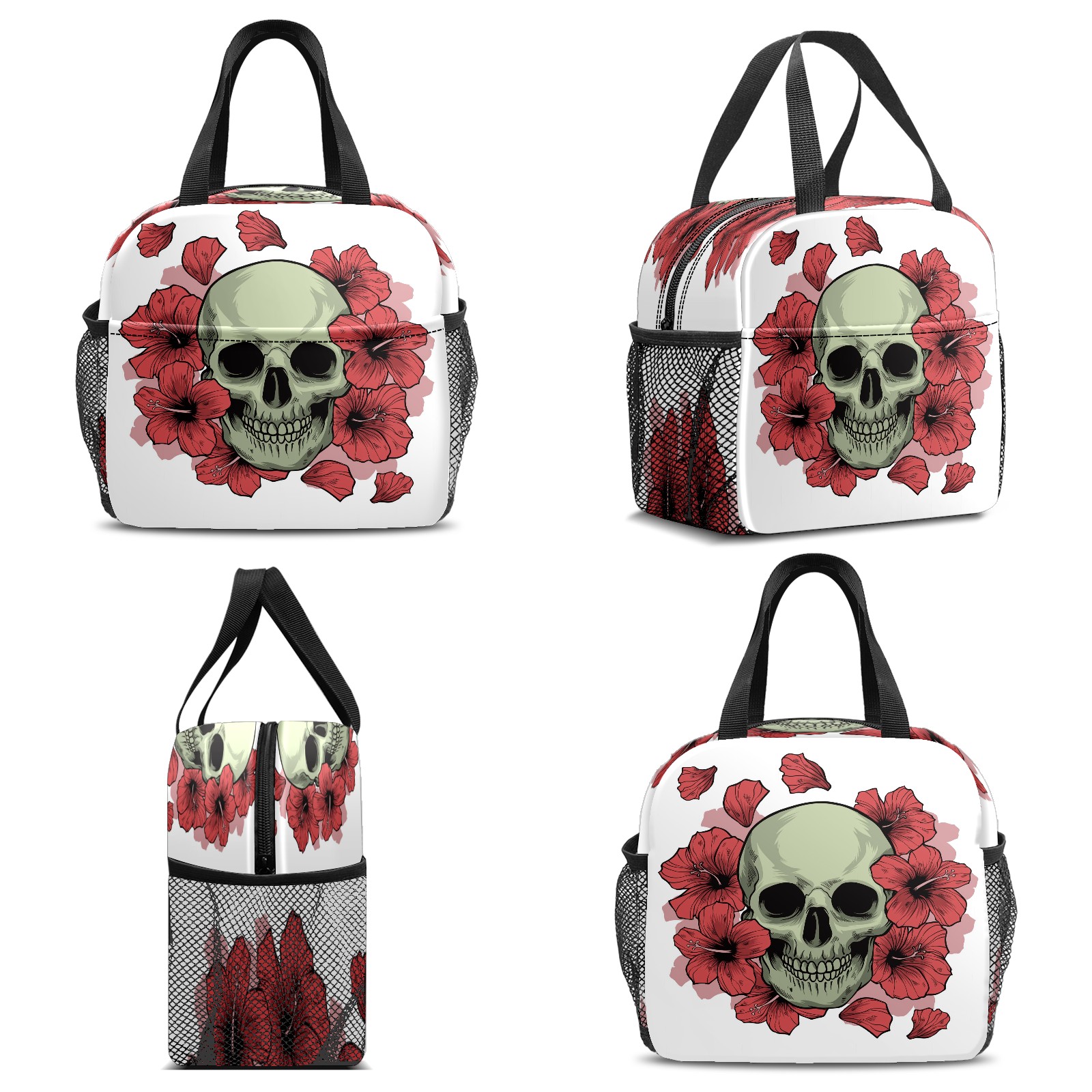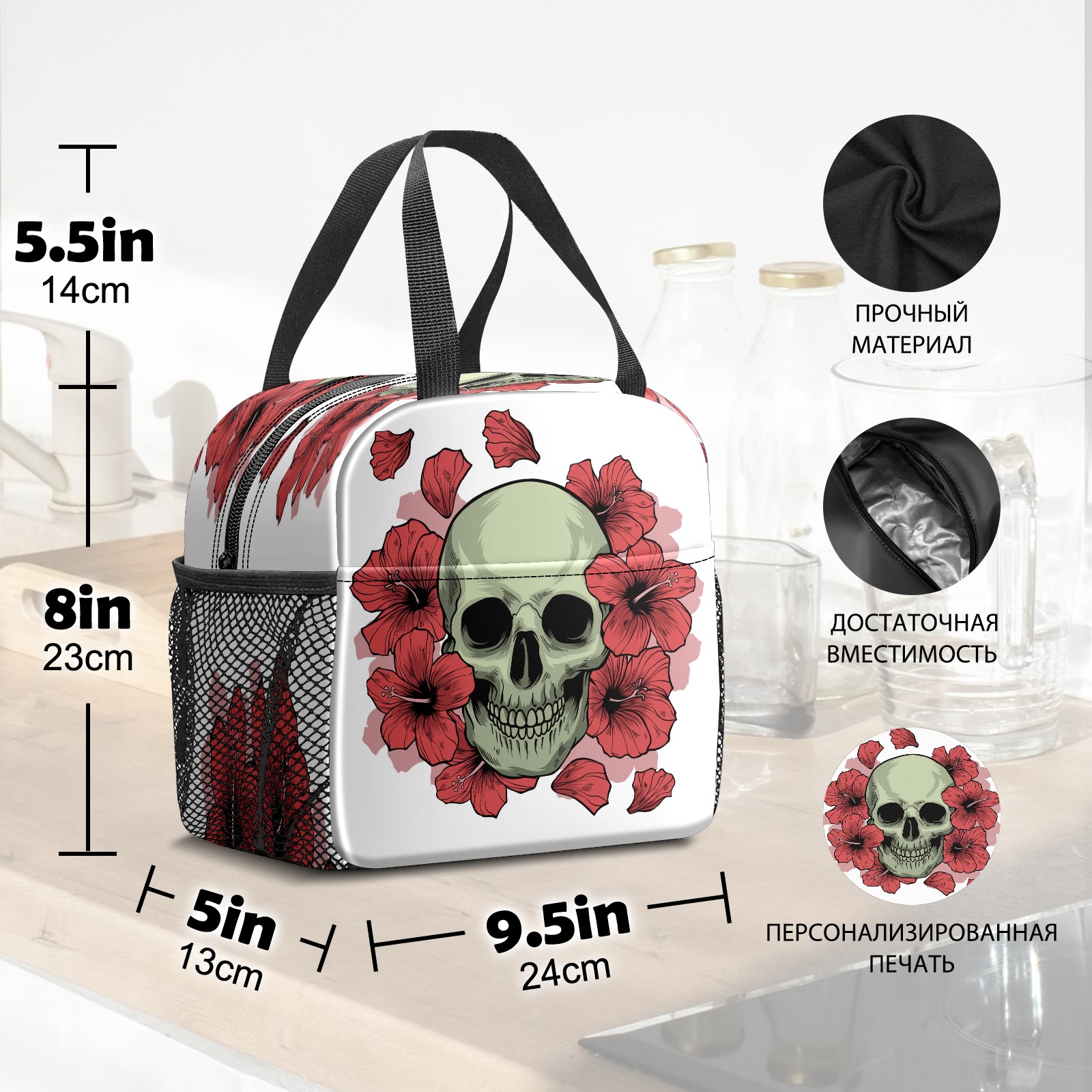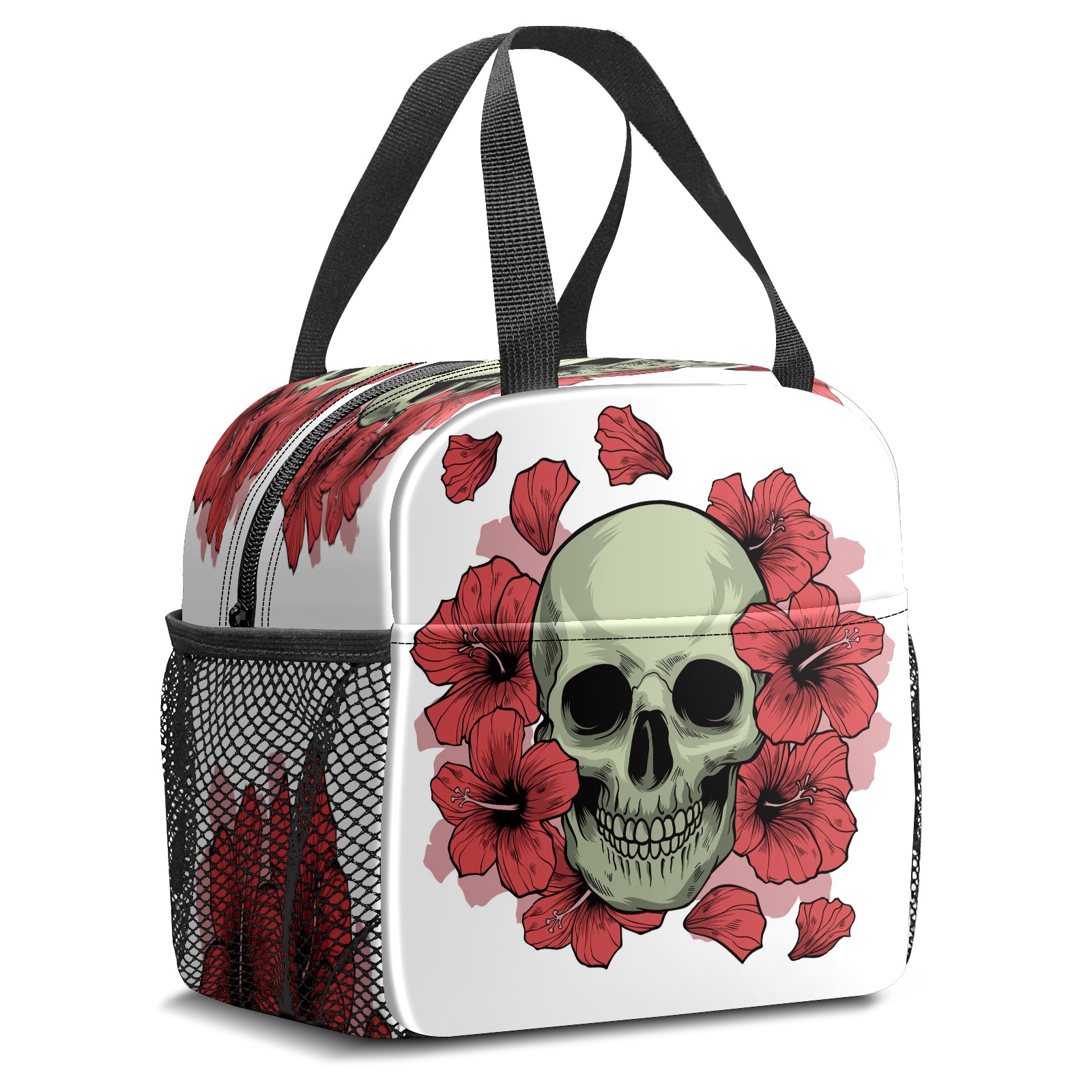 Lunch Bag,Lunch Box for Women Men,Skull Red Rose Flower - Halloween Reusable Insulated Lunch Tote,Small Leakproof Cute Lunch Cooler with High Capacity for Work,Picnic,Camping