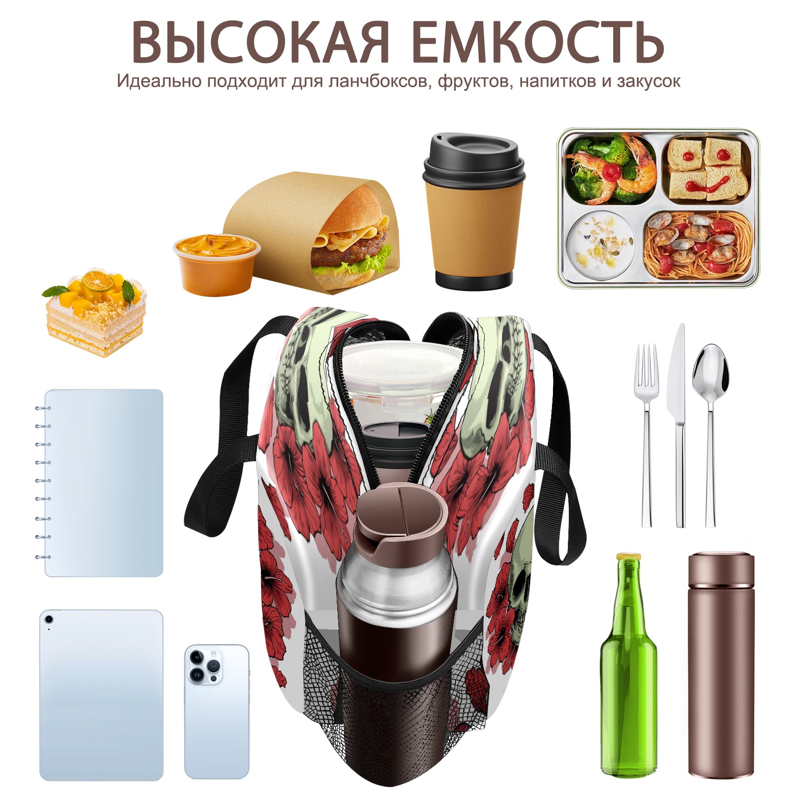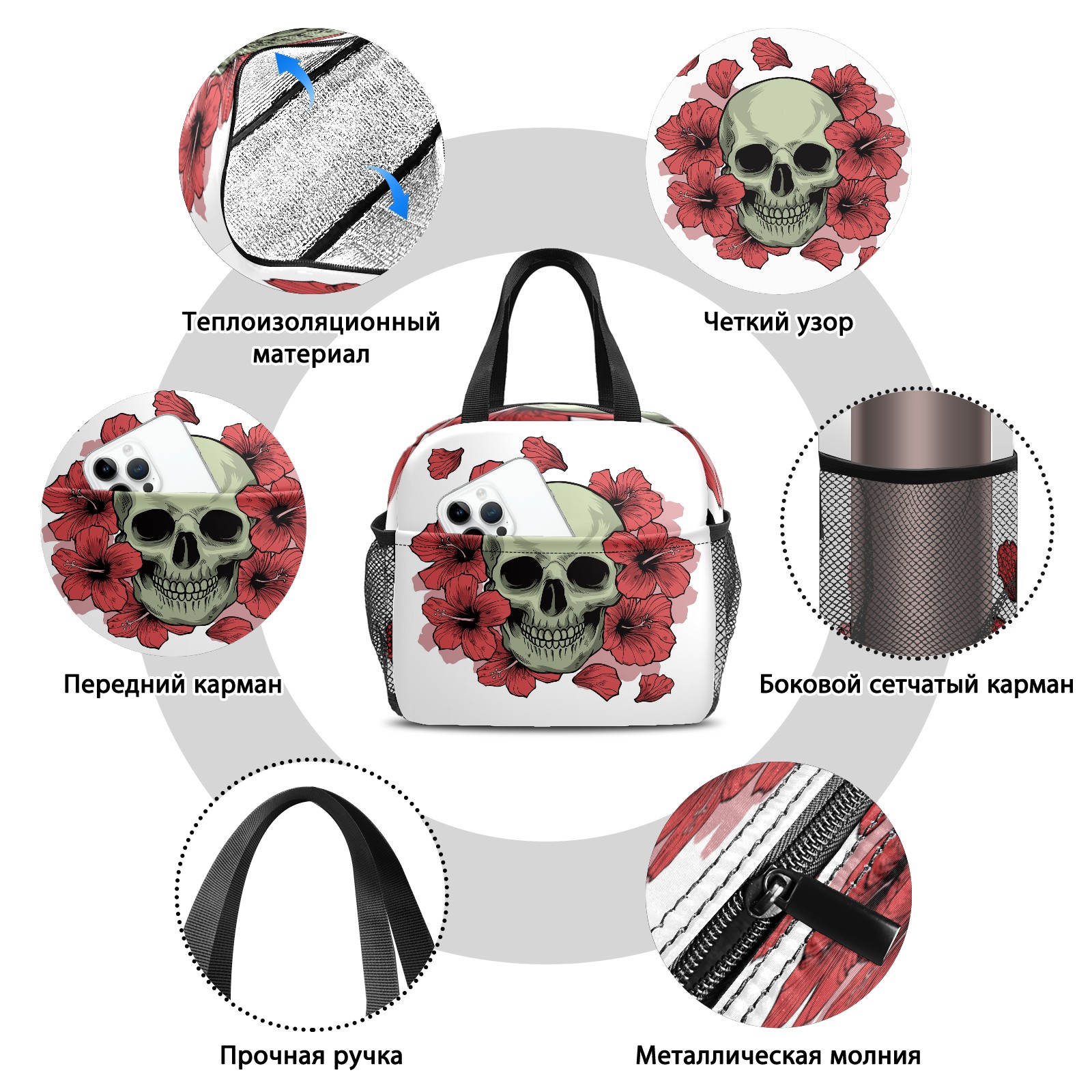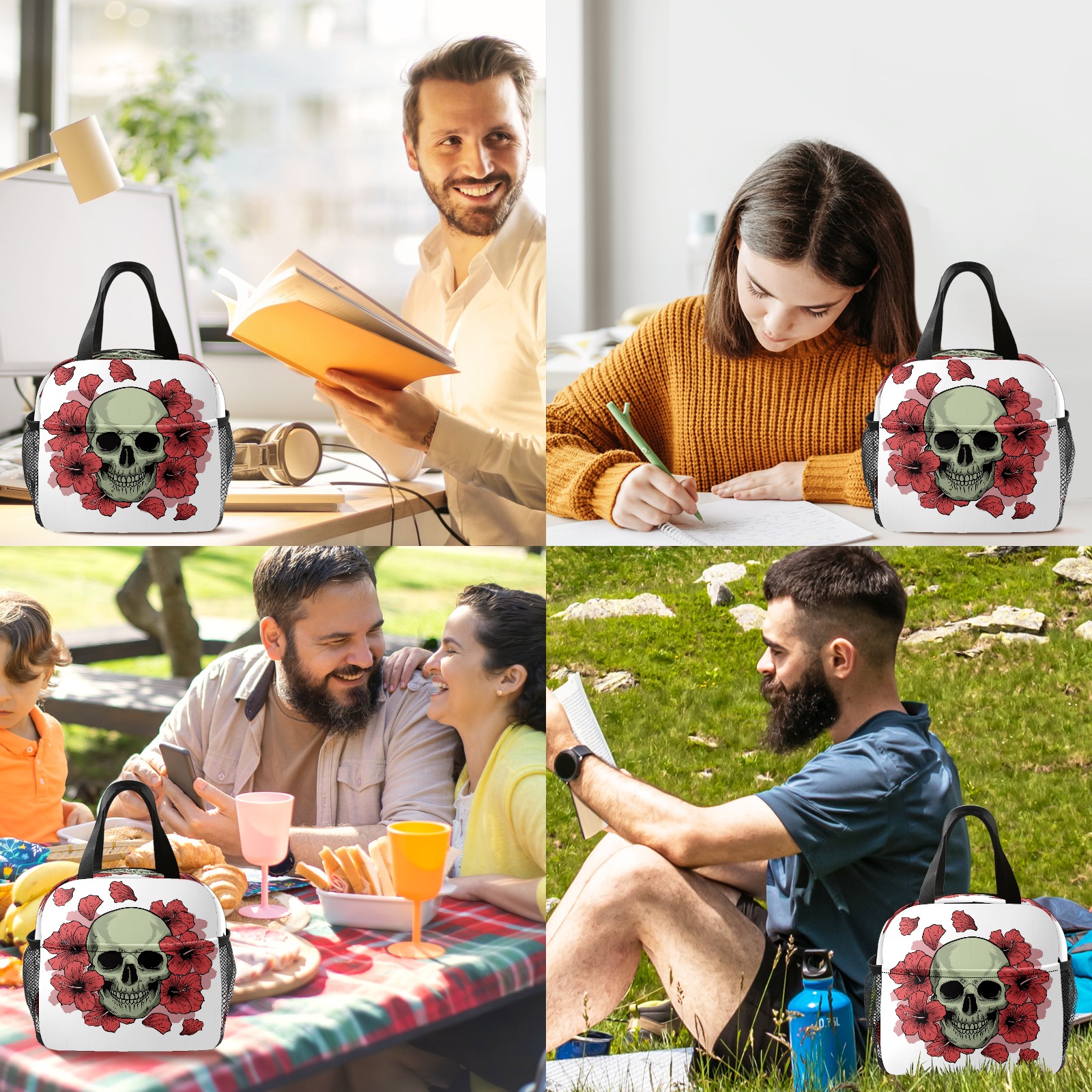 Lunch Bag,Lunch Box for Women Men,Skull Red Rose Flower - Halloween Reusable Insulated Lunch Tote,Small Leakproof Cute Lunch Cooler with High Capacity for Work,Picnic,Camping