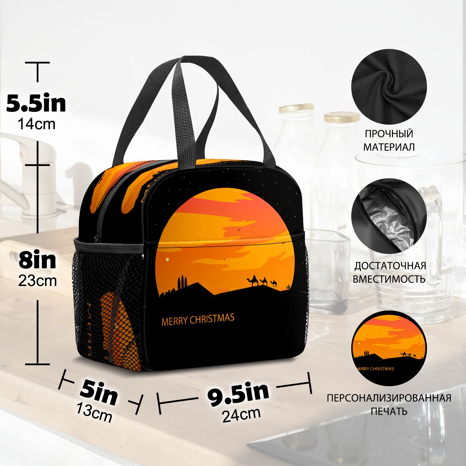 Lunch Bag,Lunch Box for Women Men,Desert Sunset Silhouette Reusable Insulated Lunch Tote,Small Leakproof Cute Lunch Cooler with High Capacity for Work,Picnic,Camping