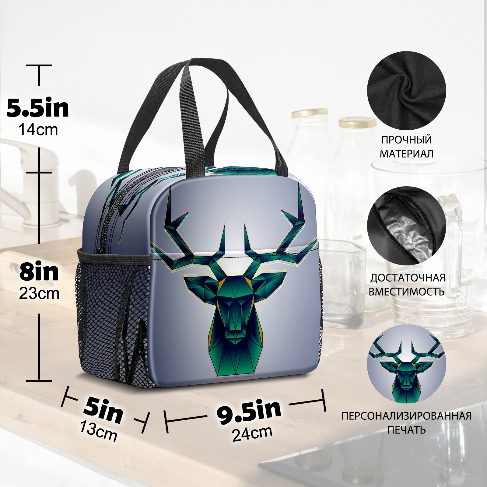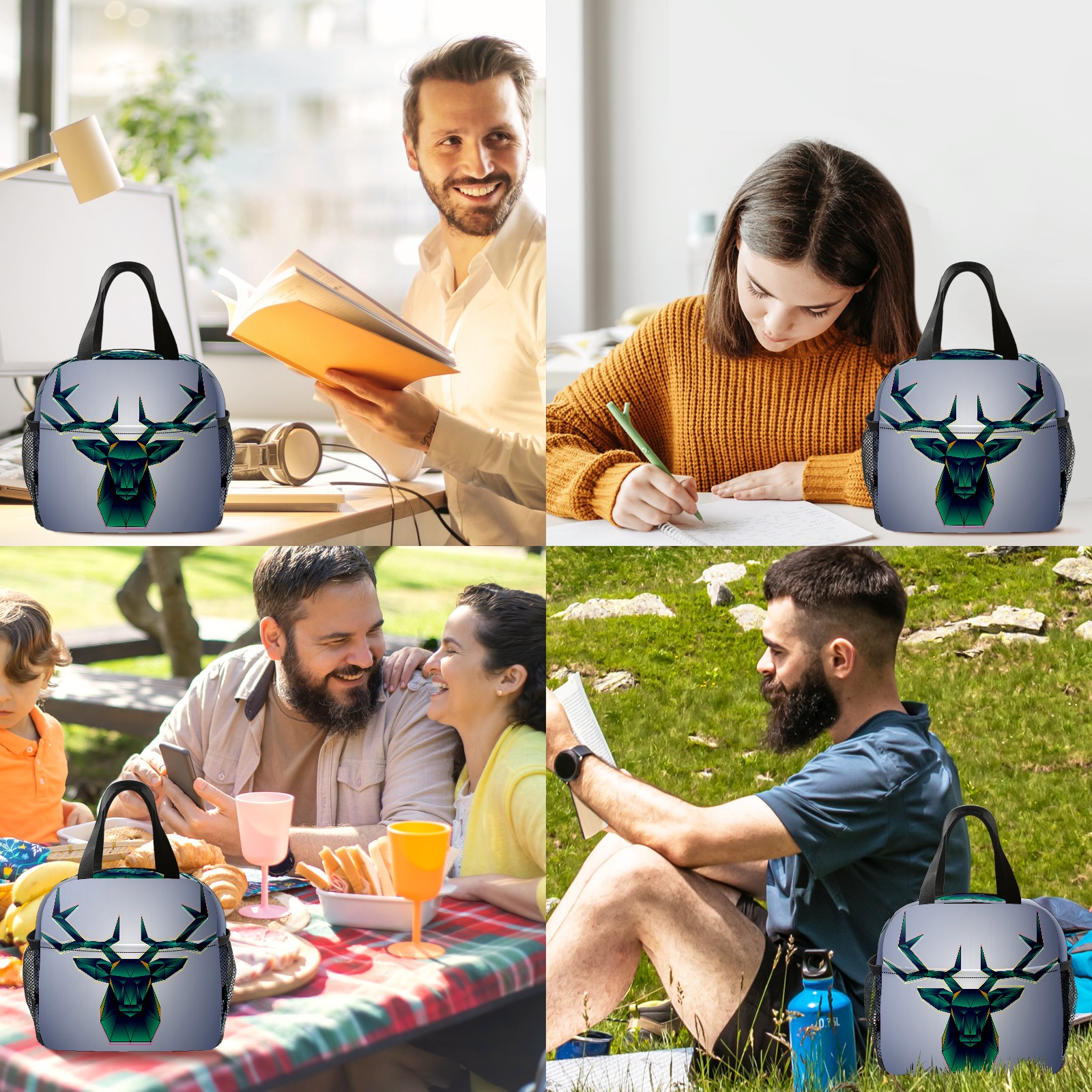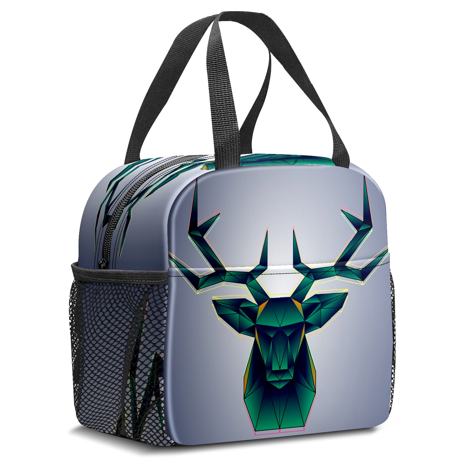 Lunch Bag,Lunch Box for Women Men,Geometric Shape Deer Head - Green Simple Animals Reusable Insulated Lunch Tote,Small Leakproof Cute Lunch Cooler with High Capacity for Work,Picnic,Camping