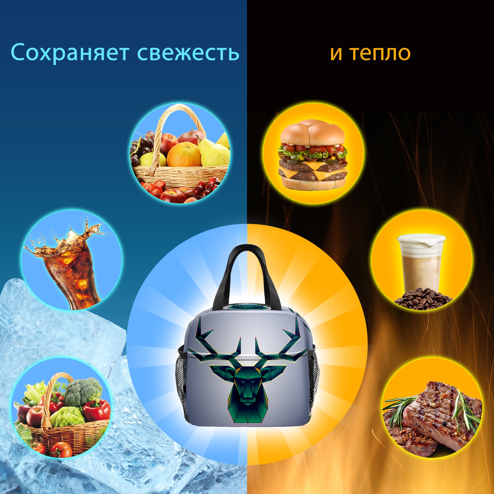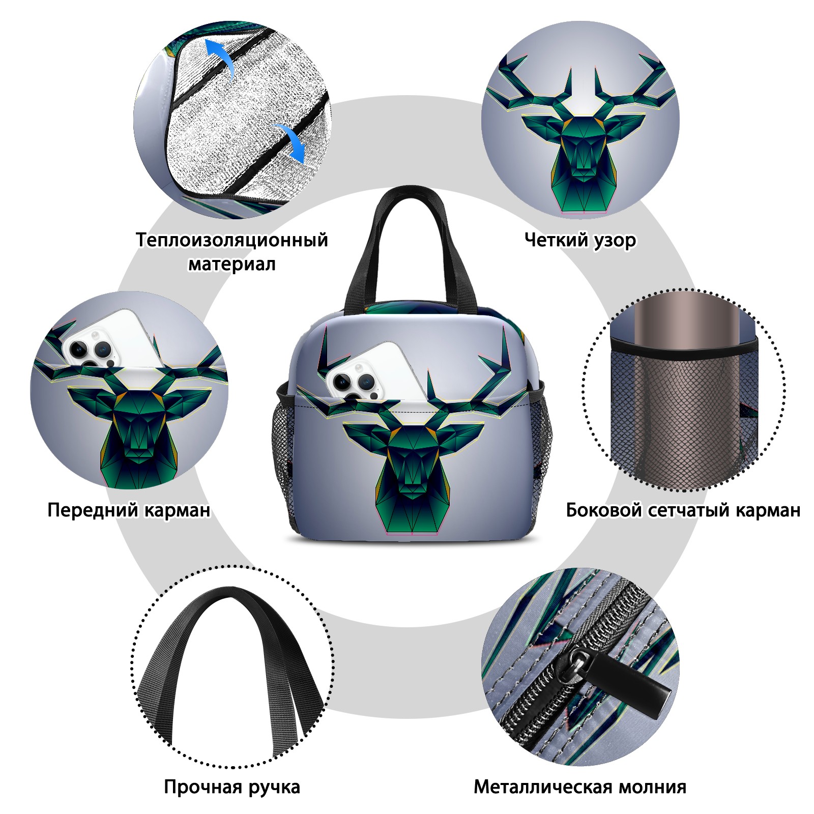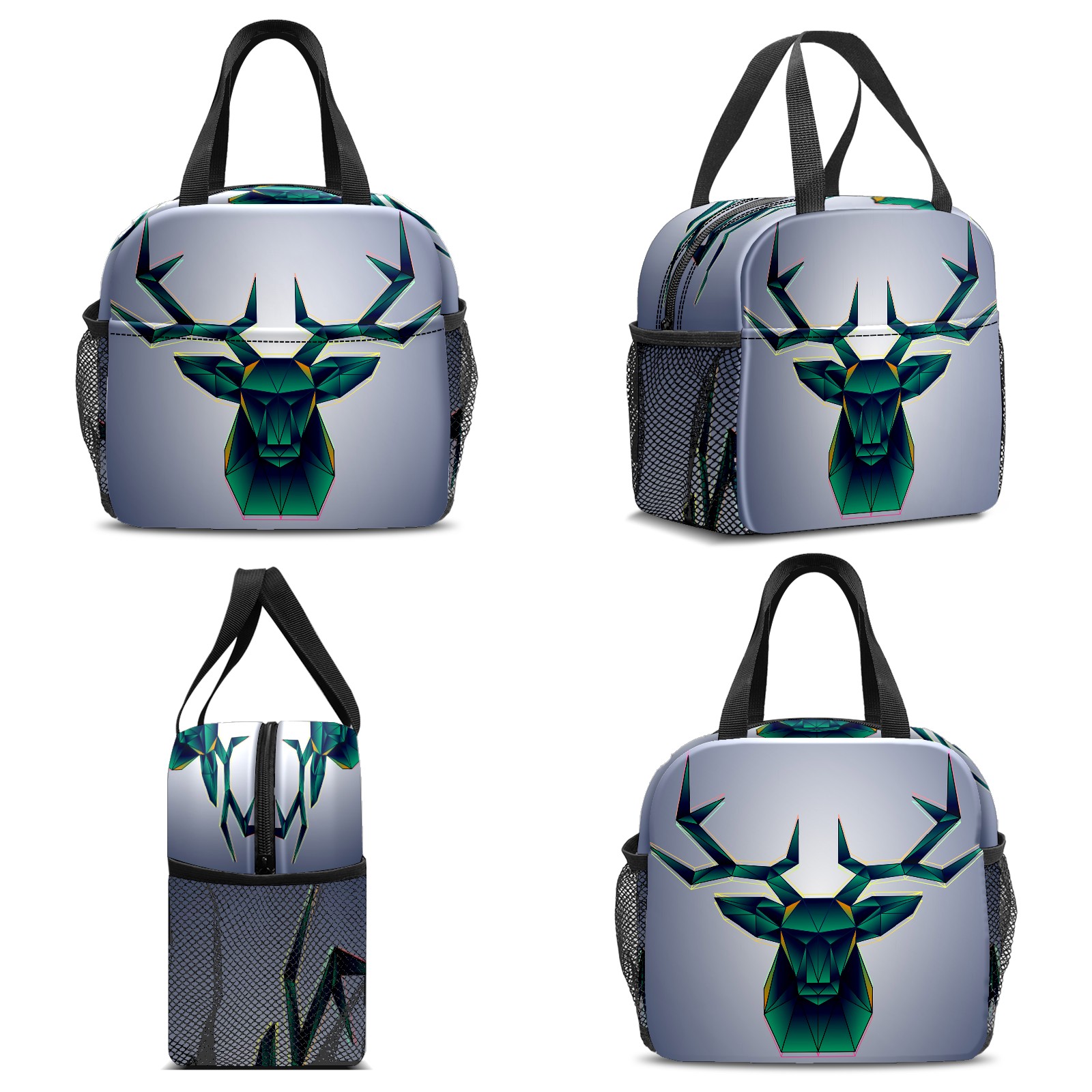 Lunch Bag,Lunch Box for Women Men,Geometric Shape Deer Head - Green Simple Animals Reusable Insulated Lunch Tote,Small Leakproof Cute Lunch Cooler with High Capacity for Work,Picnic,Camping