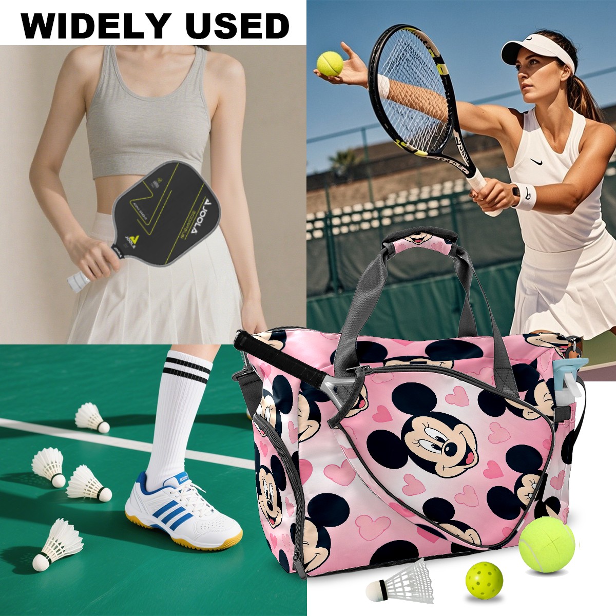 Pickleball Tote Bag Carryall for Paddles Balls and Accessories, Portable Lightweight Gear Bag for Players(Mouse Pink)