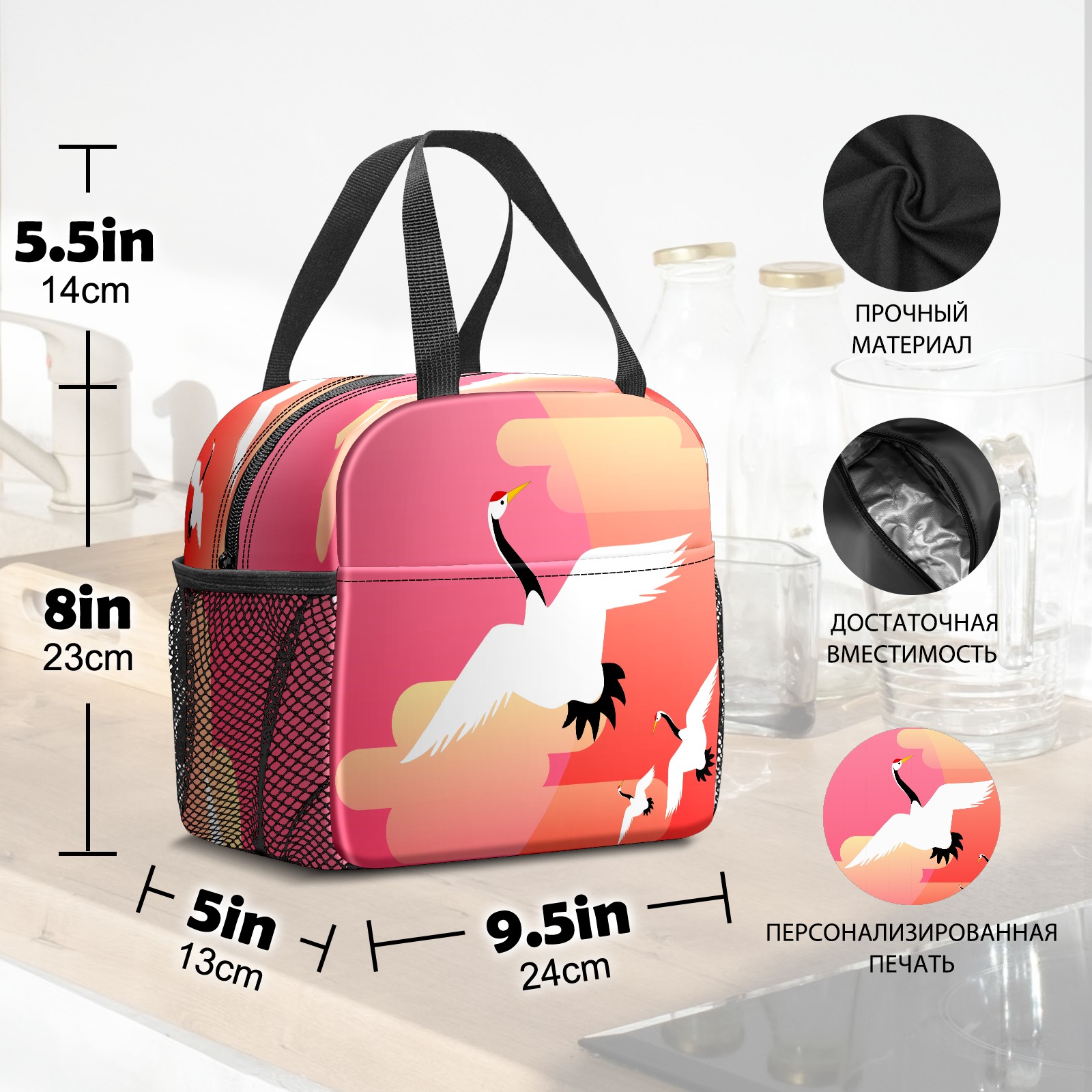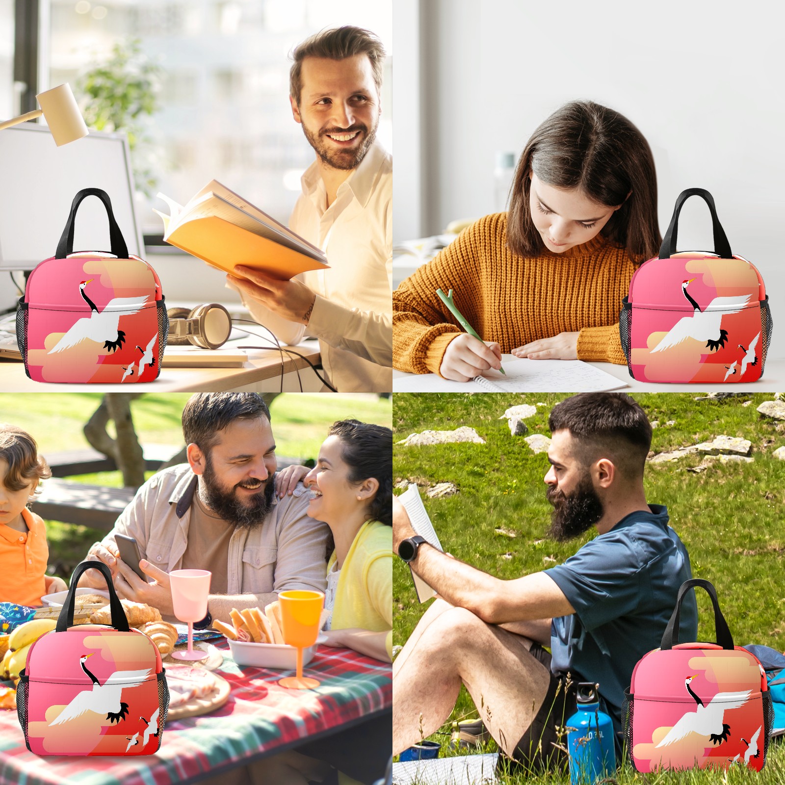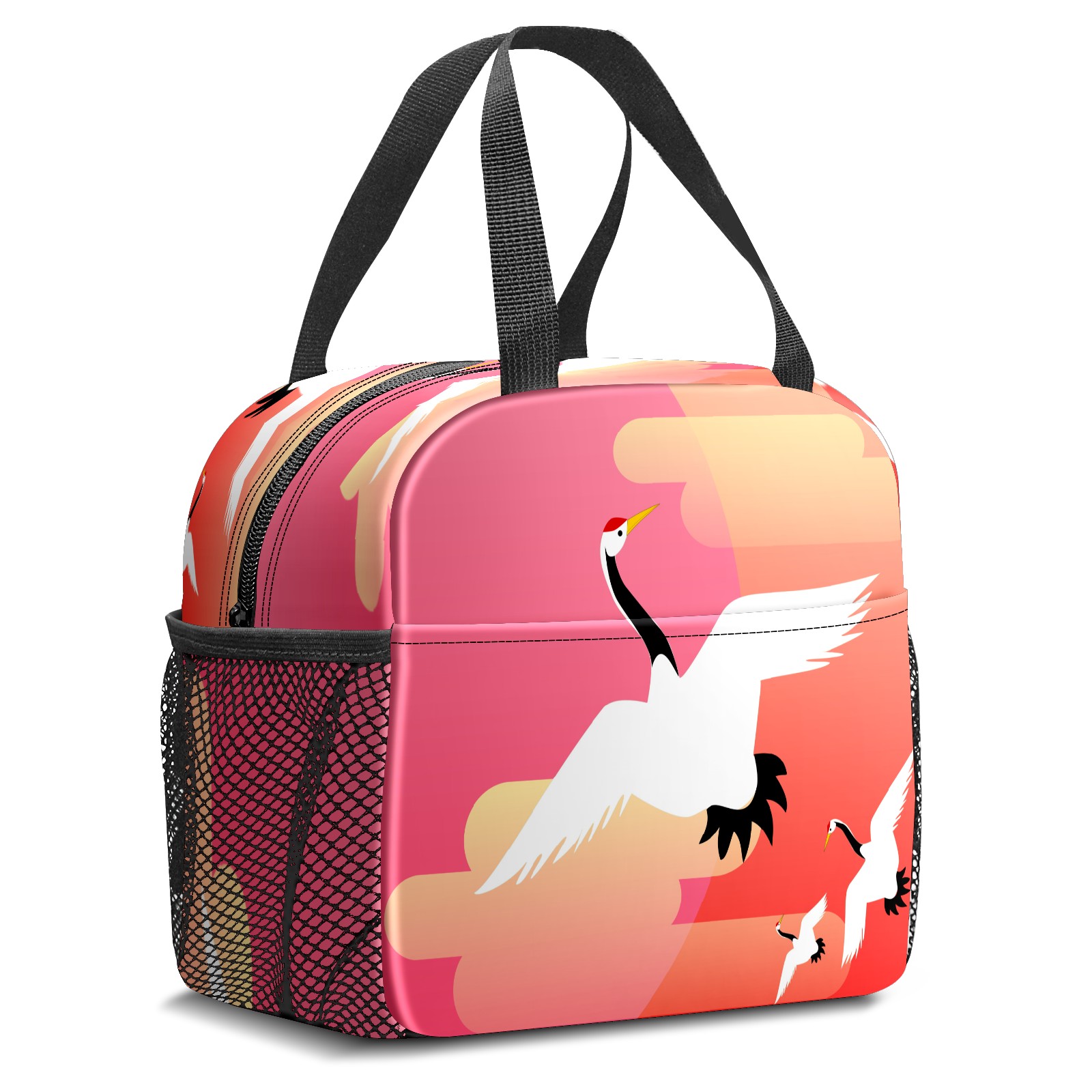Lunch Bag,Lunch Box for Women Men,Crane Pattern Reusable Insulated Lunch Tote,Small Leakproof Cute Lunch Cooler with High Capacity for Work,Picnic,Camping