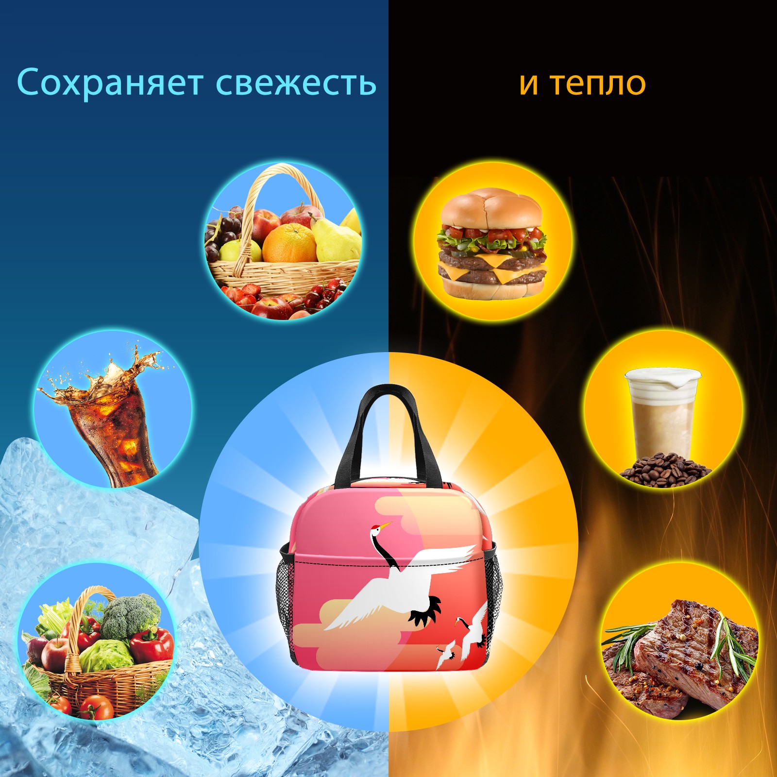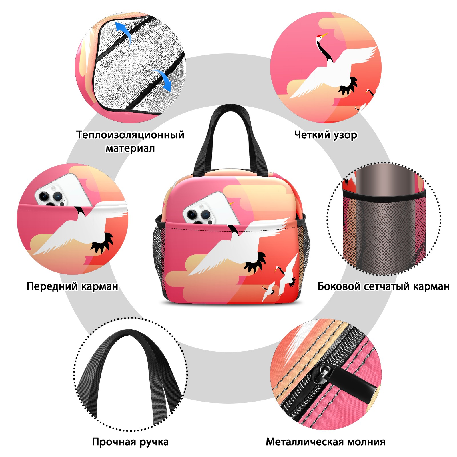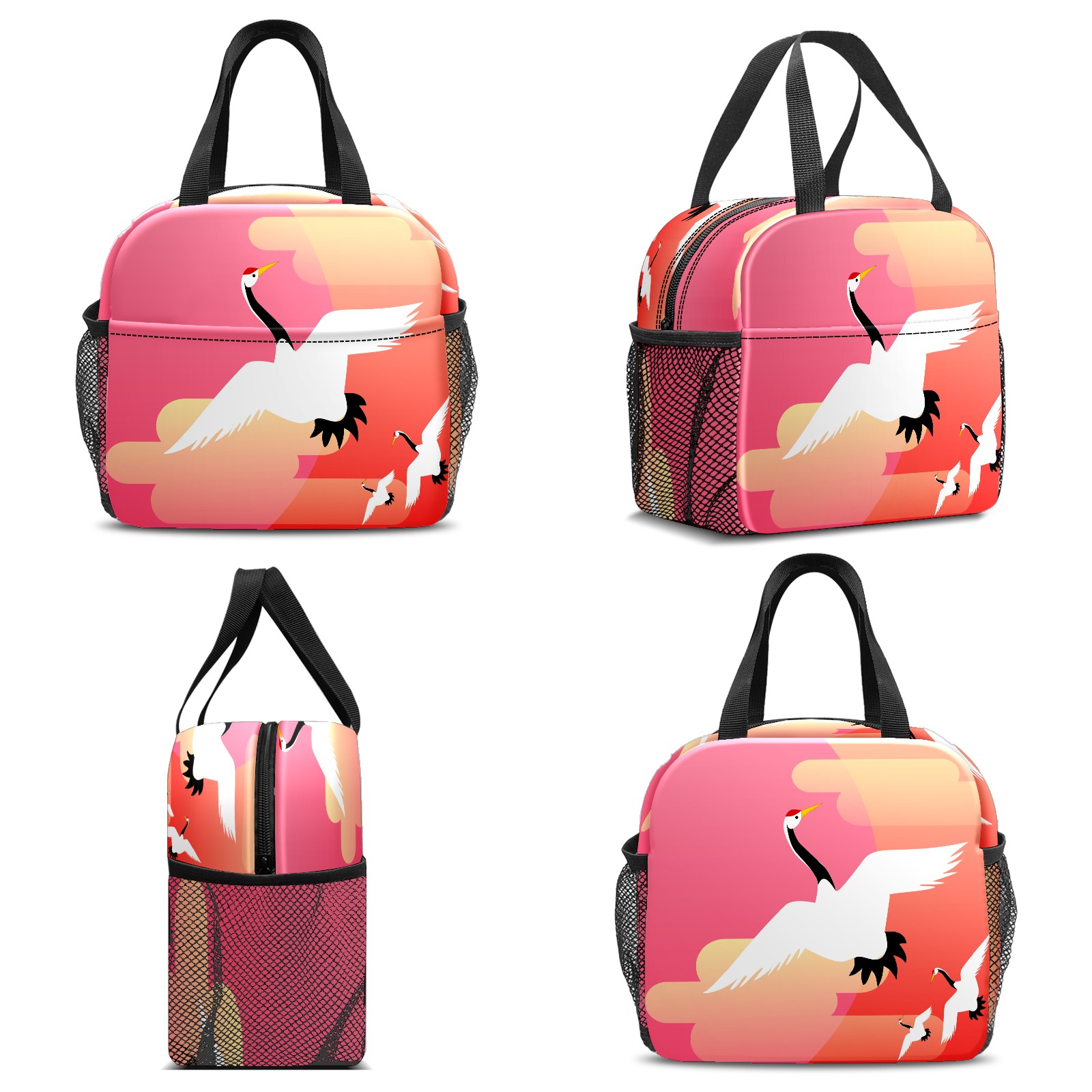 Lunch Bag,Lunch Box for Women Men,Crane Pattern Reusable Insulated Lunch Tote,Small Leakproof Cute Lunch Cooler with High Capacity for Work,Picnic,Camping