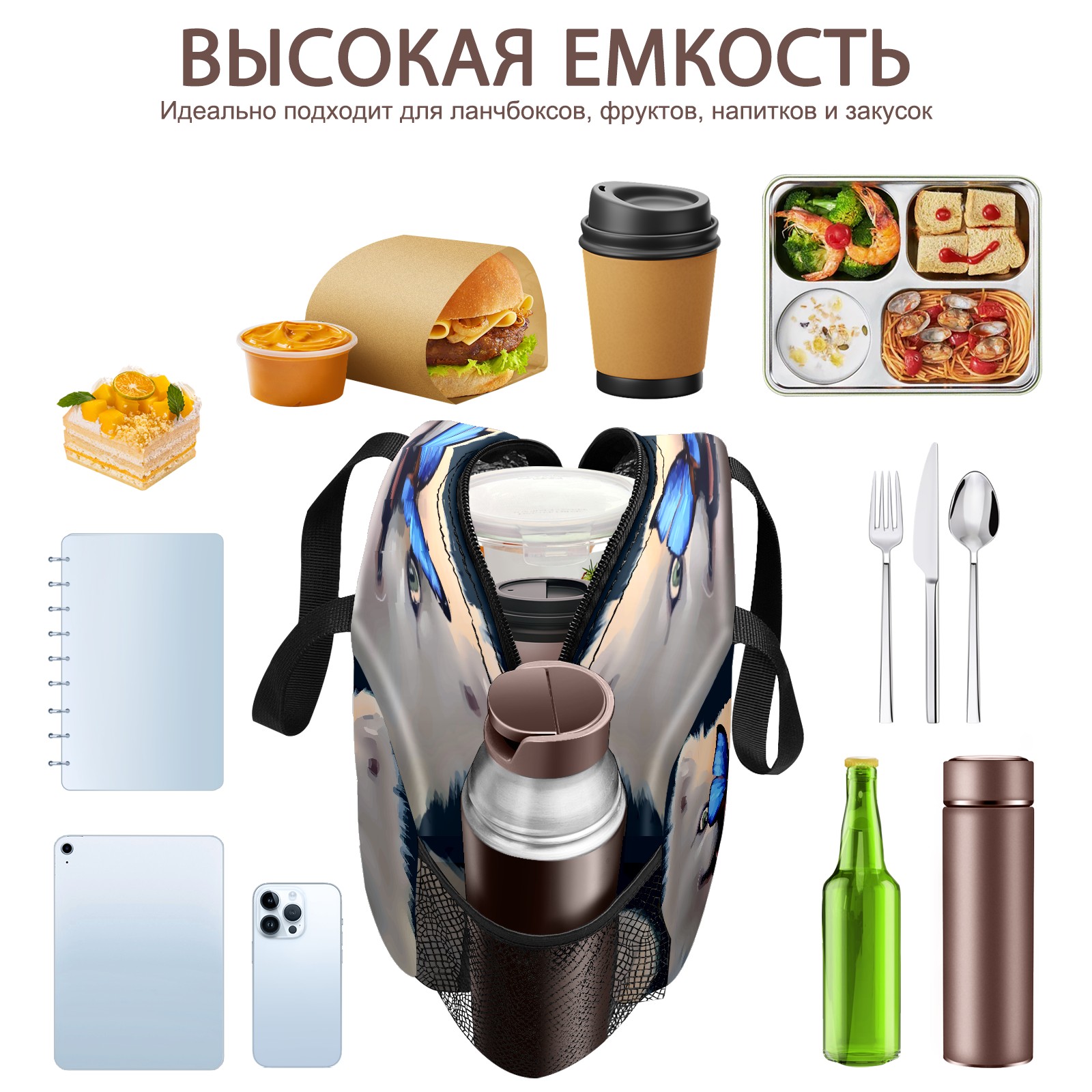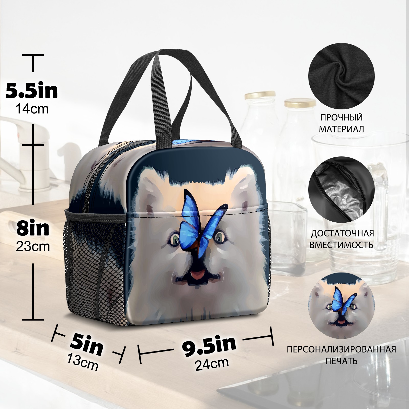 Lunch Bag,Lunch Box for Women Men,Butterfly On Dog Nose Reusable Insulated Lunch Tote,Small Leakproof Cute Lunch Cooler with High Capacity for Work,Picnic,Camping
