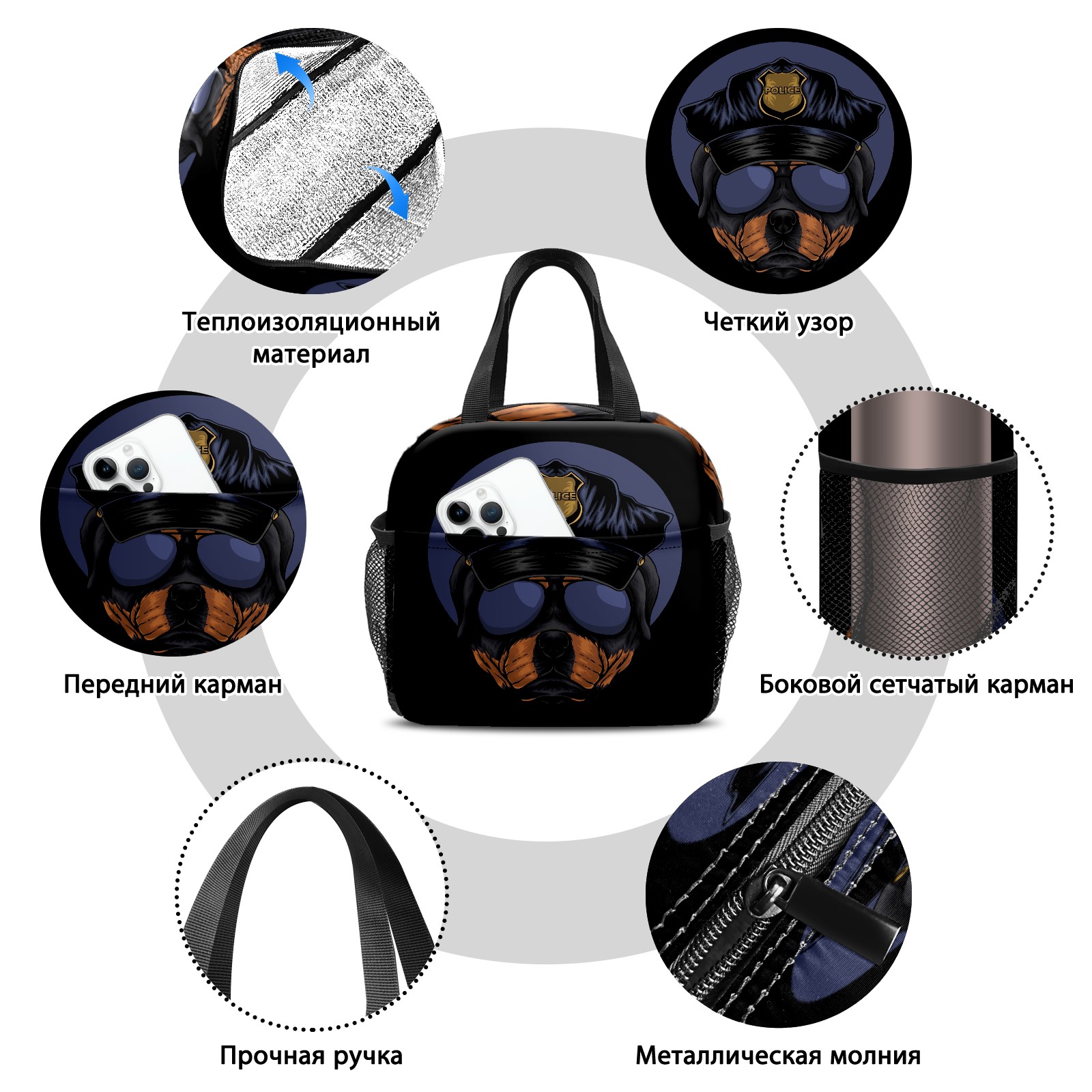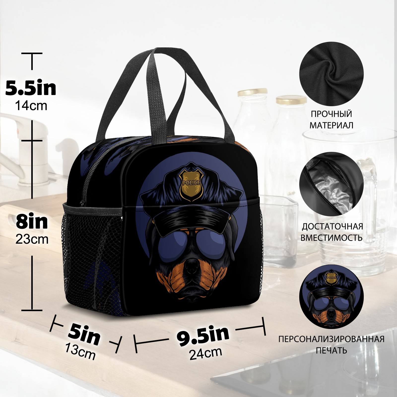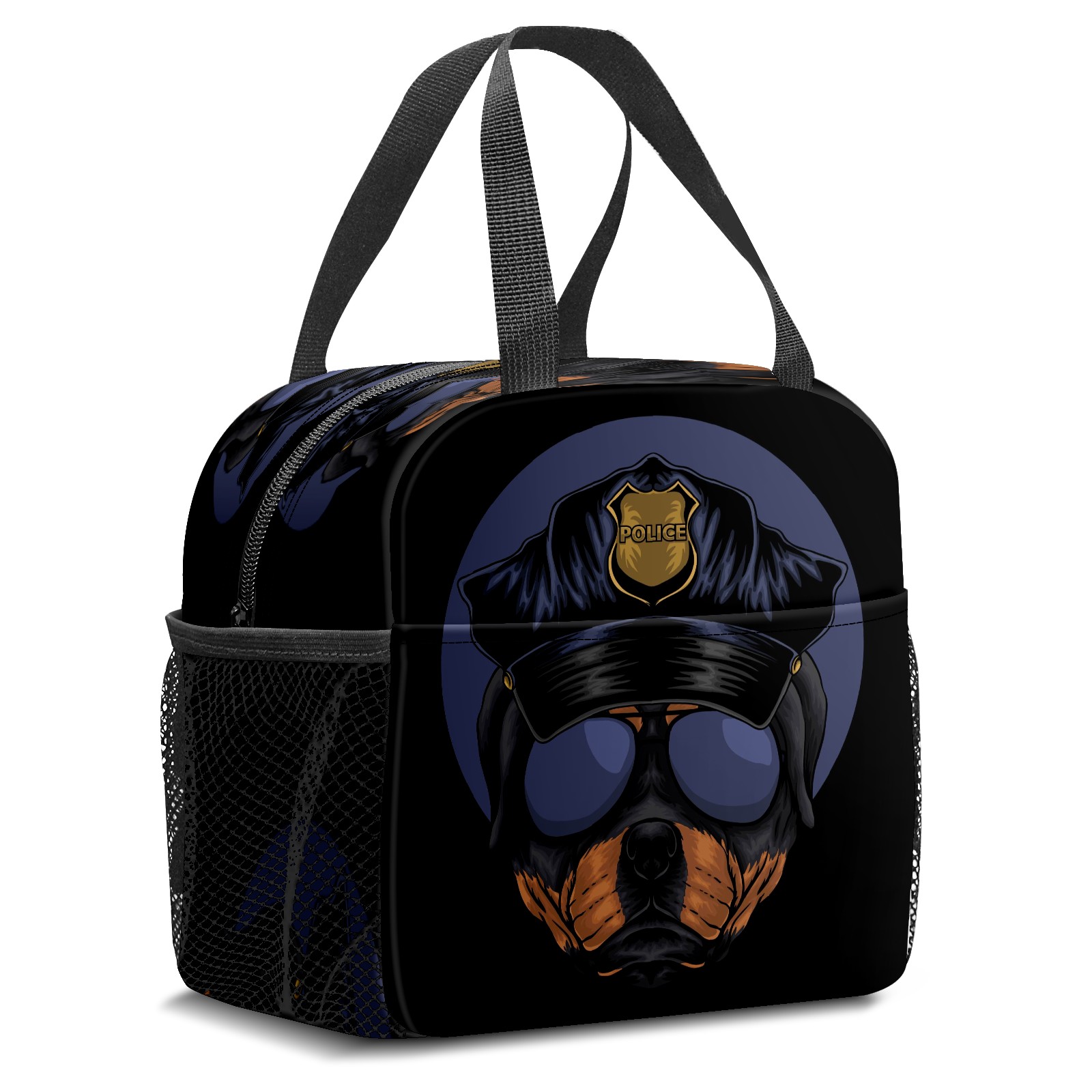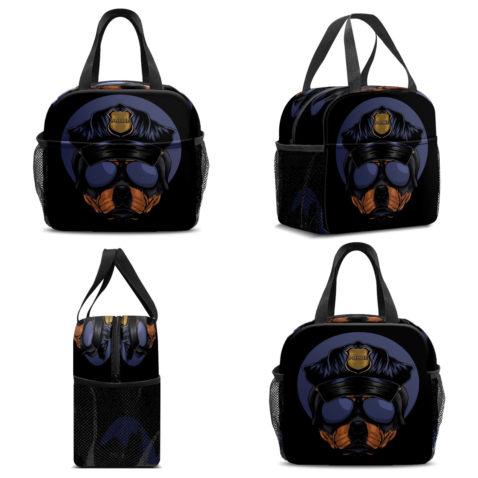 Lunch Bag,Lunch Box for Women Men,Cartoon Rottweiler Police - Pet Animal Black Reusable Insulated Lunch Tote,Small Leakproof Cute Lunch Cooler with High Capacity for Work,Picnic,Camping