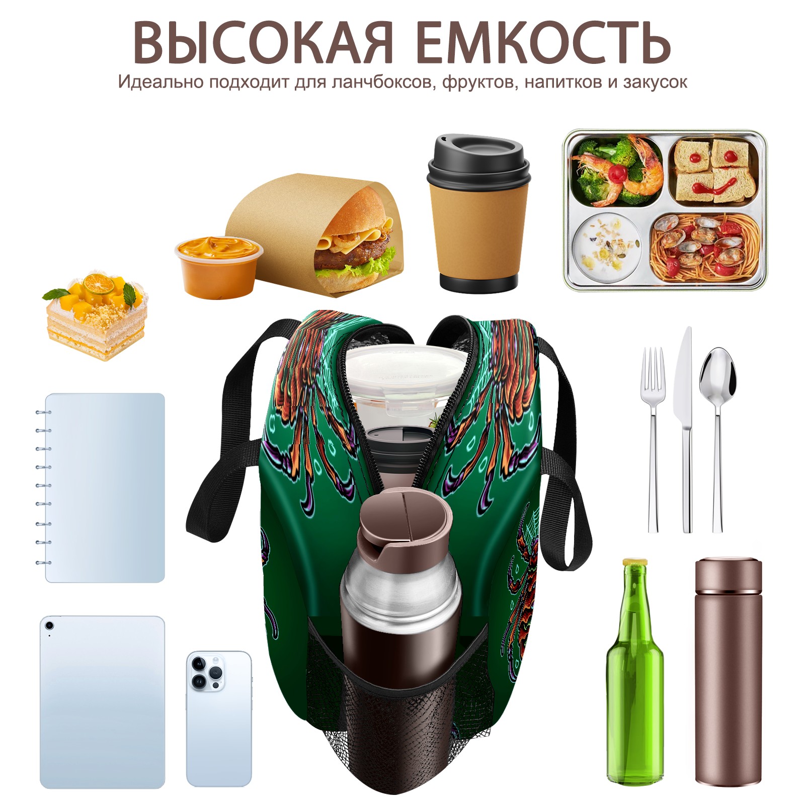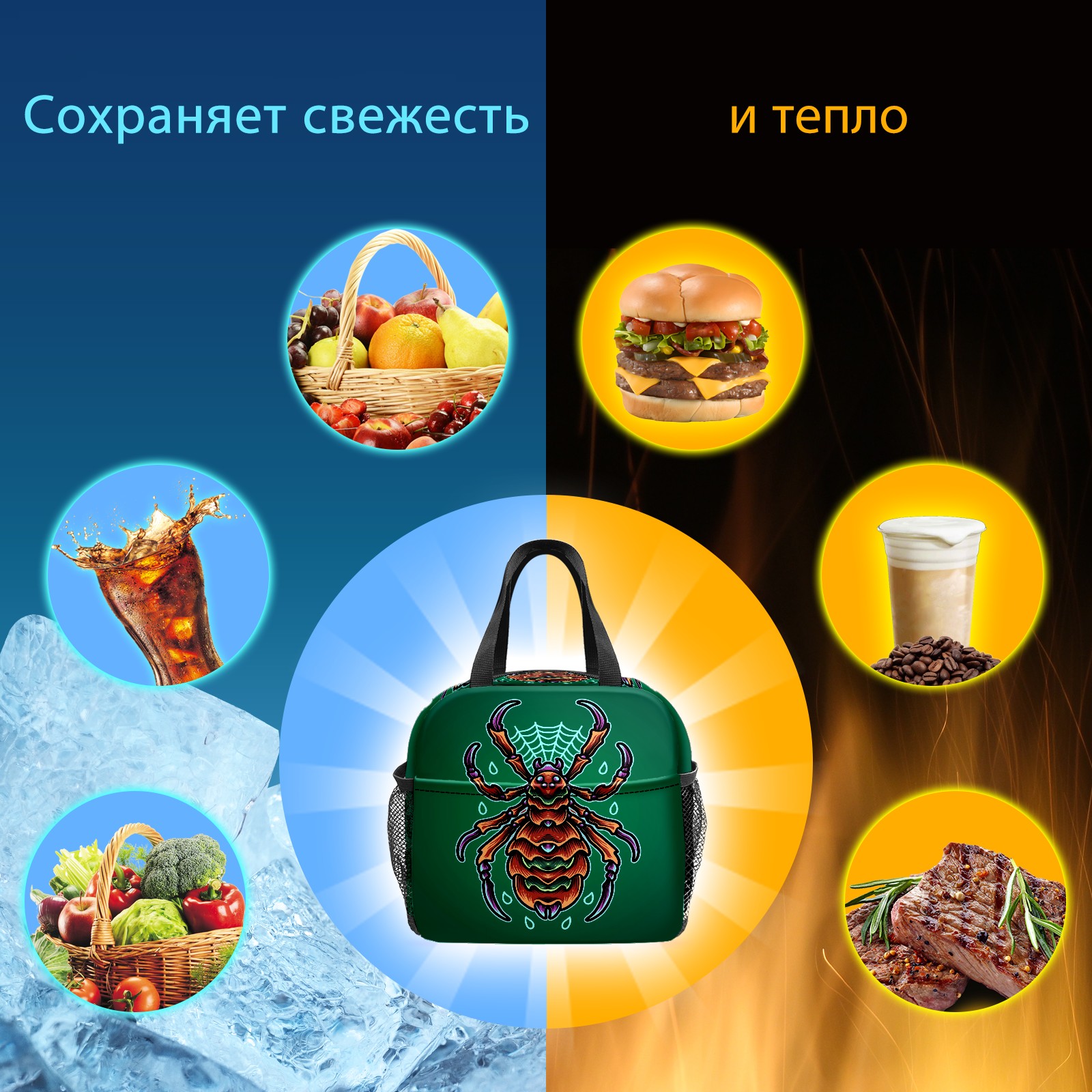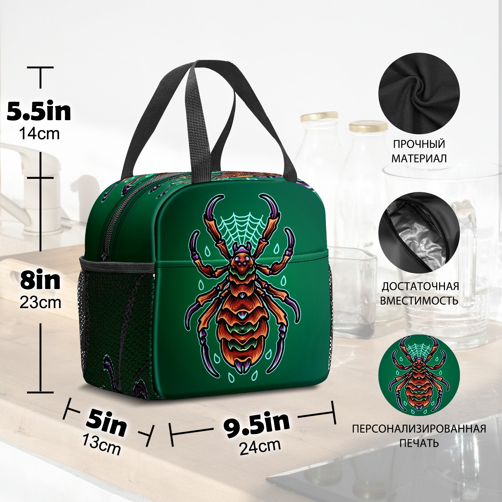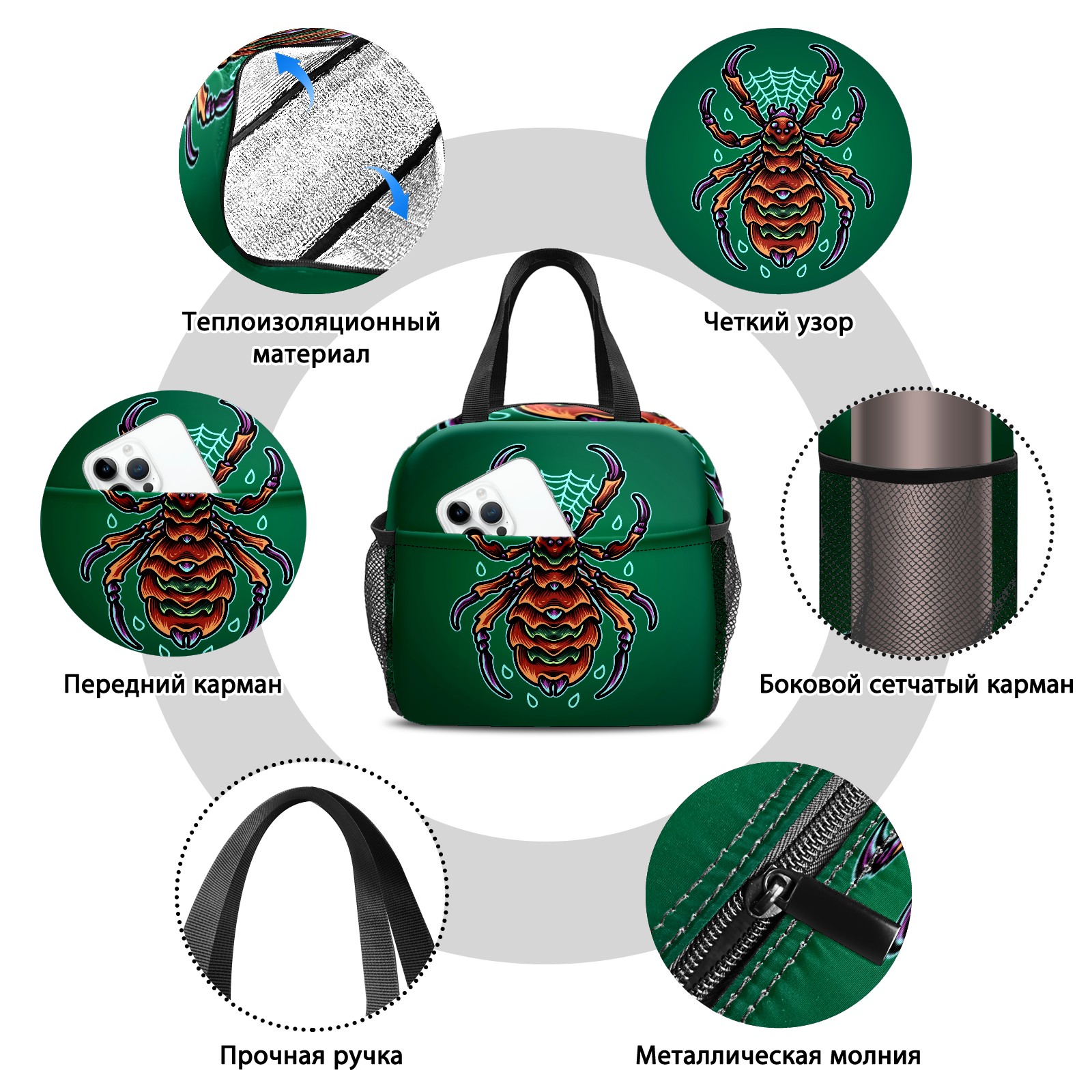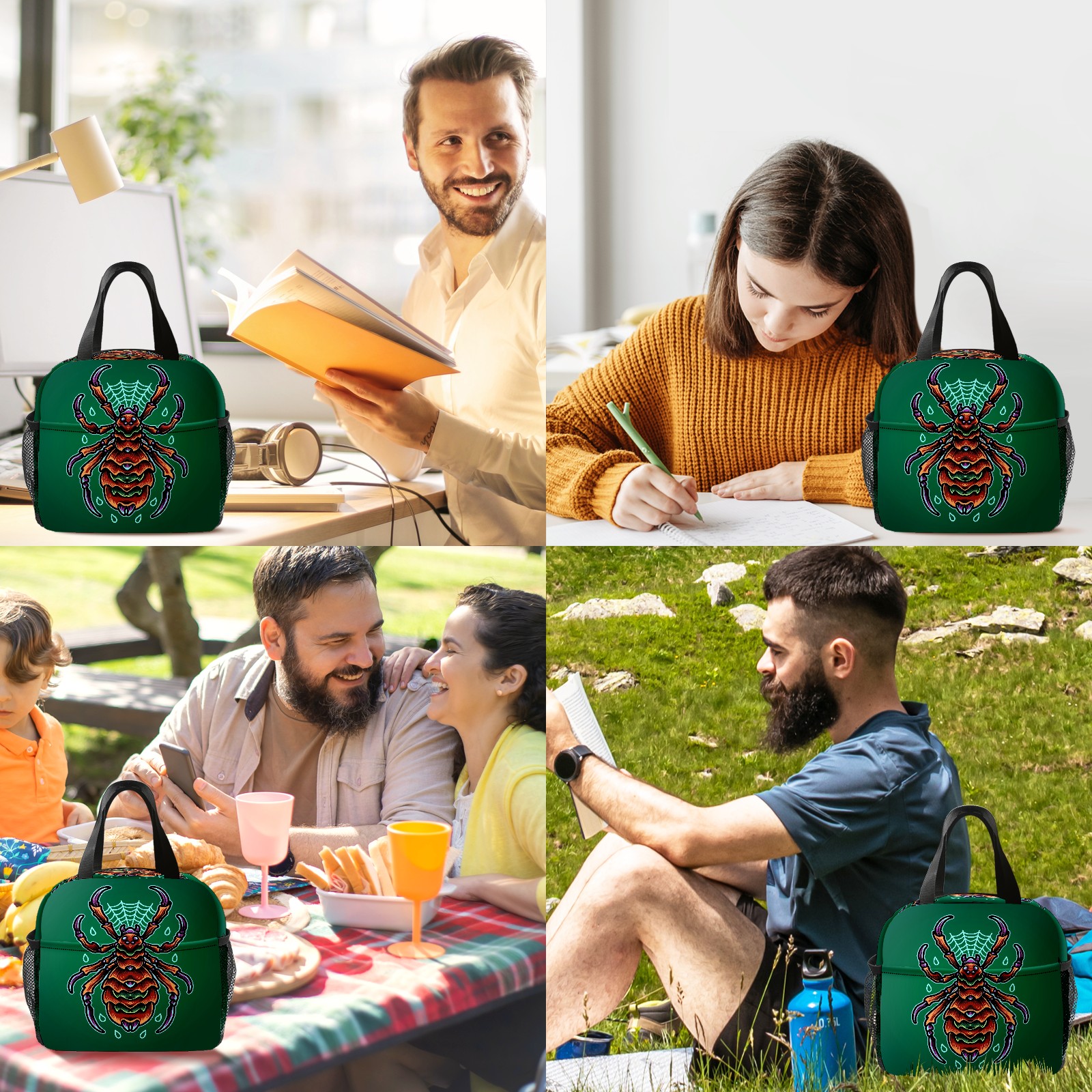 Lunch Bag,Lunch Box for Women Men,Cartoon Green Mutant Spider Reusable Insulated Lunch Tote,Small Leakproof Cute Lunch Cooler with High Capacity for Work,Picnic,Camping