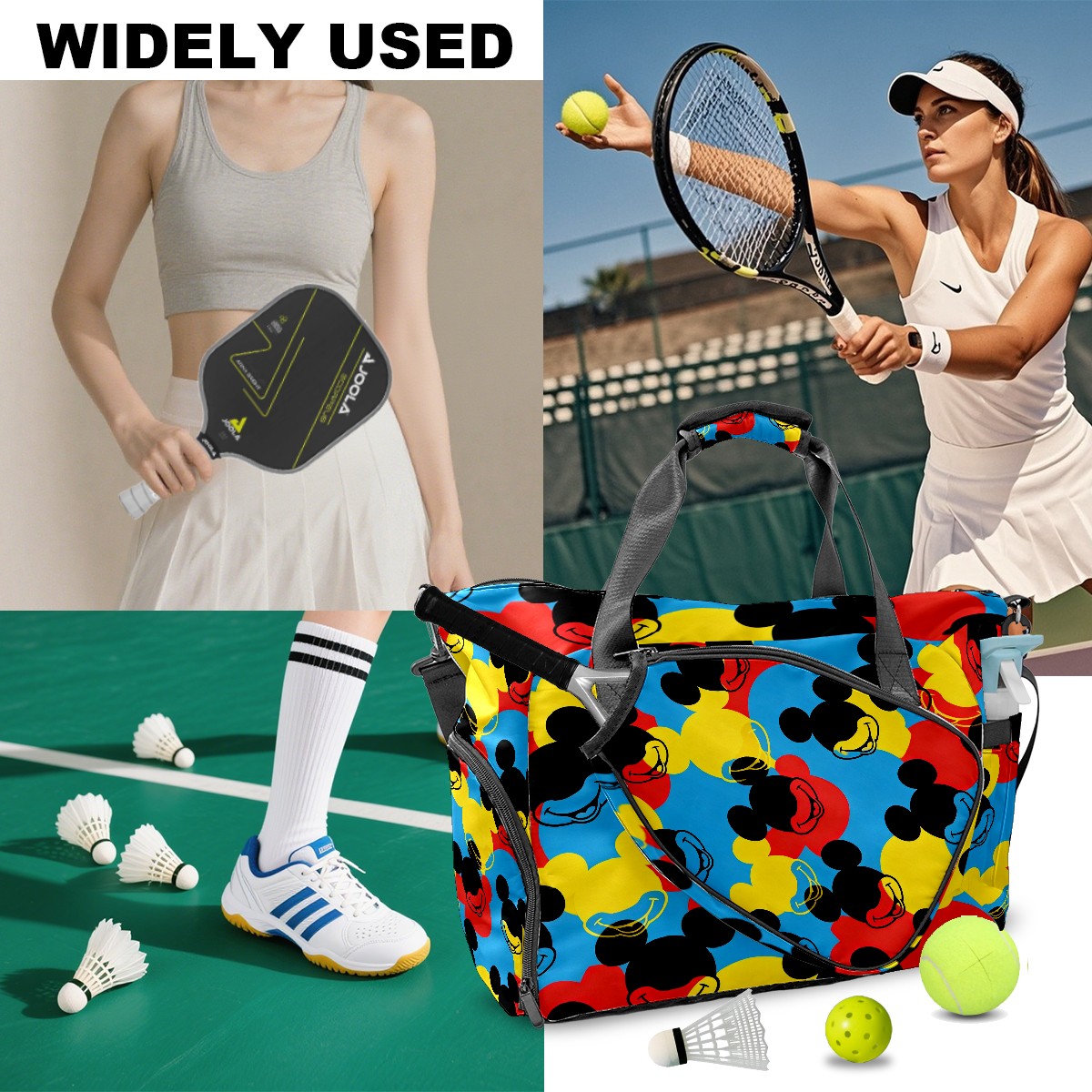 Pickleball Tote Bag Carryall for Paddles Balls and Accessories, Portable Lightweight Gear Bag for Players(Mouse Head Multi)