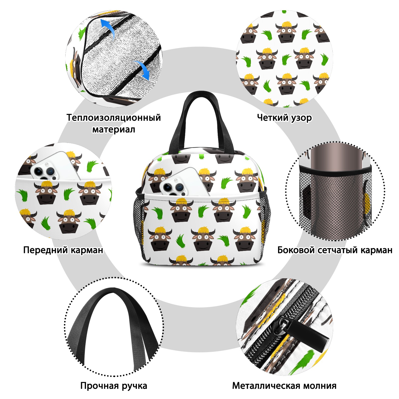Lunch Bag,Lunch Box for Women Men,Bull Pattern Reusable Insulated Lunch Tote,Small Leakproof Cute Lunch Cooler with High Capacity for Work,Picnic,Camping