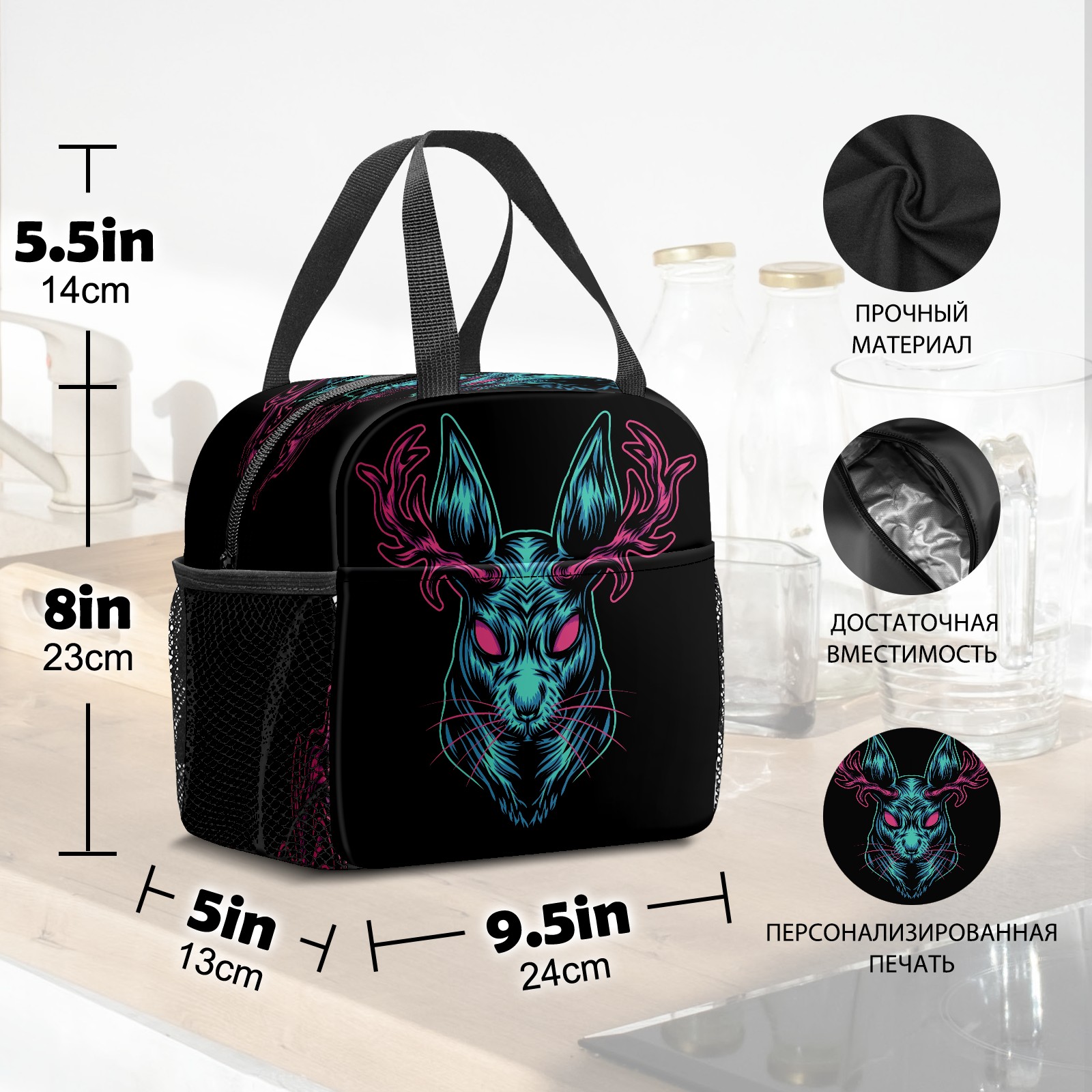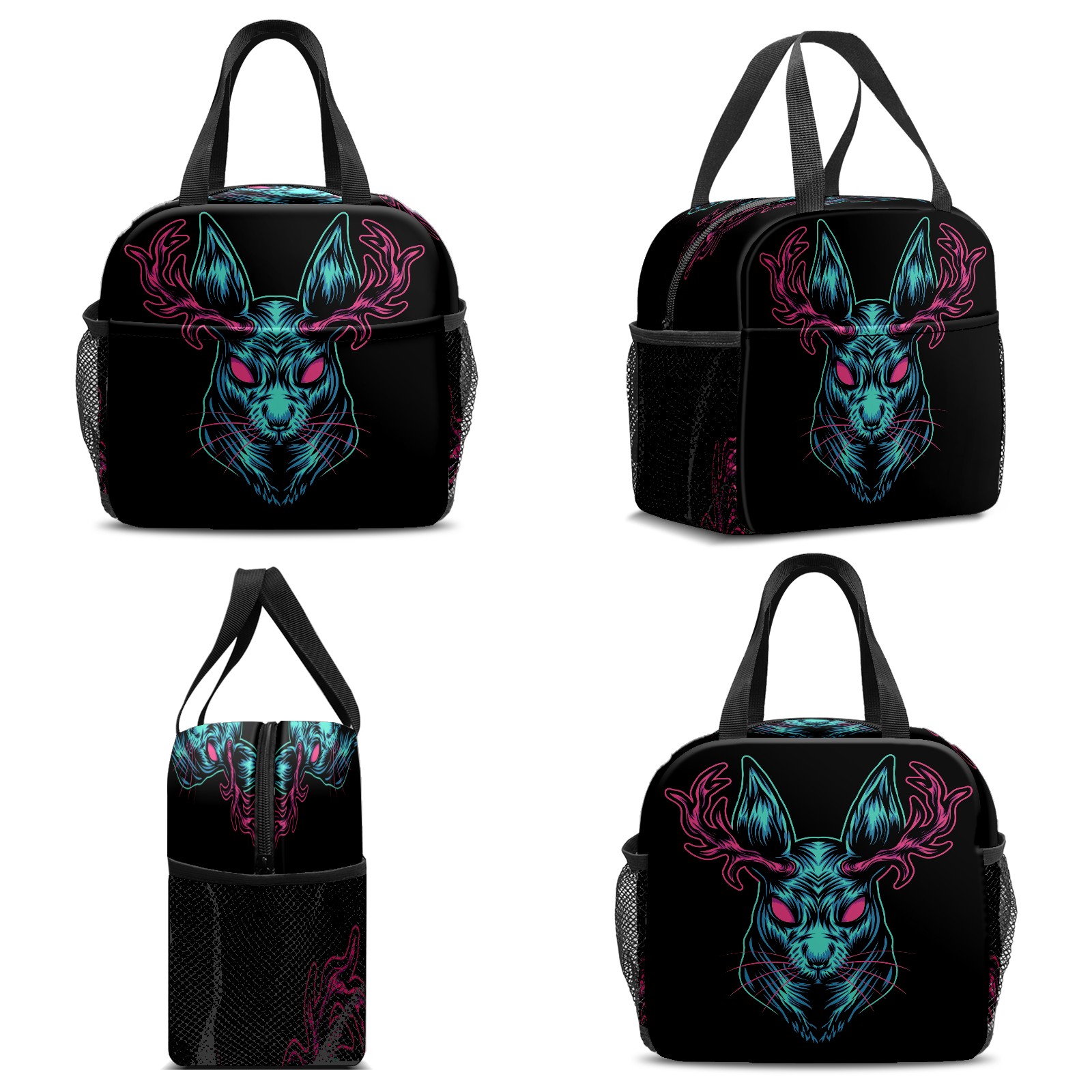 Lunch Bag,Lunch Box for Women Men,Black Devil Deer Head Reusable Insulated Lunch Tote,Small Leakproof Cute Lunch Cooler with High Capacity for Work,Picnic,Camping