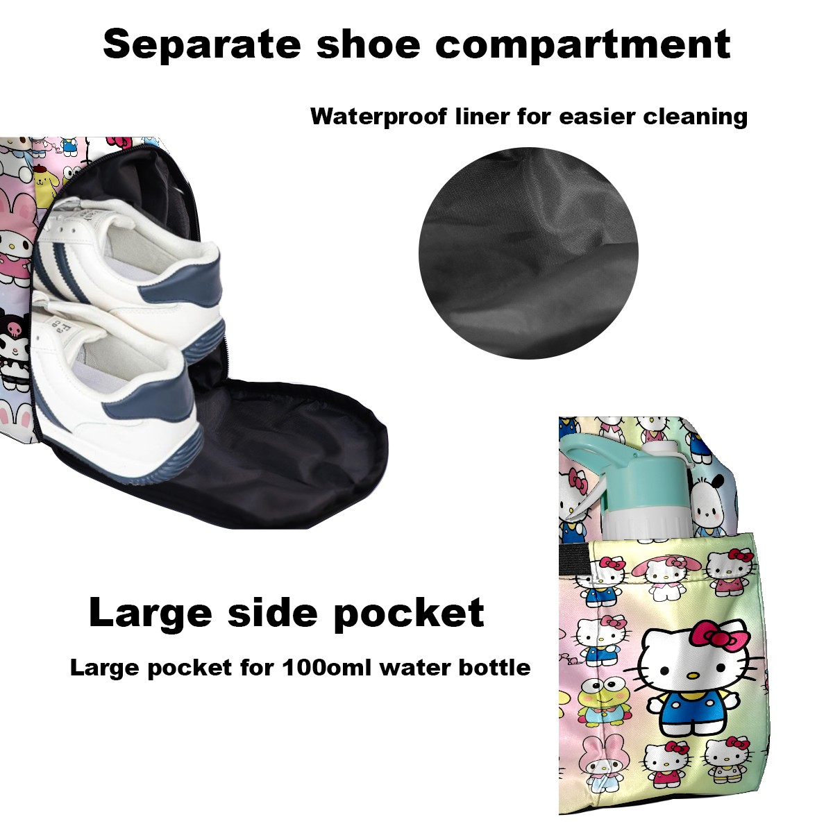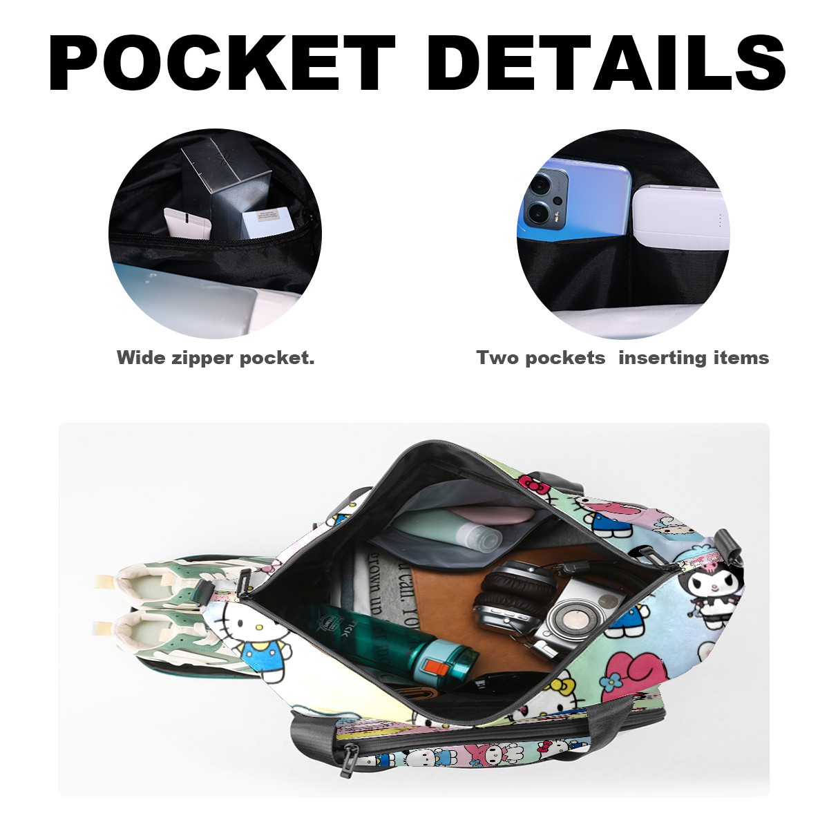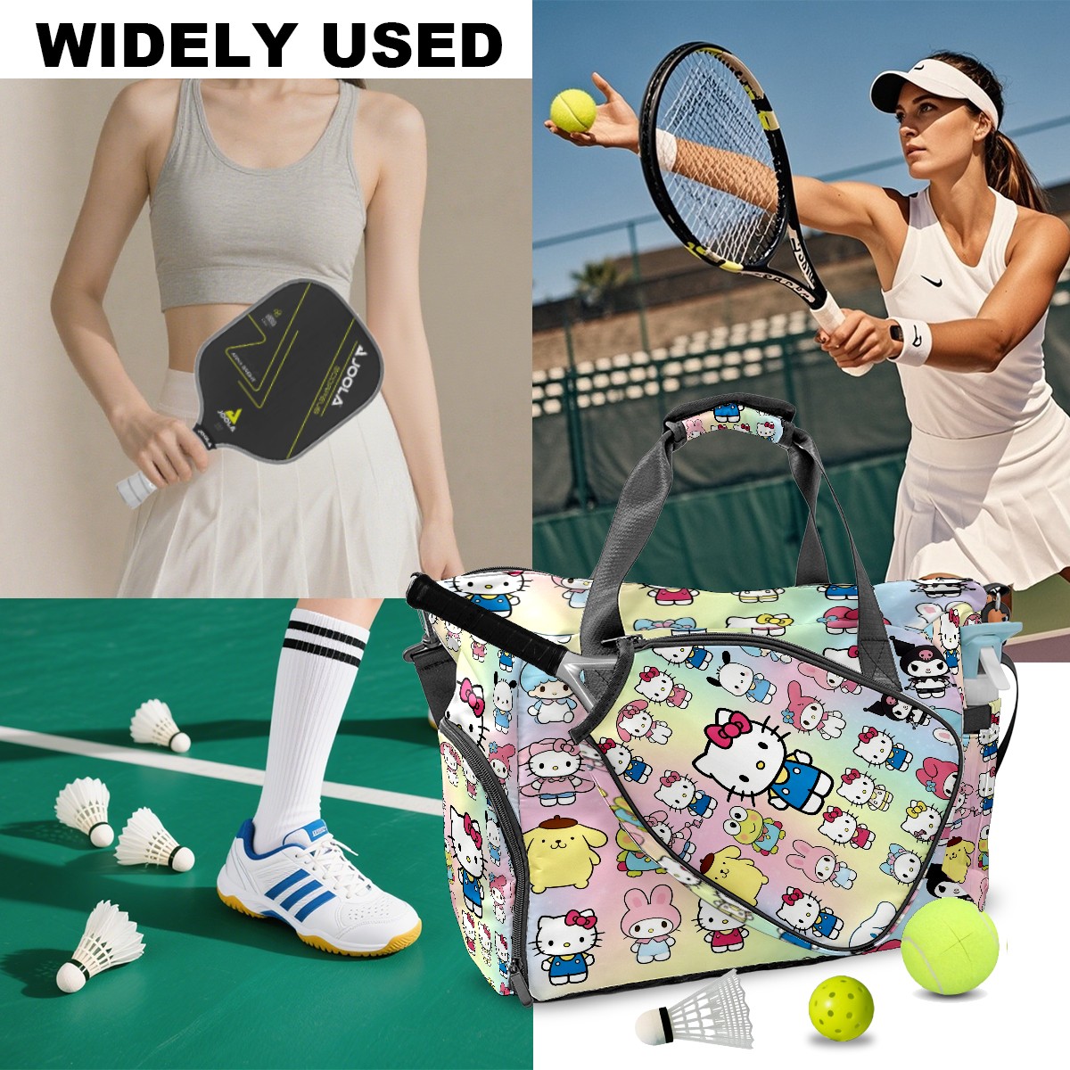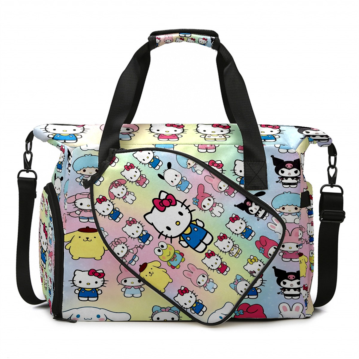 Pickleball Tote Bag Carryall for Paddles Balls and Accessories, Portable Lightweight Gear Bag for Players(Cartoon Character Multi)