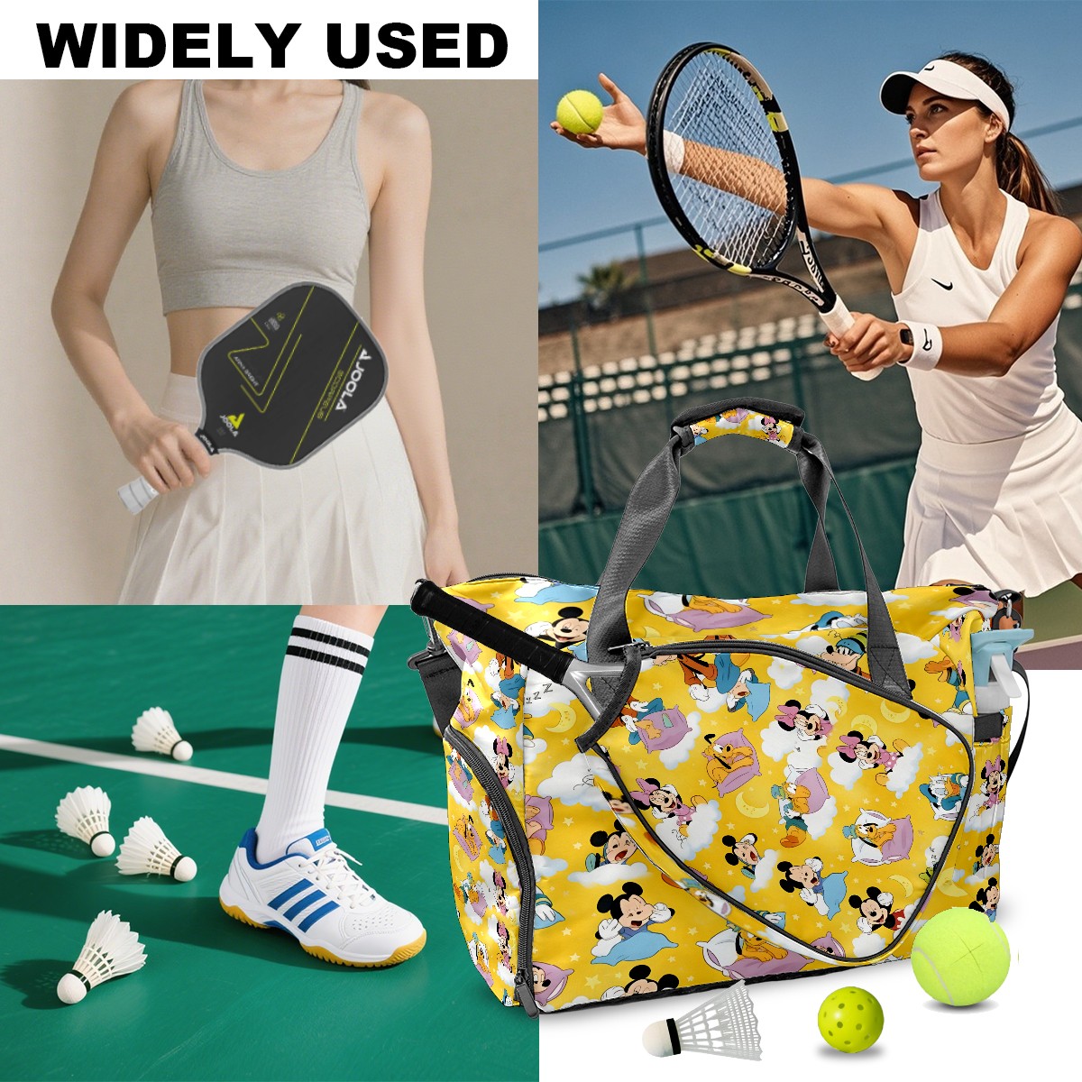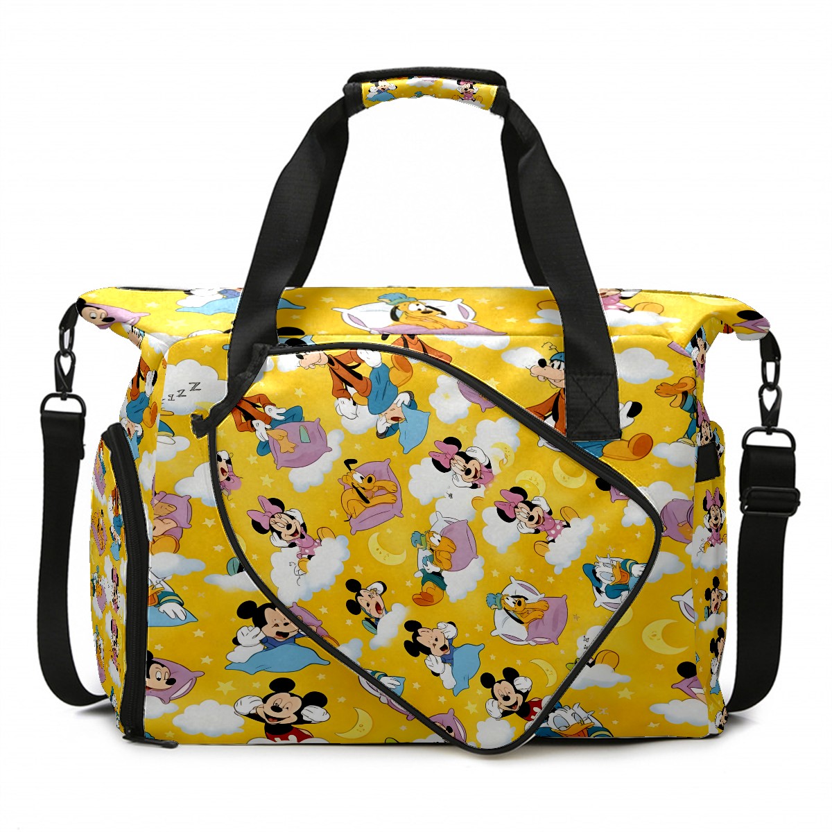 Pickleball Tote Bag Carryall for Paddles Balls and Accessories, Portable Lightweight Gear Bag for Players(Cheerful Character Yellow)